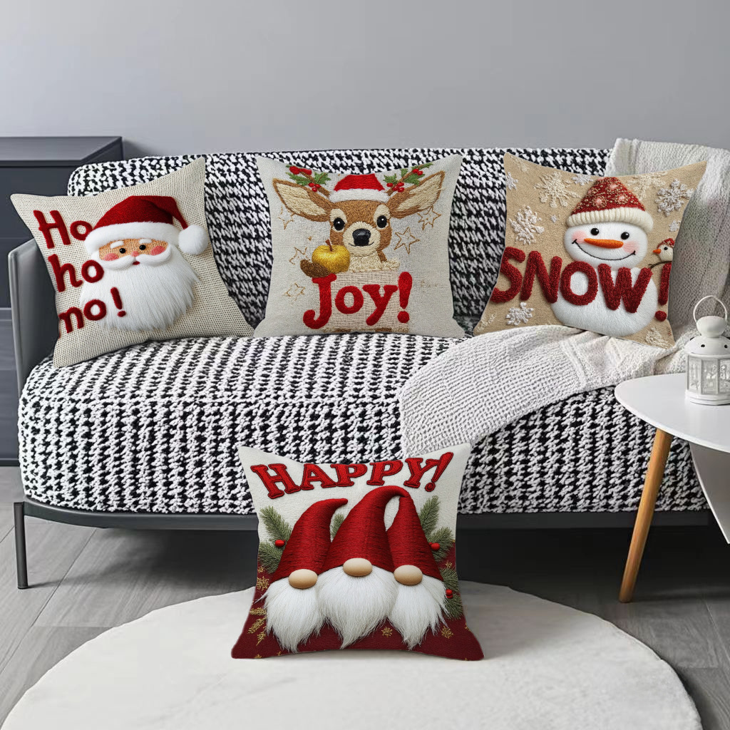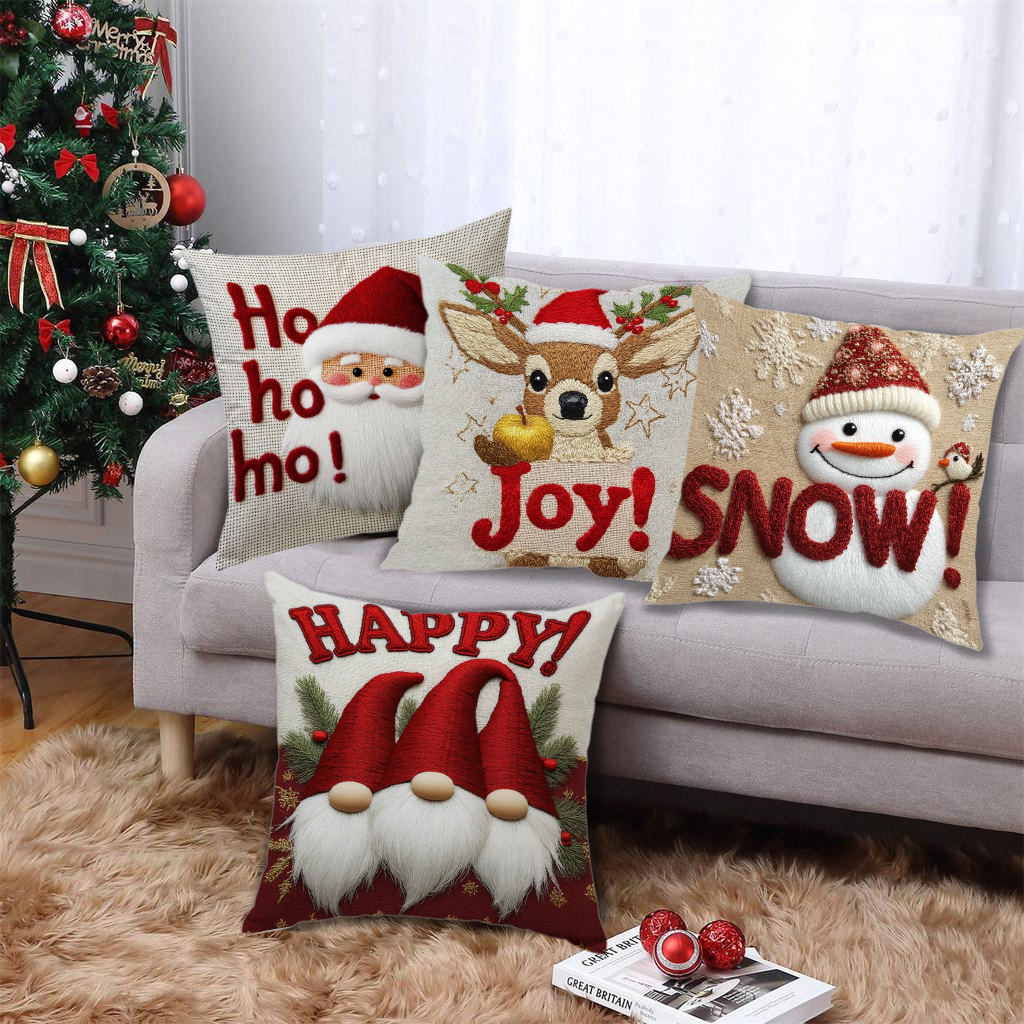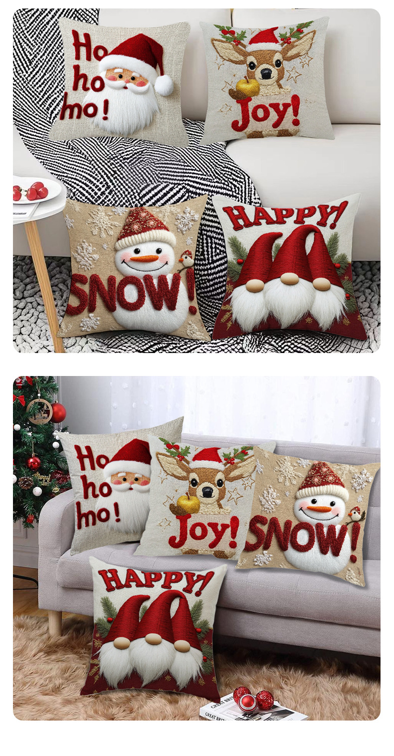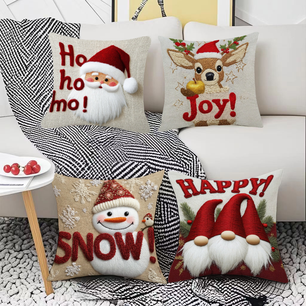 跨境卡通雪人圣诞抱枕套靠垫套短毛绒圣诞老人装饰家居沙发靠枕套