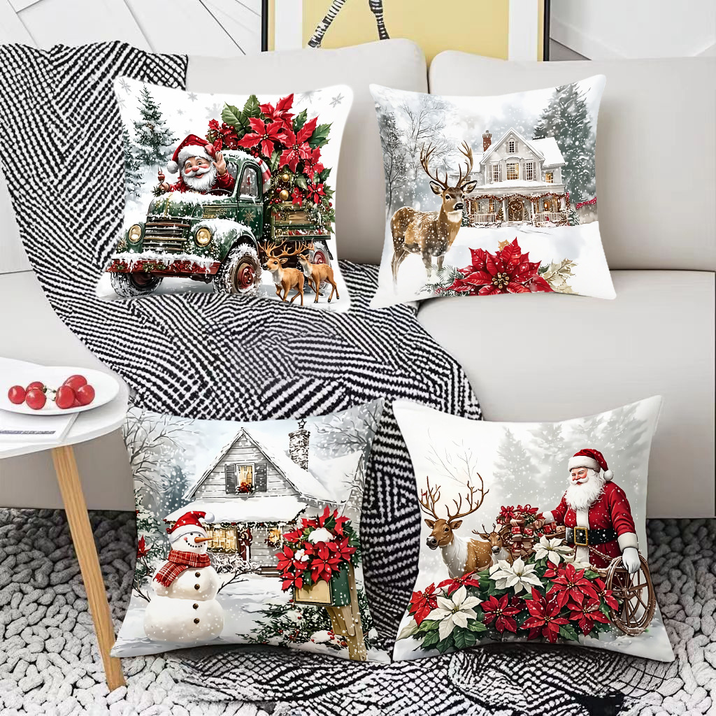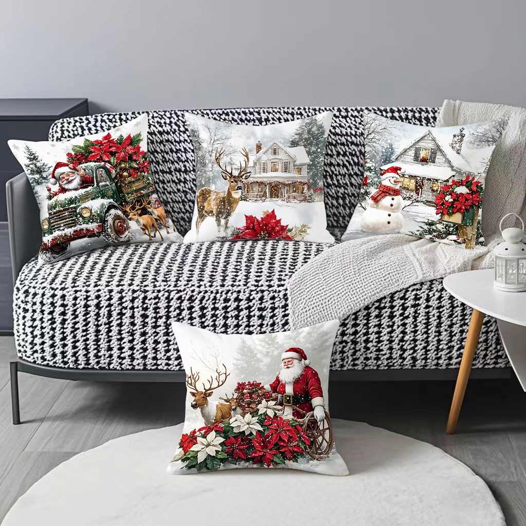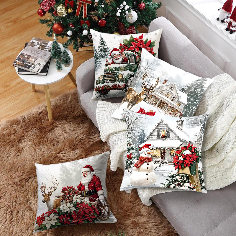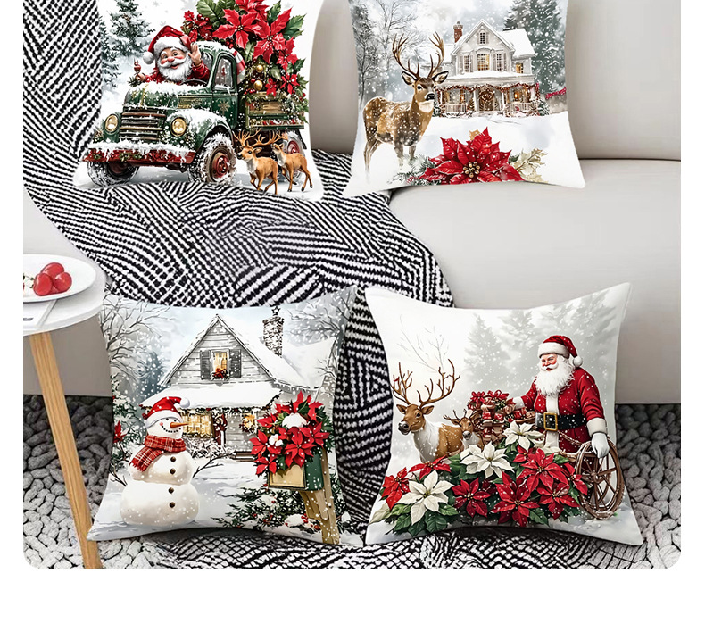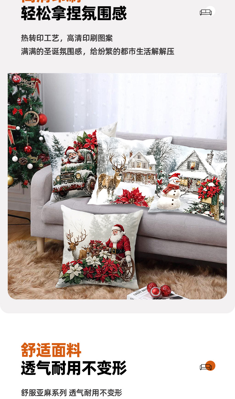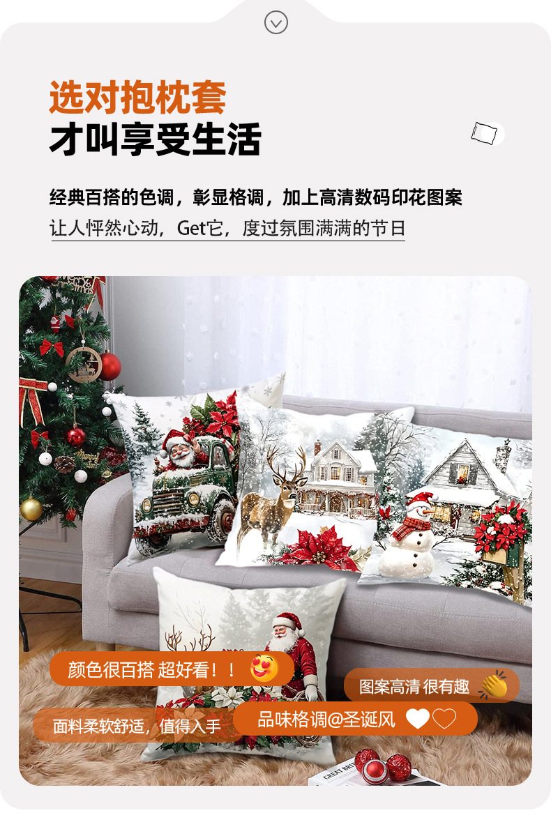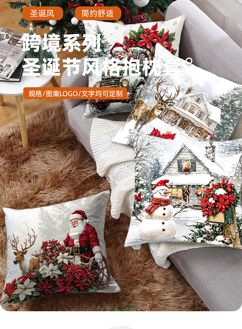 新款圣诞节抱枕套数码印花卧室客厅沙发装饰腰垫靠垫套工厂批发