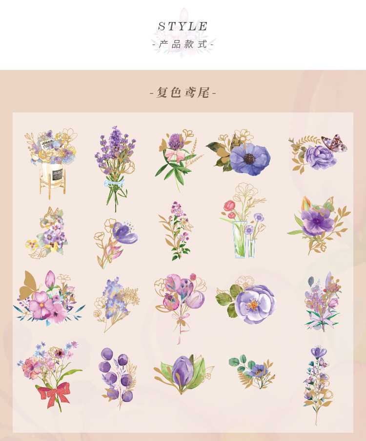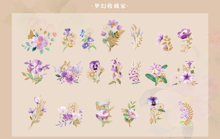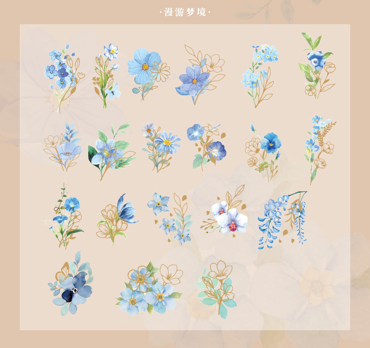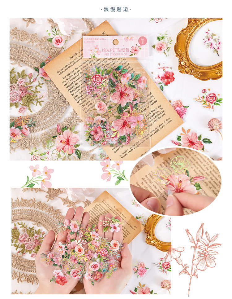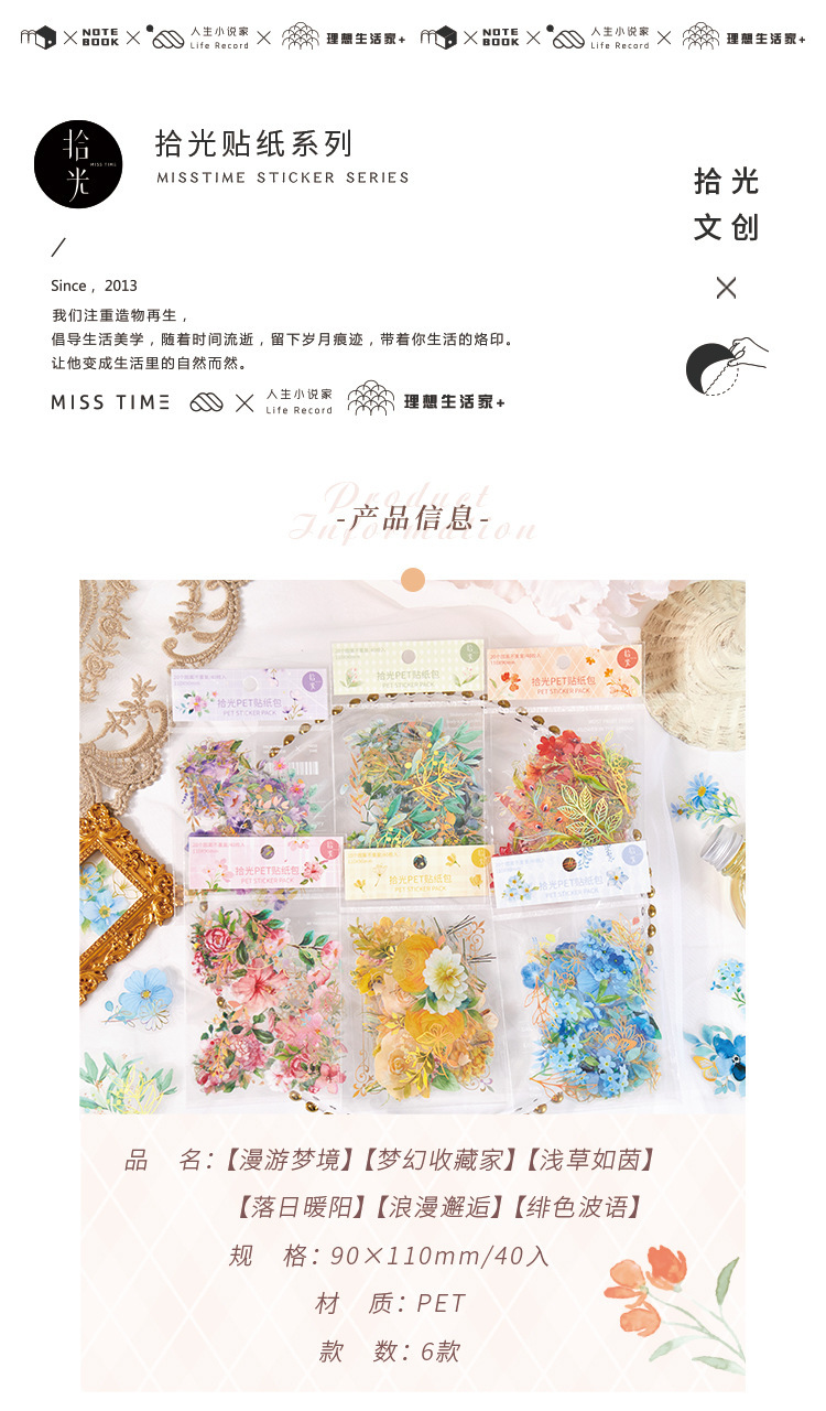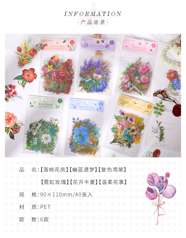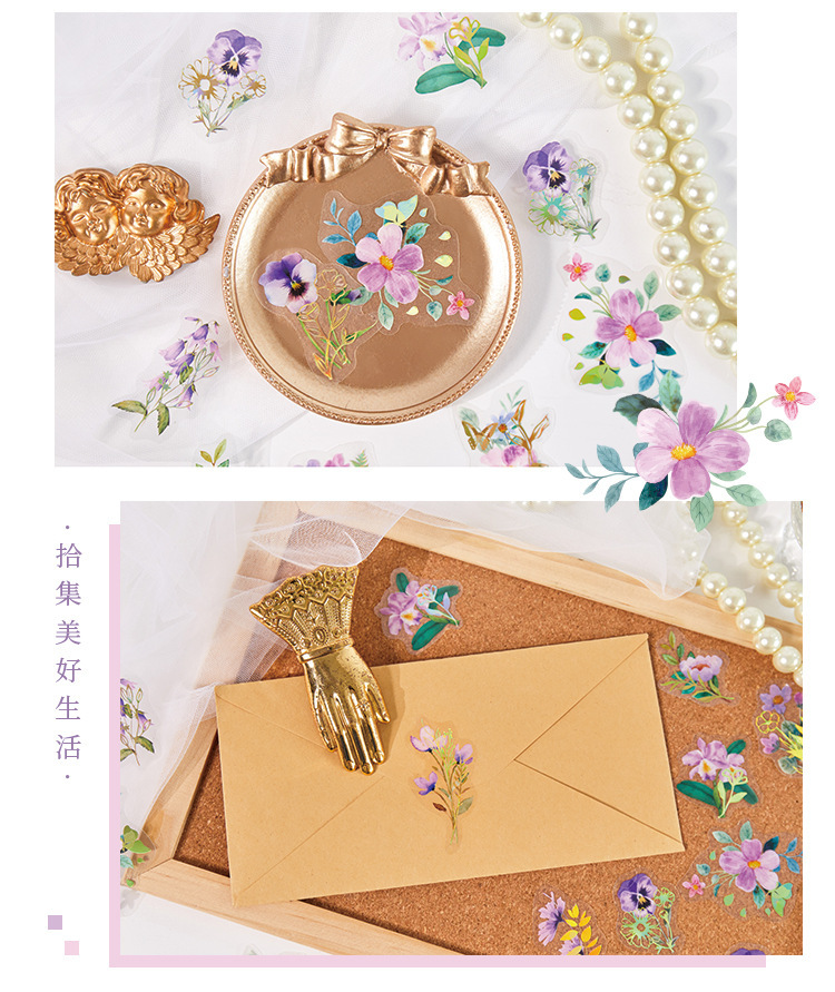 拾光花朵pet贴纸 漫游梦境ins咕卡diy手帐打底贴纸装饰素材贴纸包