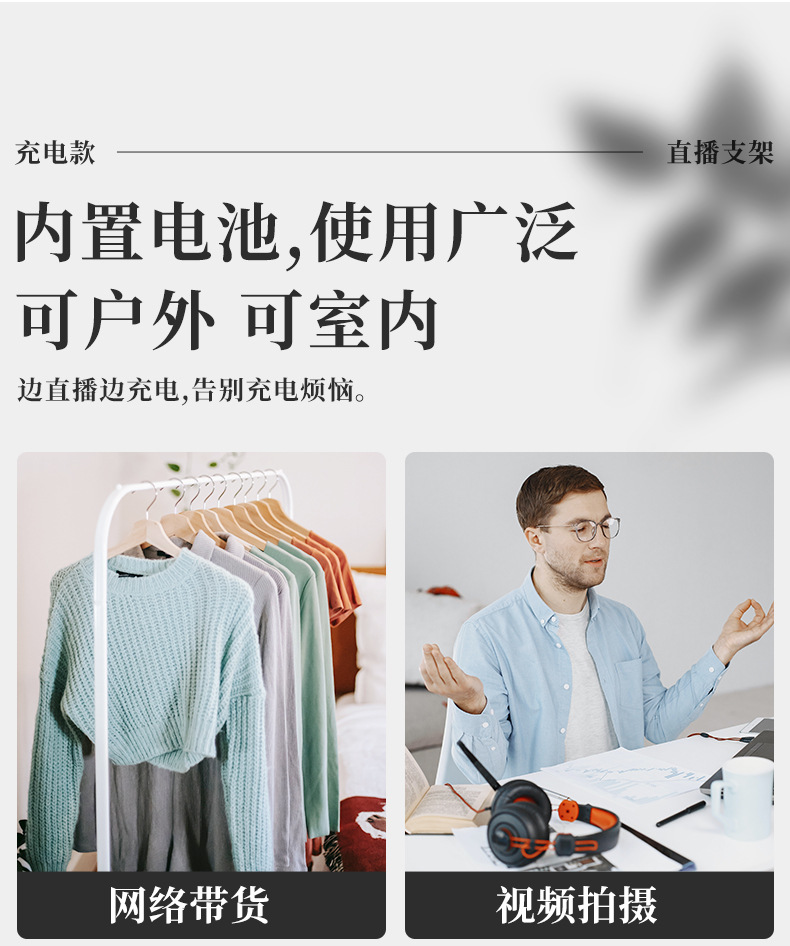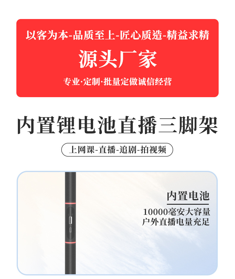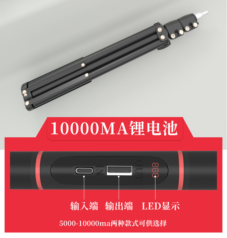 新品可充电款手机支架 多功能直播支架 户外露营 移动电源三脚架