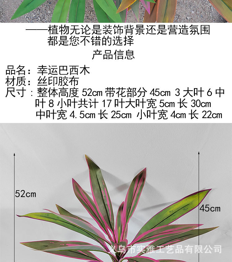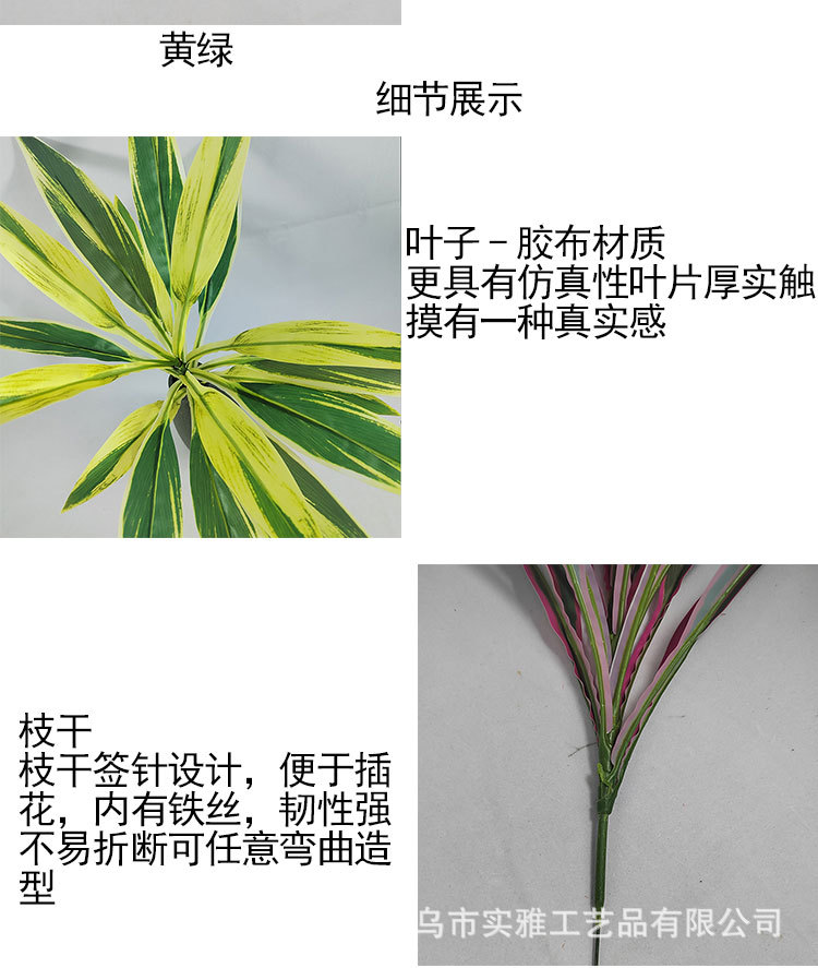 跨境专供仿真巴西木龙血树绿植室内造景植物墙插花配材仿真叶批发