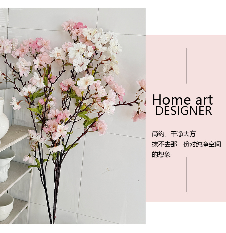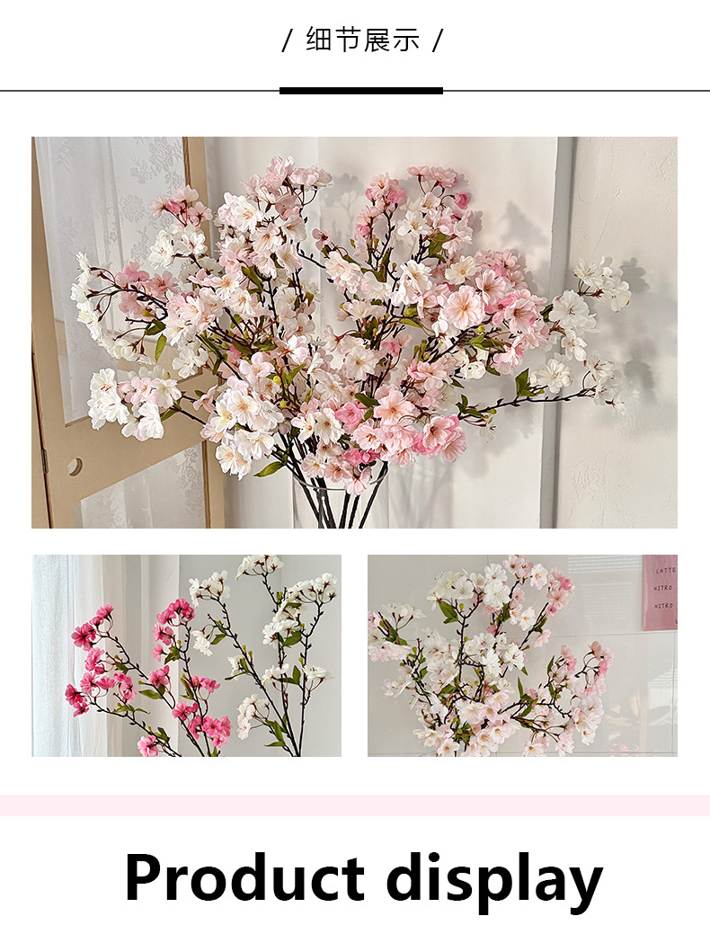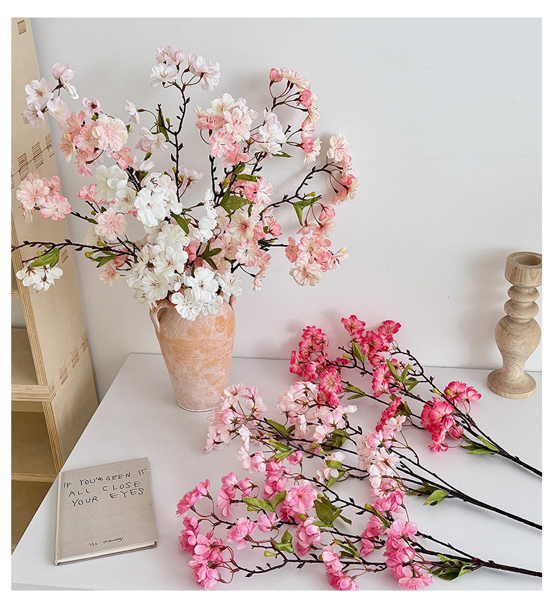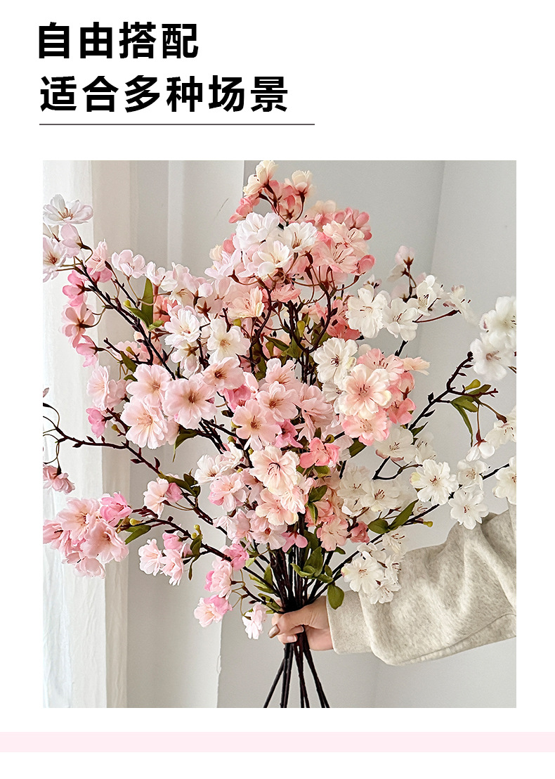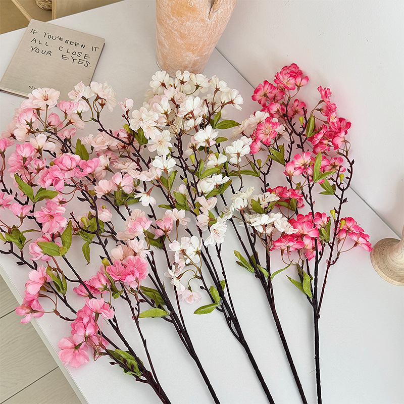 仿真樱花45头带叶樱花家居装饰摆件假花婚庆插花布置造景跨境热销