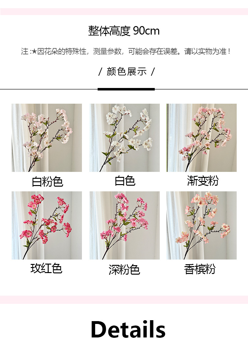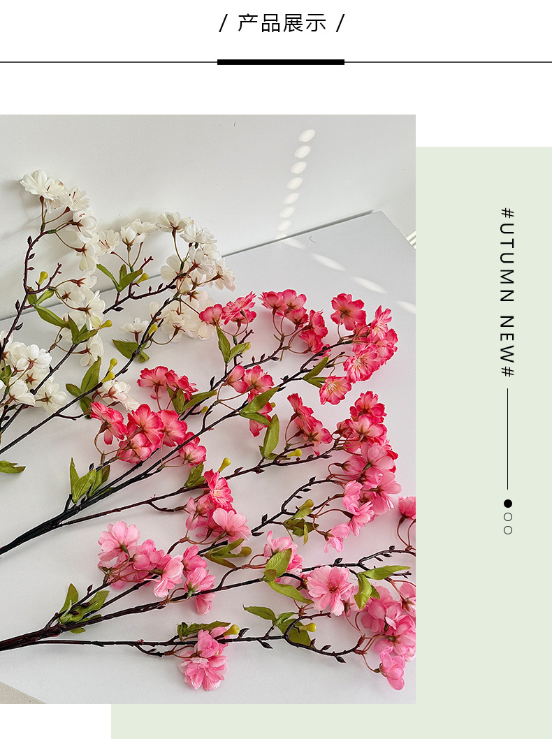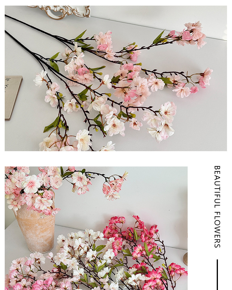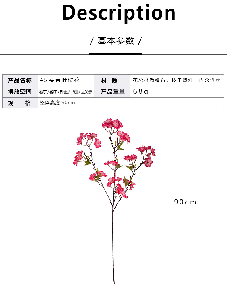 仿真樱花45头带叶樱花家居装饰摆件假花婚庆插花布置造景跨境热销