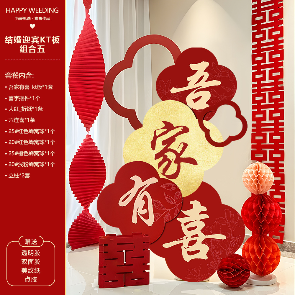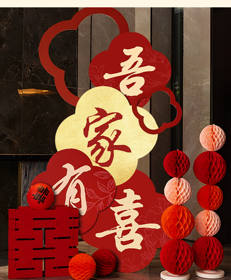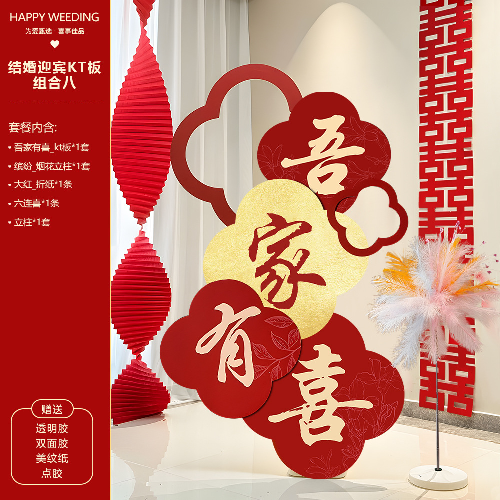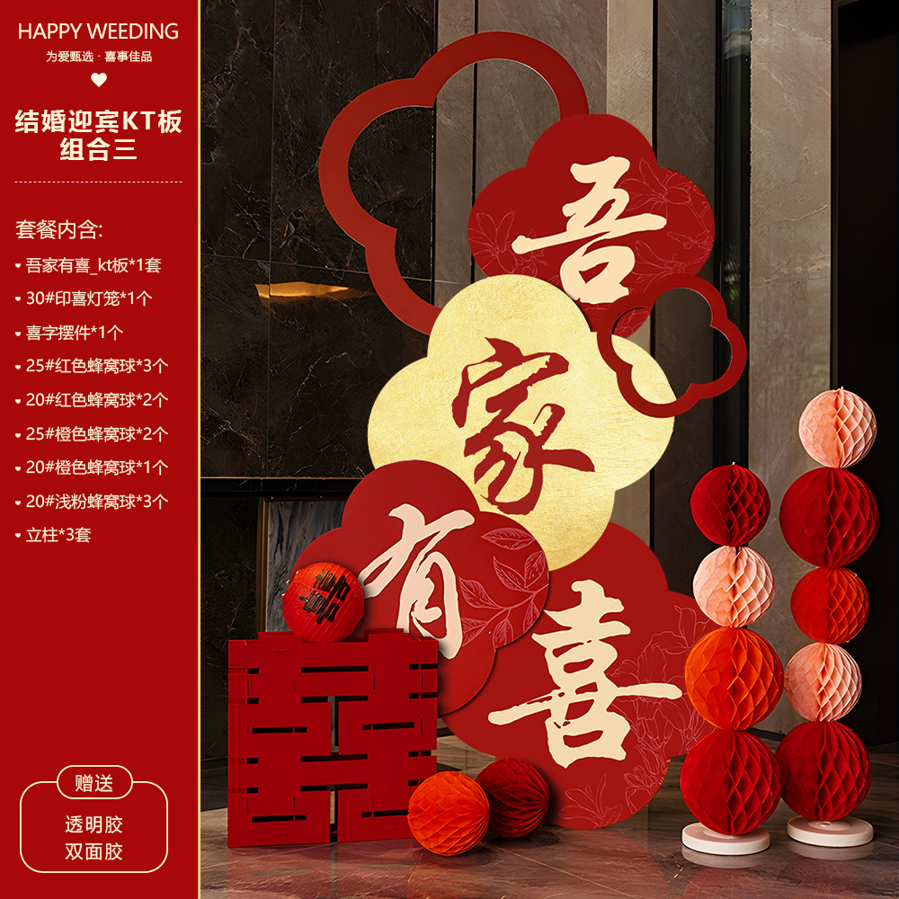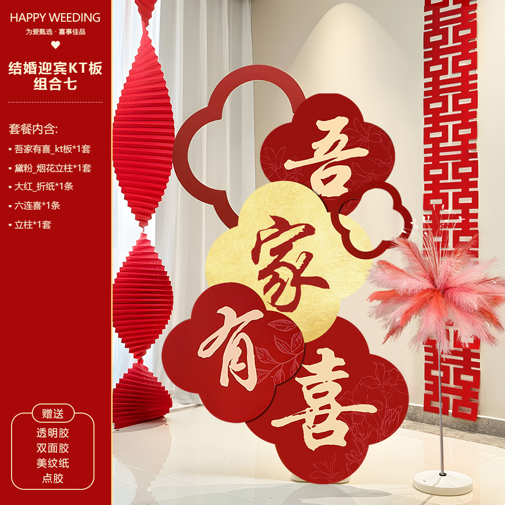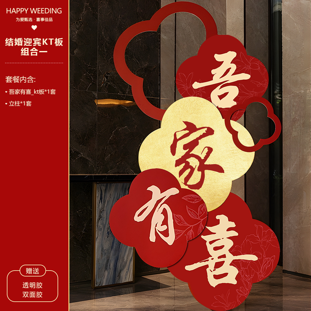 吾家有喜KT板迎宾牌酒店婚房布置套装客厅结婚订婚礼晨袍背景装饰