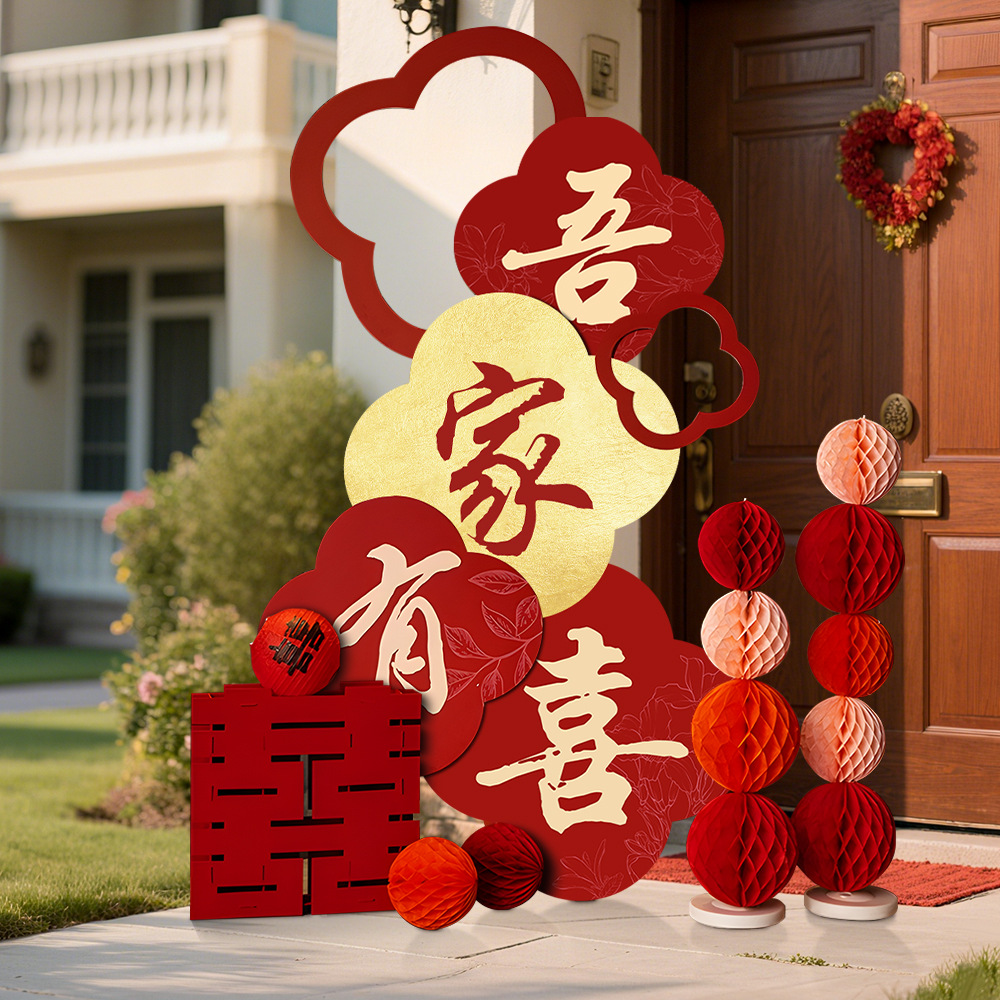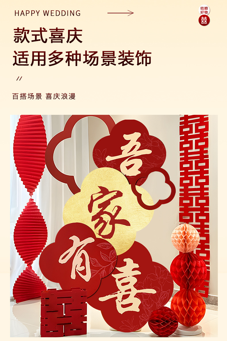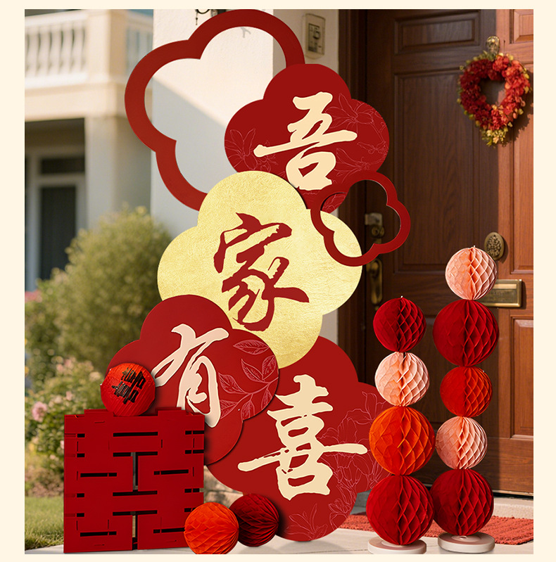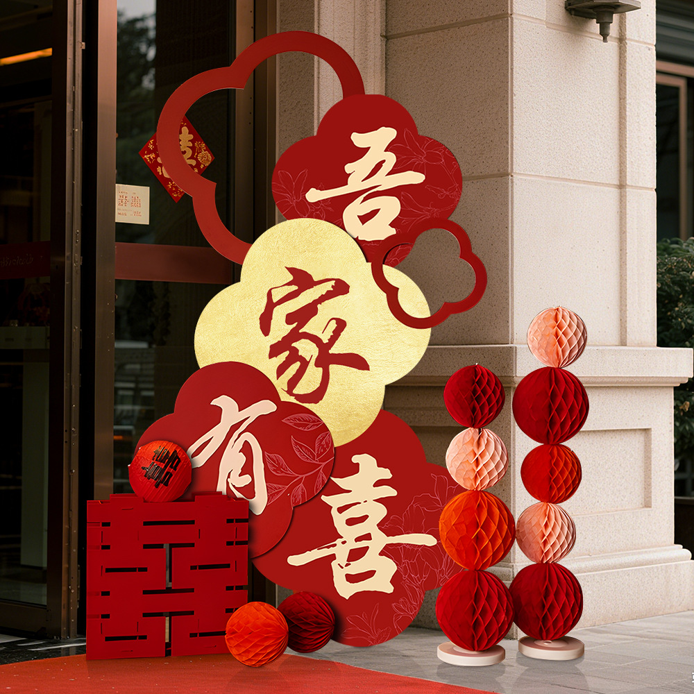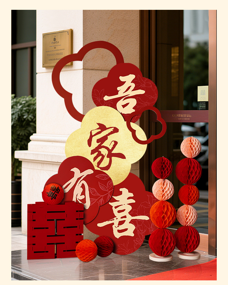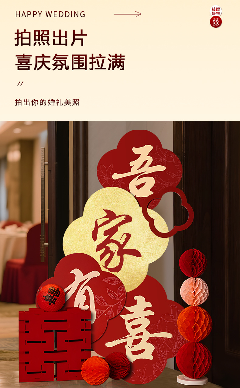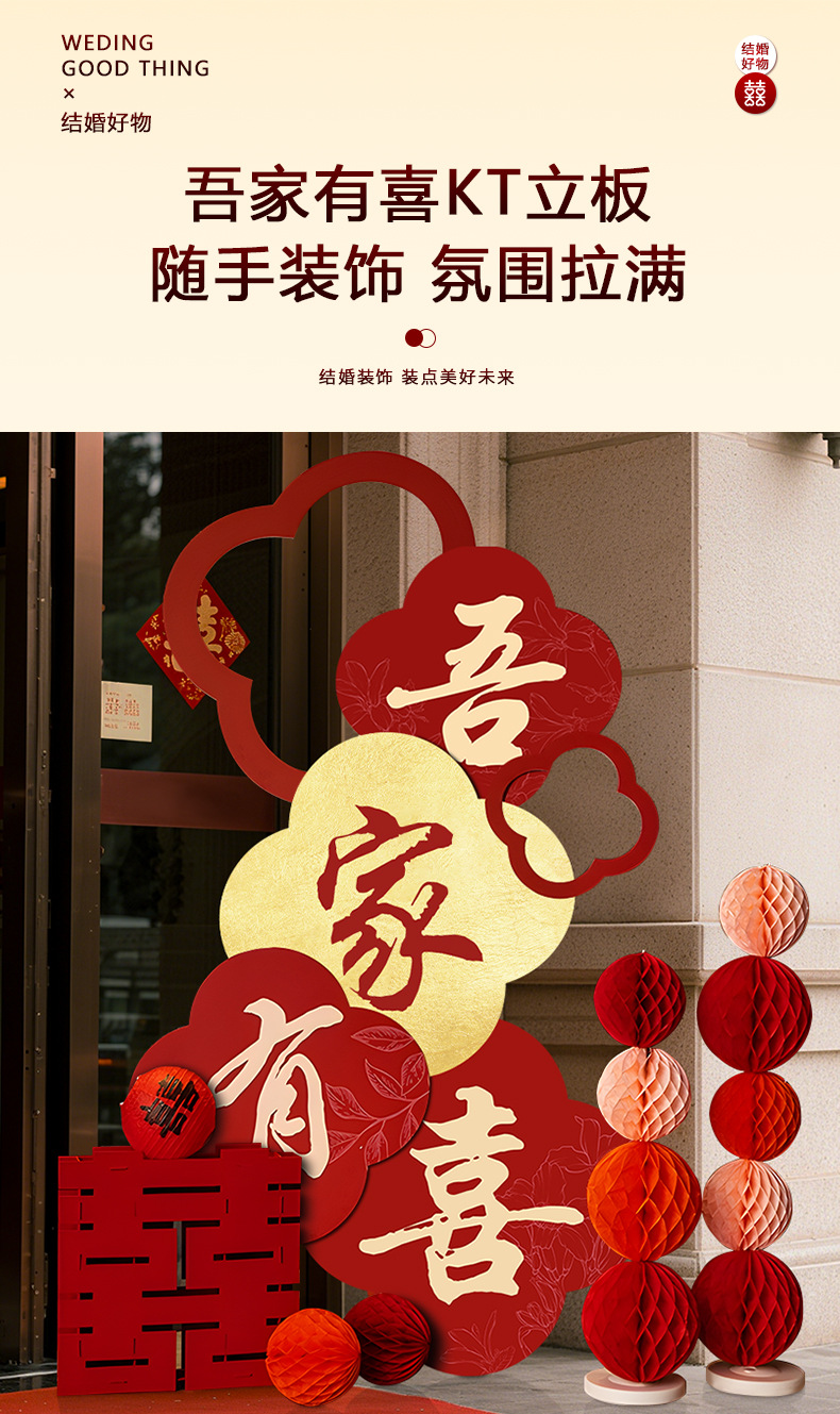 吾家有喜KT板迎宾牌酒店婚房布置套装客厅结婚订婚礼晨袍背景装饰