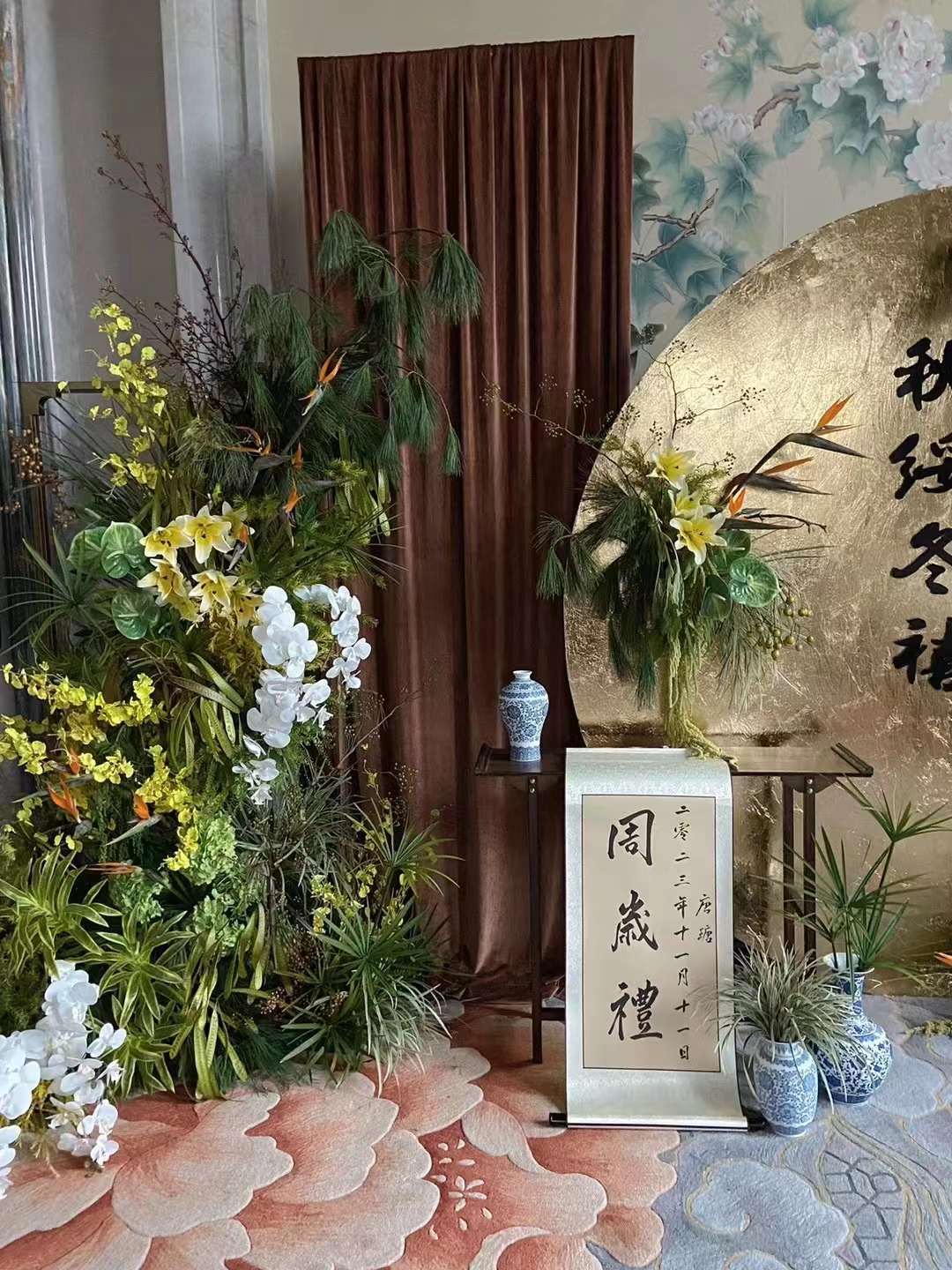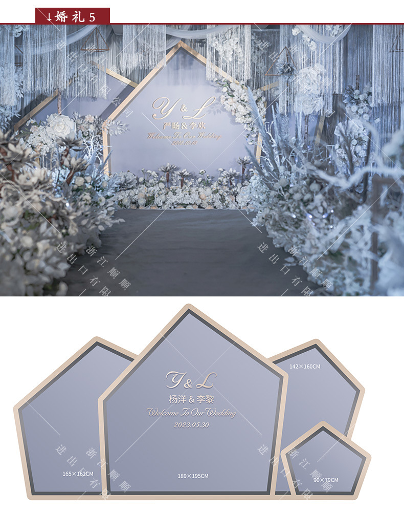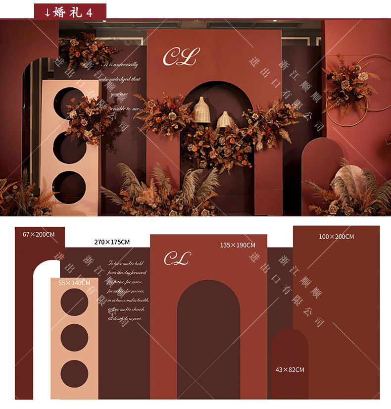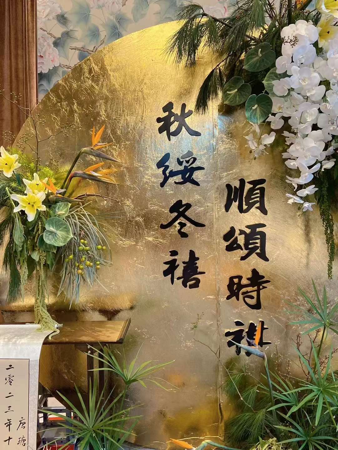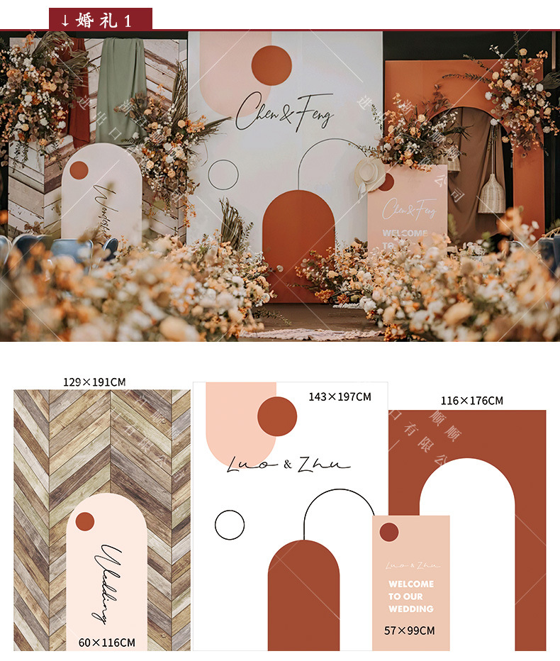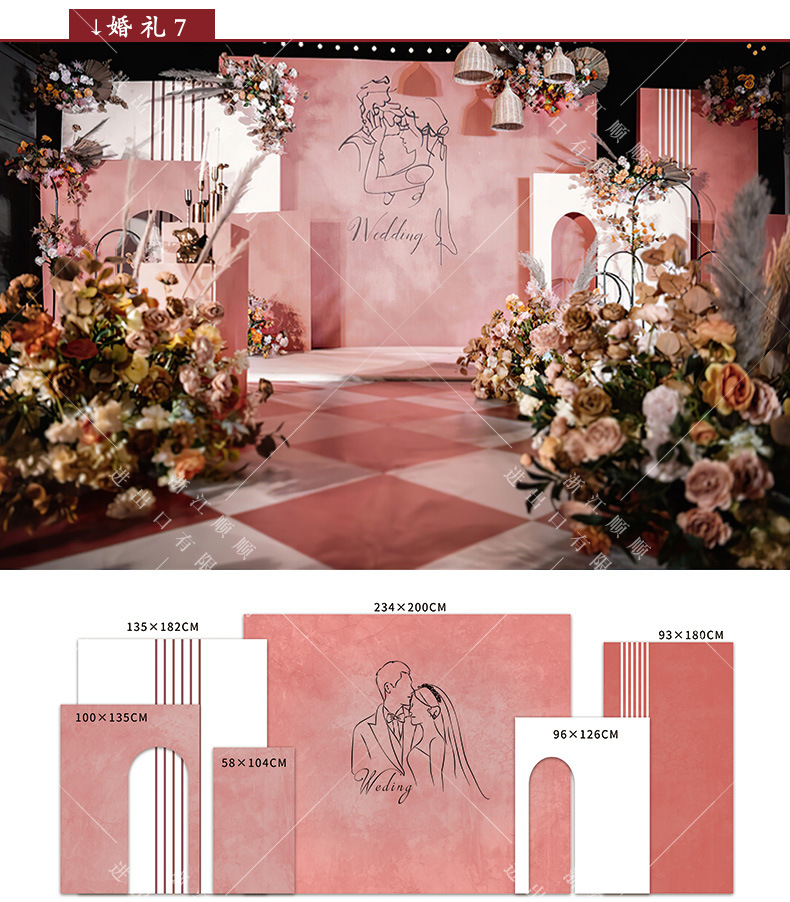 金色新中式订婚宴场景布置国风设计摆台婚礼布置结婚背景kt板