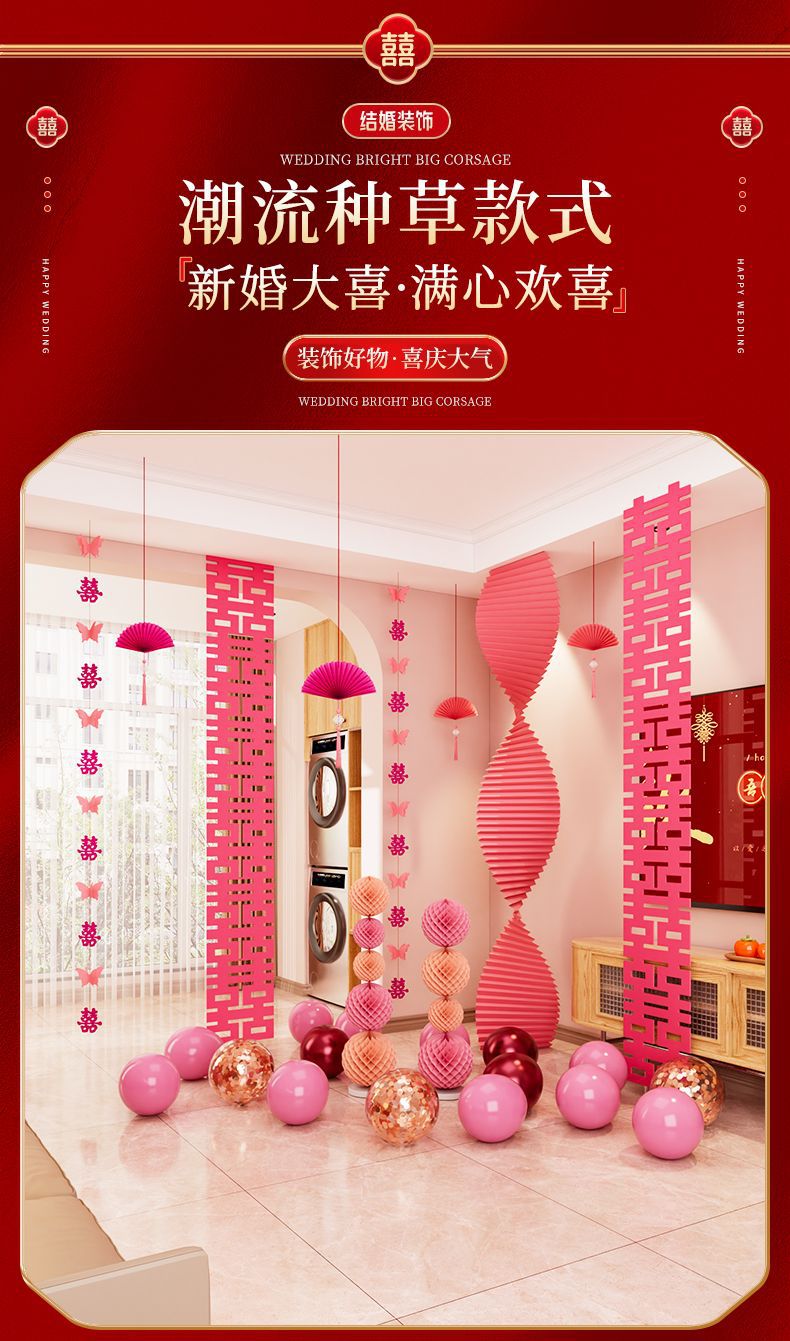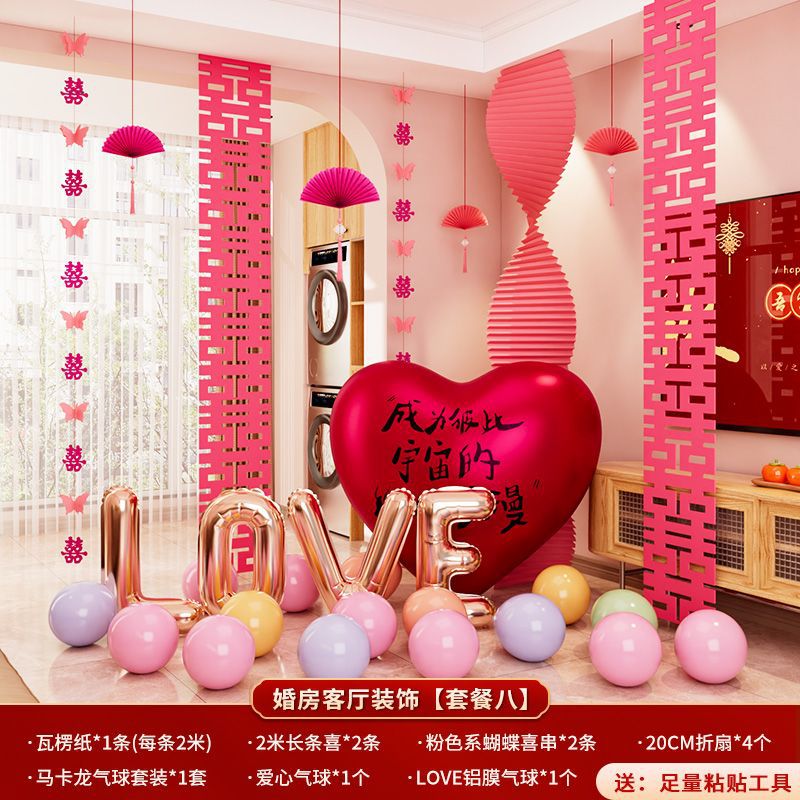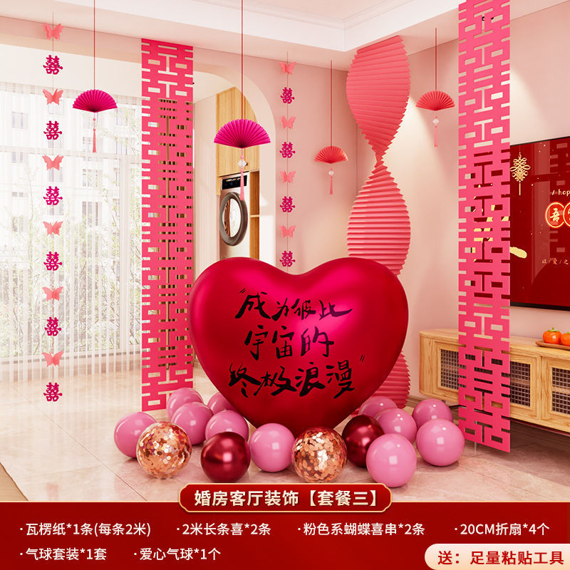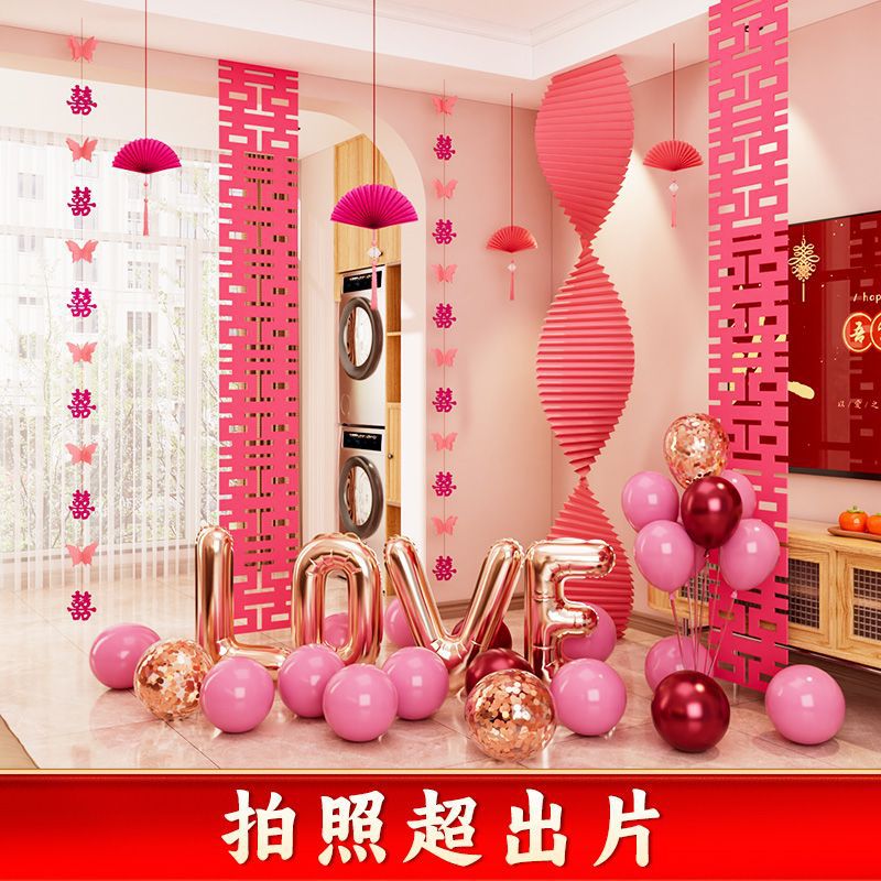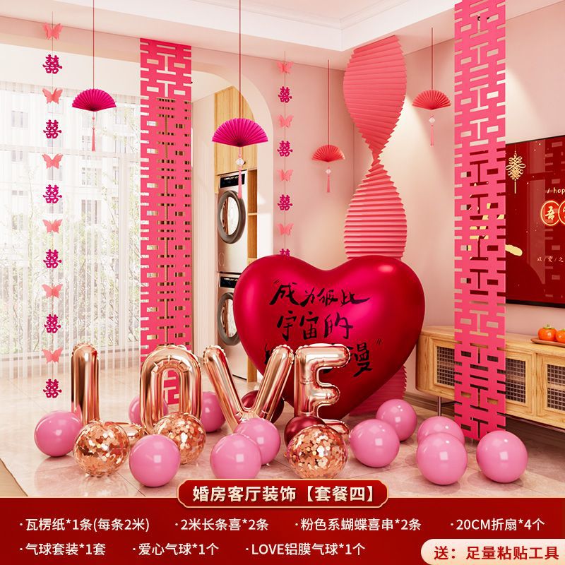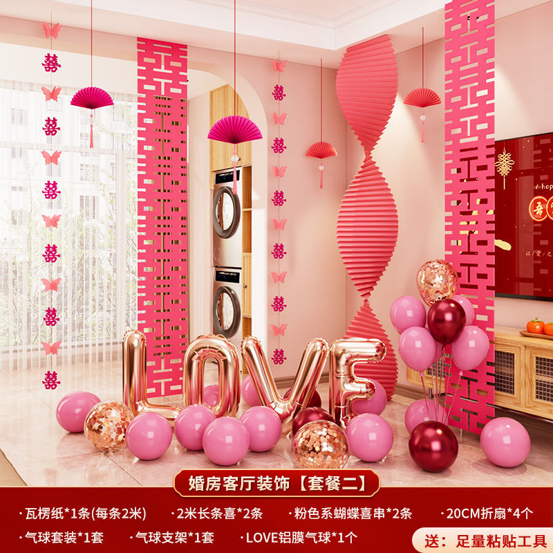 结婚装饰瓦楞纸粉色婚房布置套装女方卧室婚礼晨袍拍照背景墙出片