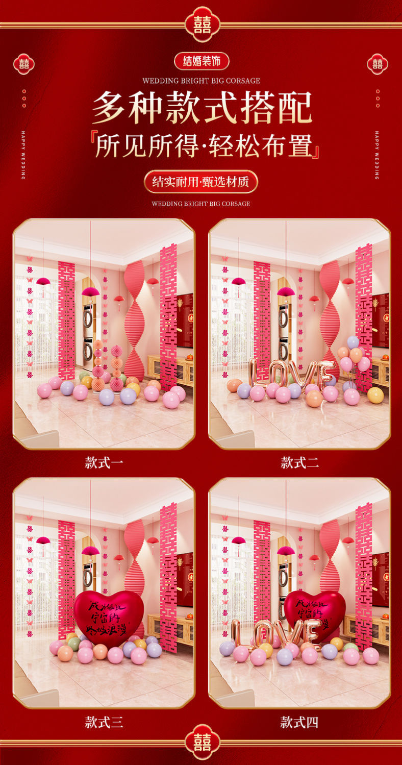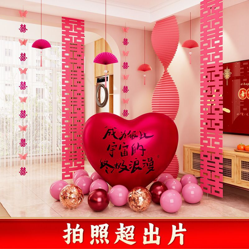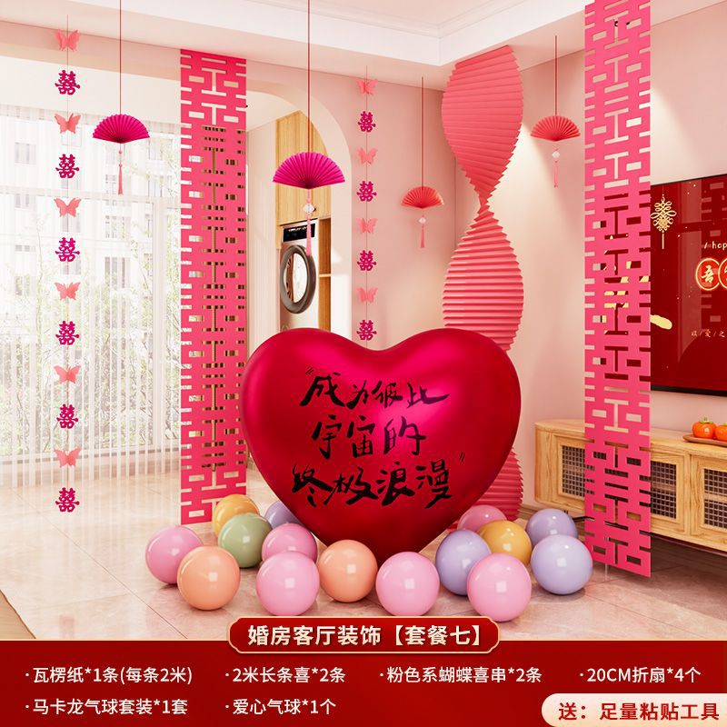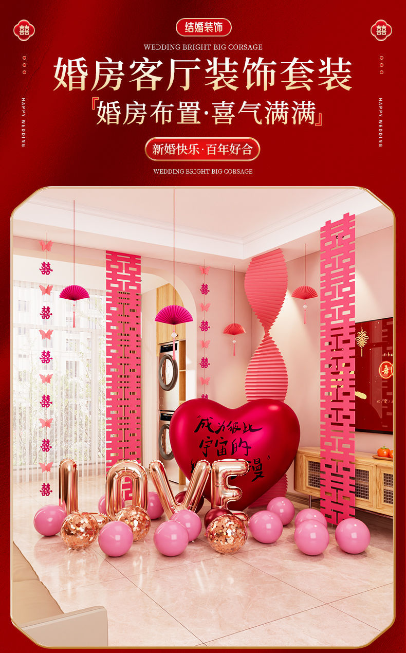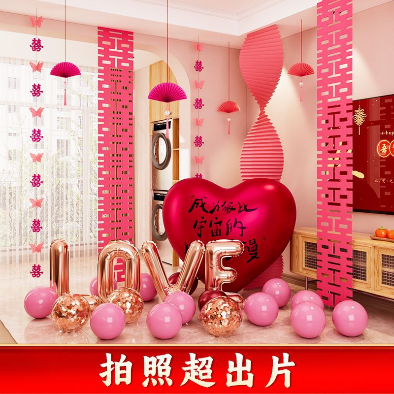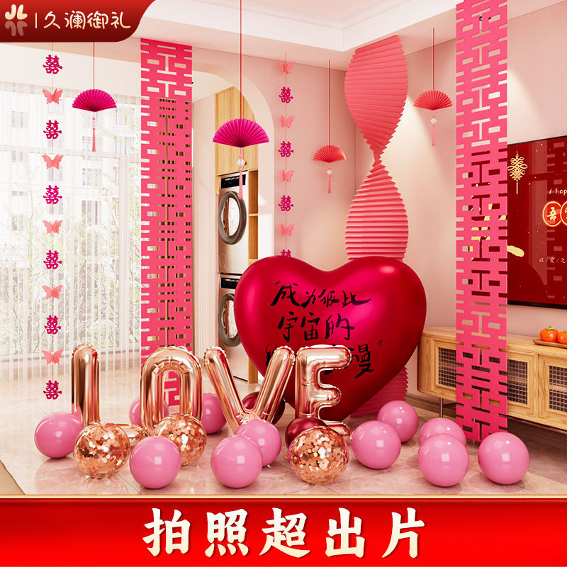 结婚装饰瓦楞纸粉色婚房布置套装女方卧室婚礼晨袍拍照背景墙出片