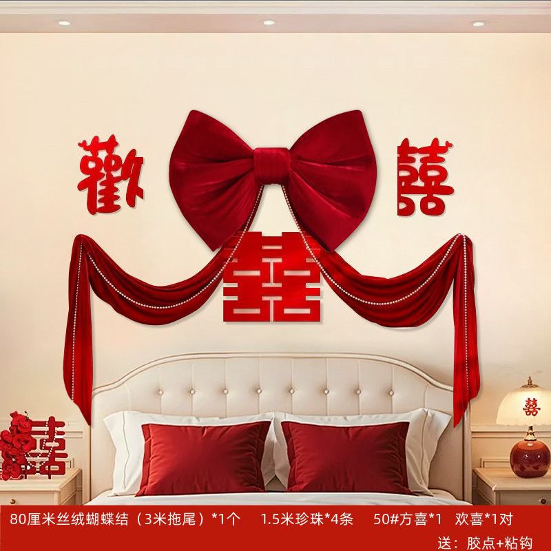 婚房布置结婚新房女方婚礼订婚宴超大蝴蝶结氛围背景网红装饰套装