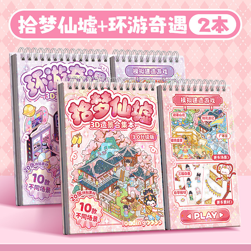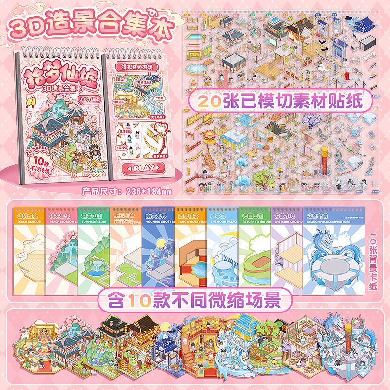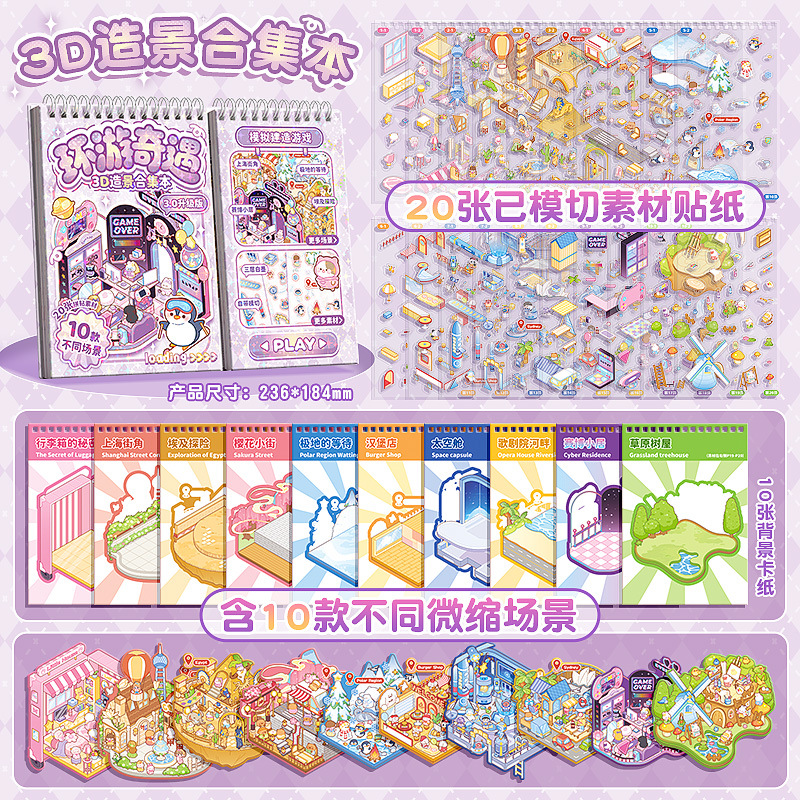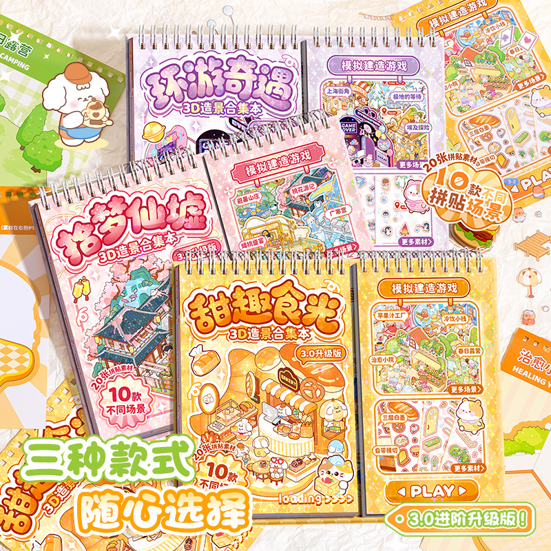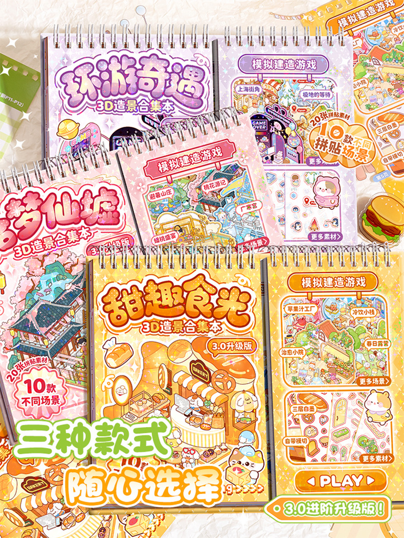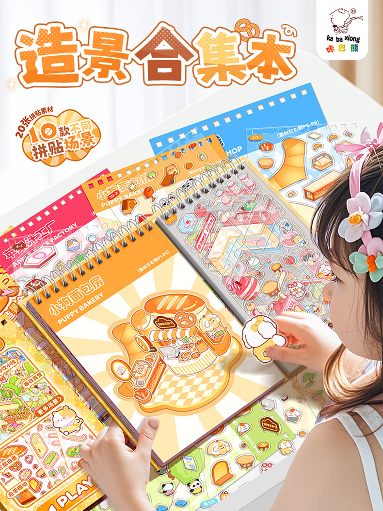 咔巴熊微缩场景合集本套装造景场景小贴纸3D立体视觉微缩小屋女孩