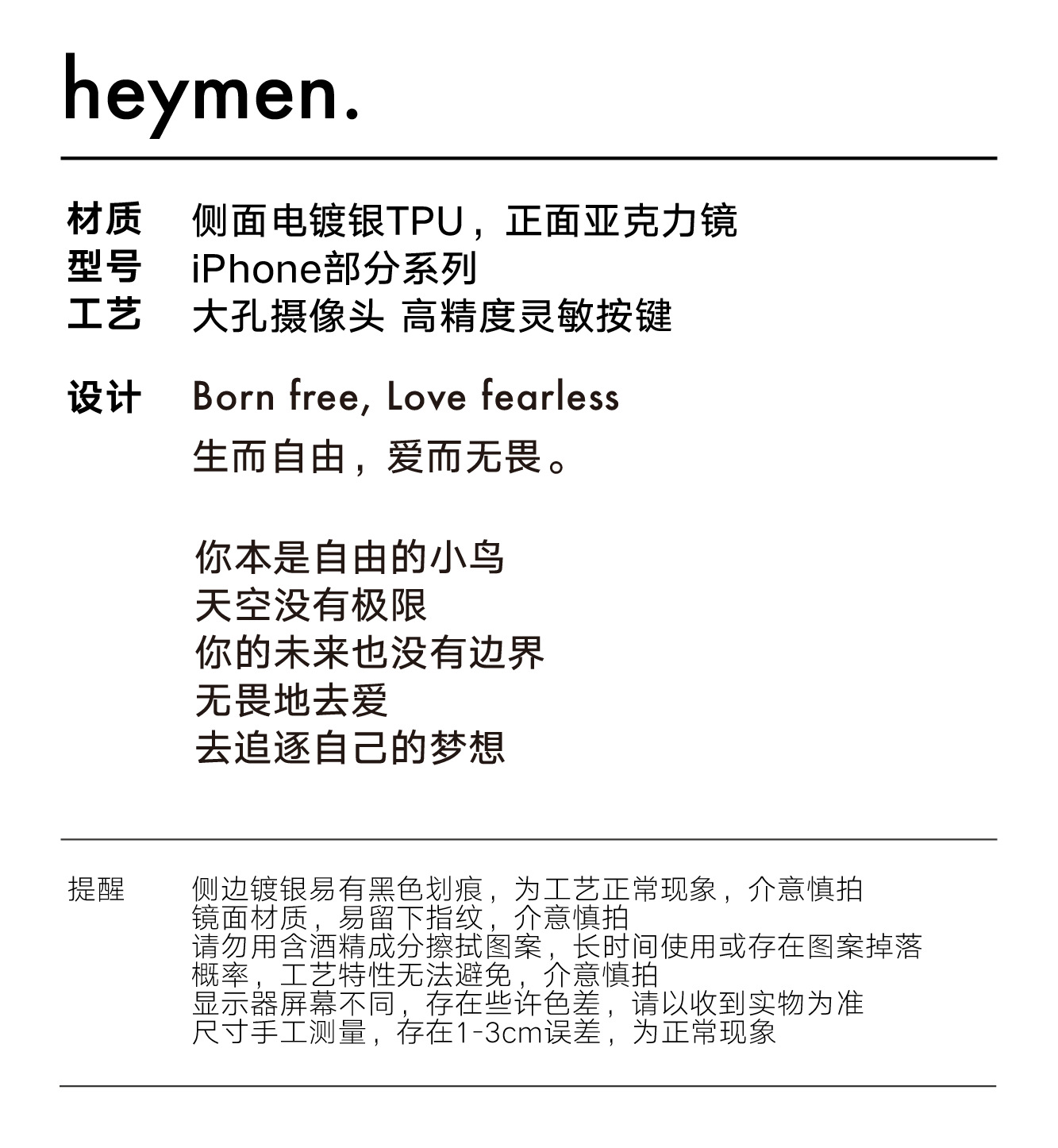 Heymen黑门 自由小鸟 原创设计手绘镜面iPhone苹果手机壳 生而自