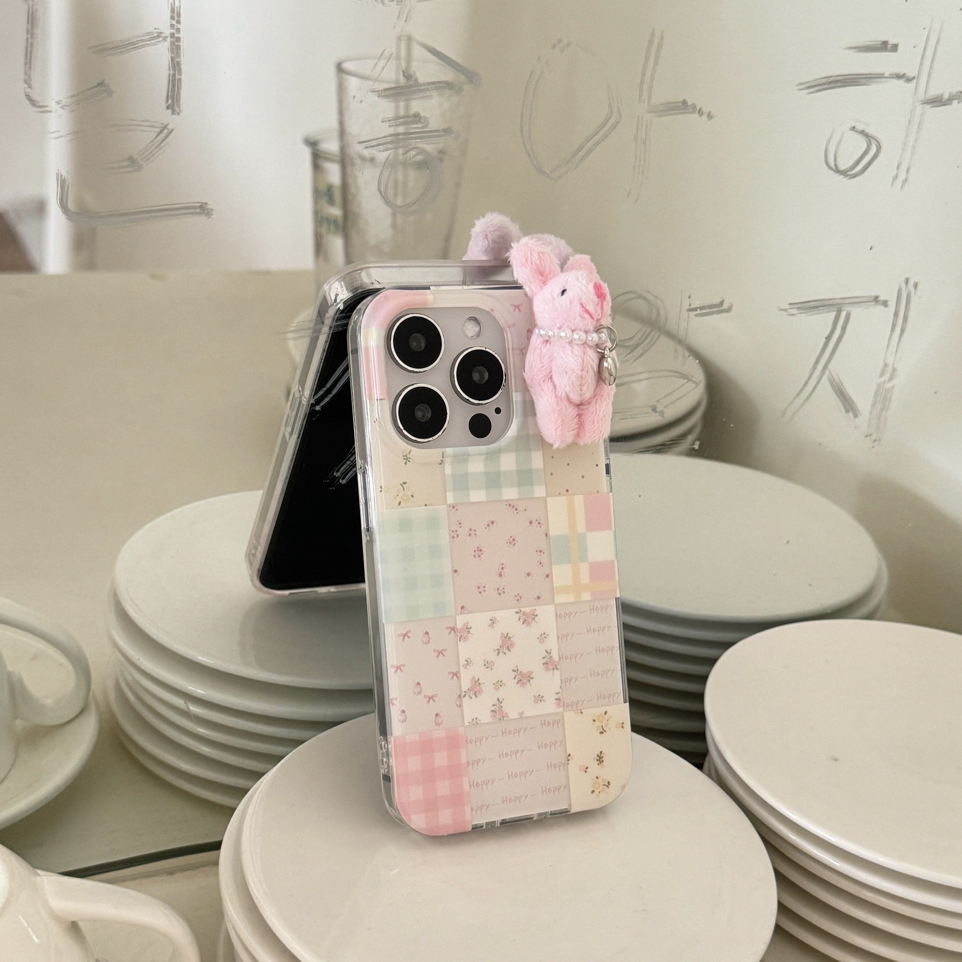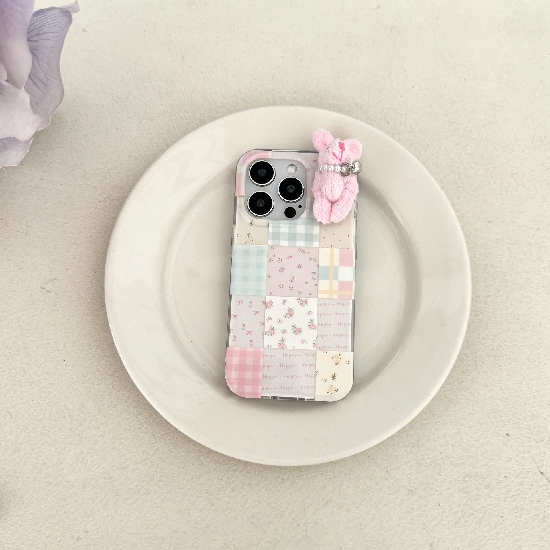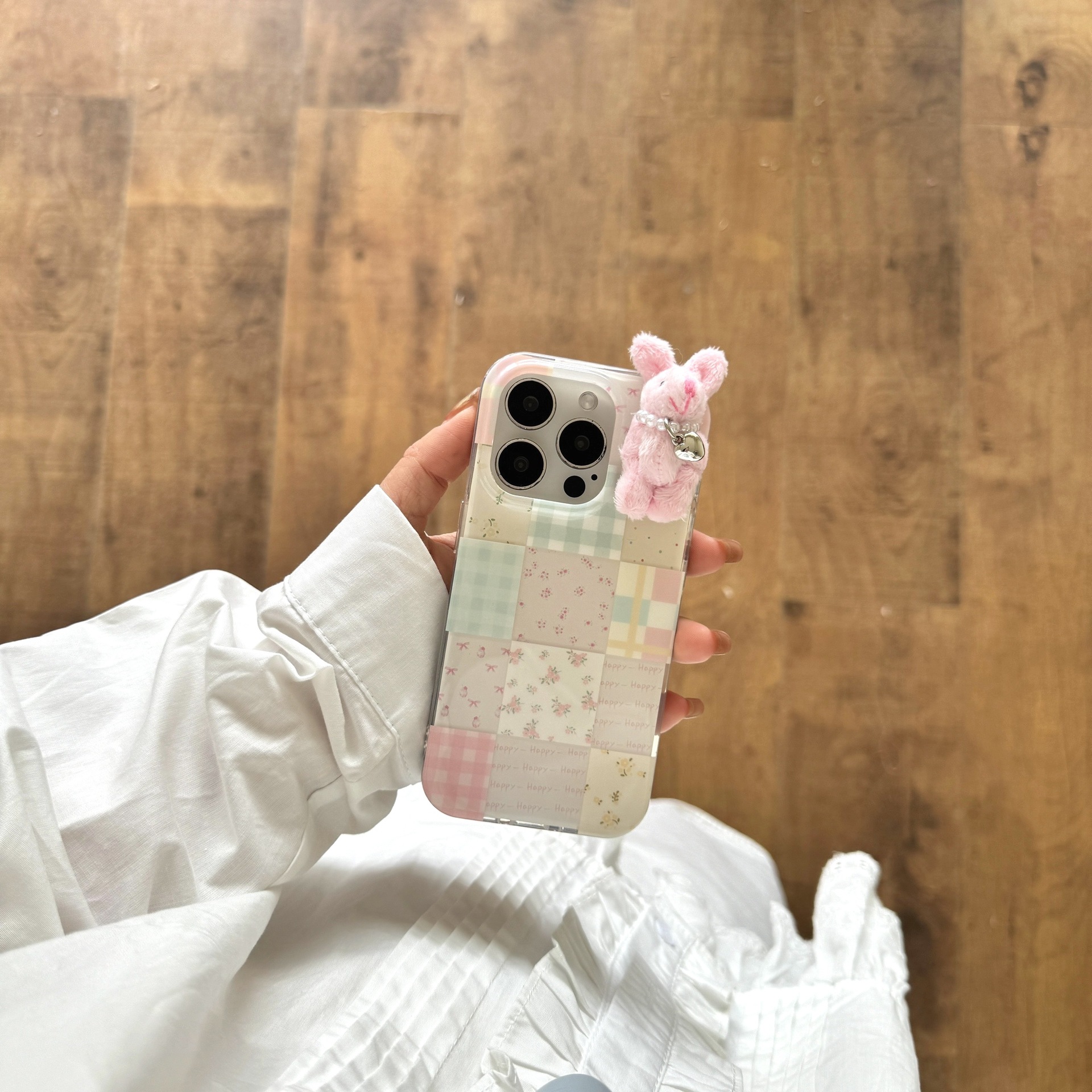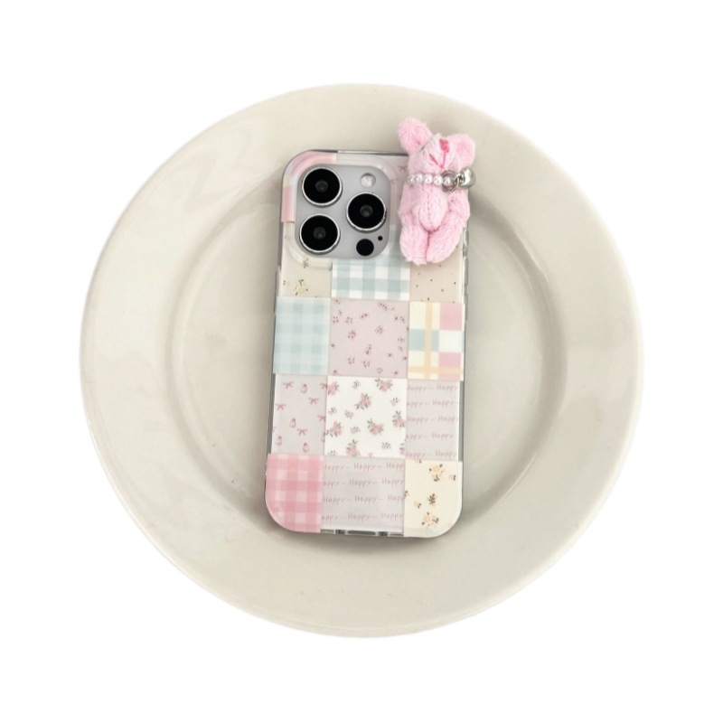 少女可爱格纹小兔子适用苹果16promax手机壳iPhone15卡通14碎花13