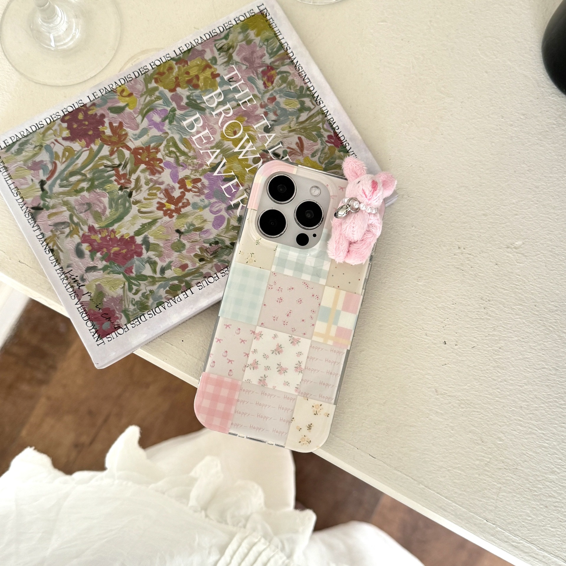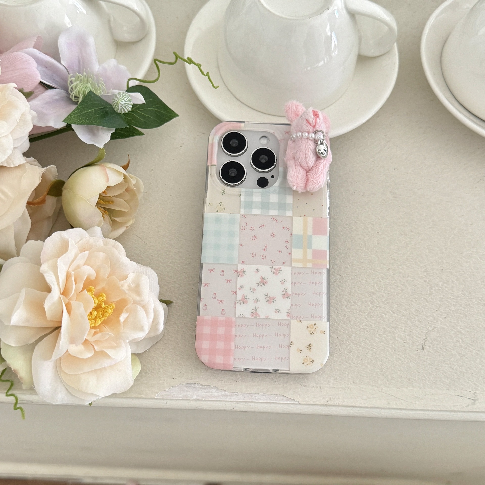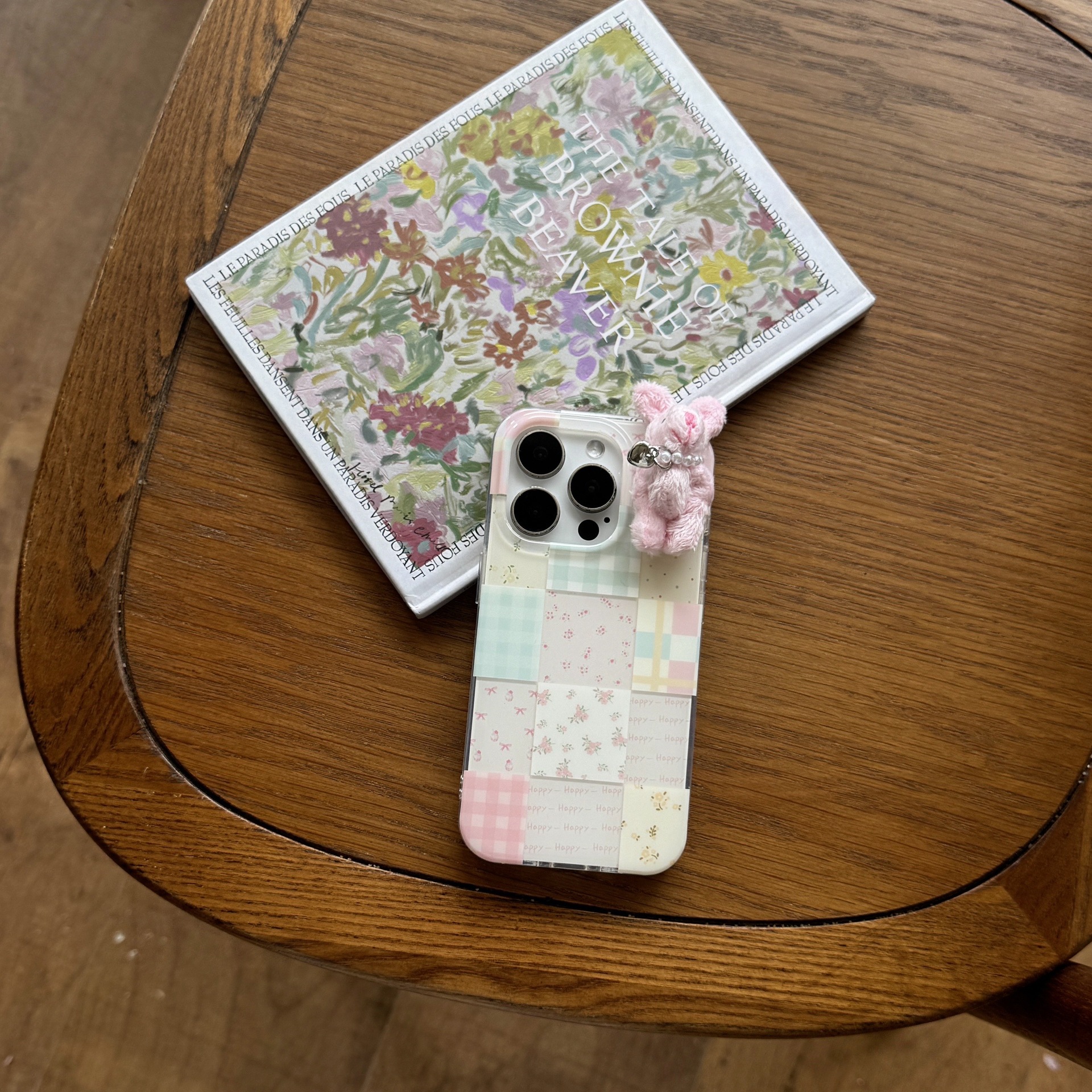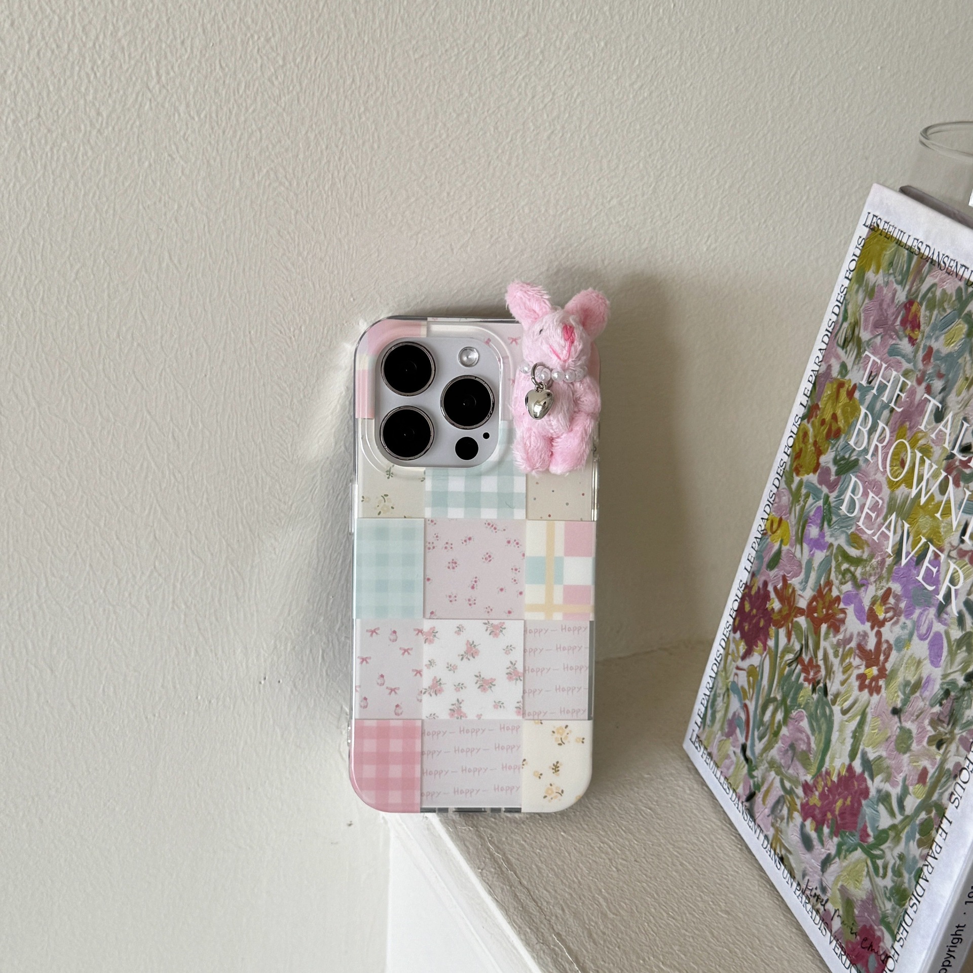 少女可爱格纹小兔子适用苹果16promax手机壳iPhone15卡通14碎花13
