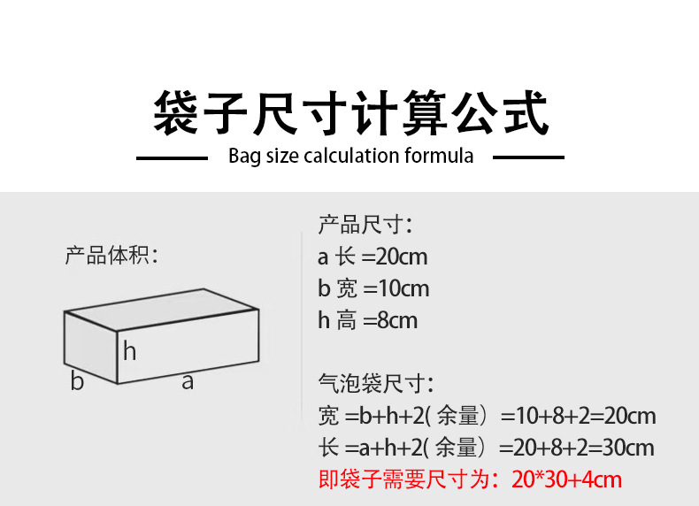 | 自粘全新双层加厚8丝气泡袋;10*20+4cm 200个/件;袋子厚7MM左右 | USD $7.26 | 988997 piece available |