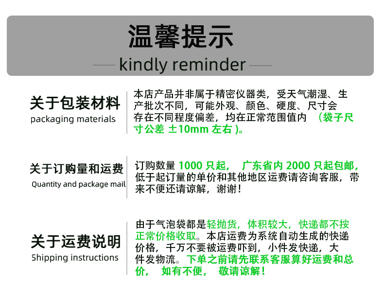 | self-adhesive brand new double-layer thickened 8 silk bubble bag; customized other sizes; bag thickness about 7mm(自粘全新双层加厚8丝气泡袋;定做其它尺寸;袋子厚7MM左右) | USD $2.27 | 985067 piece available |