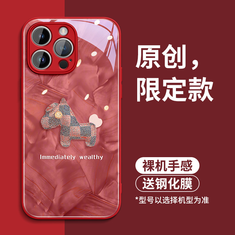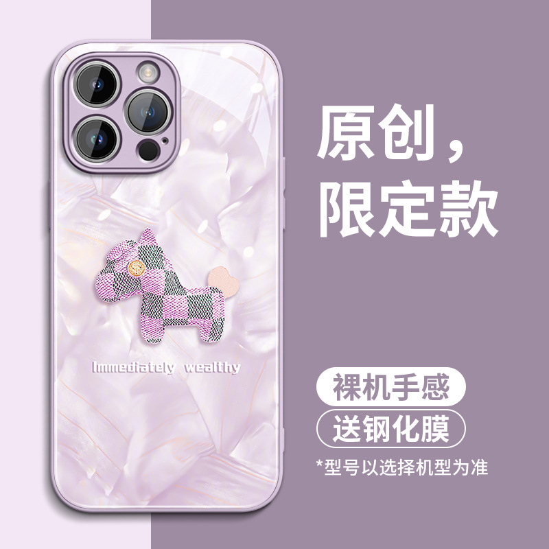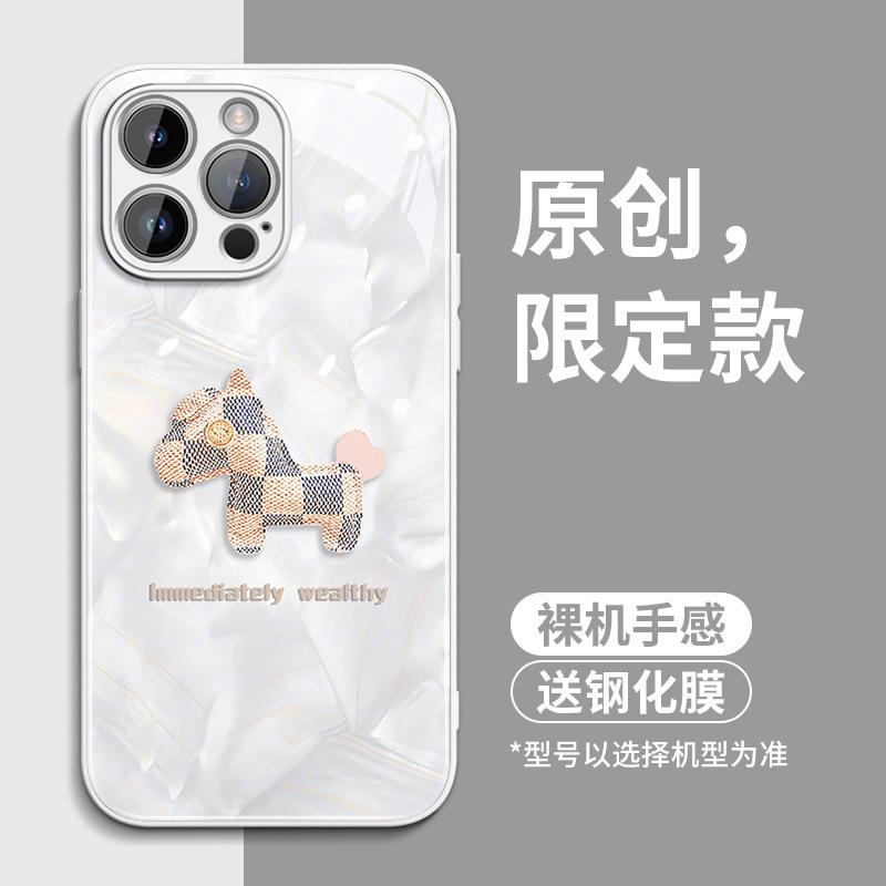 适用苹果17手机壳小马iPhone16pro套15玻璃14全包13防摔12xsmax