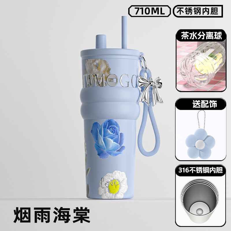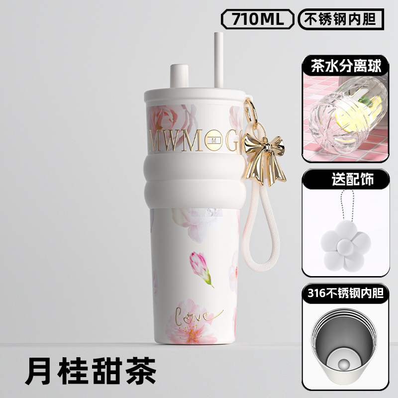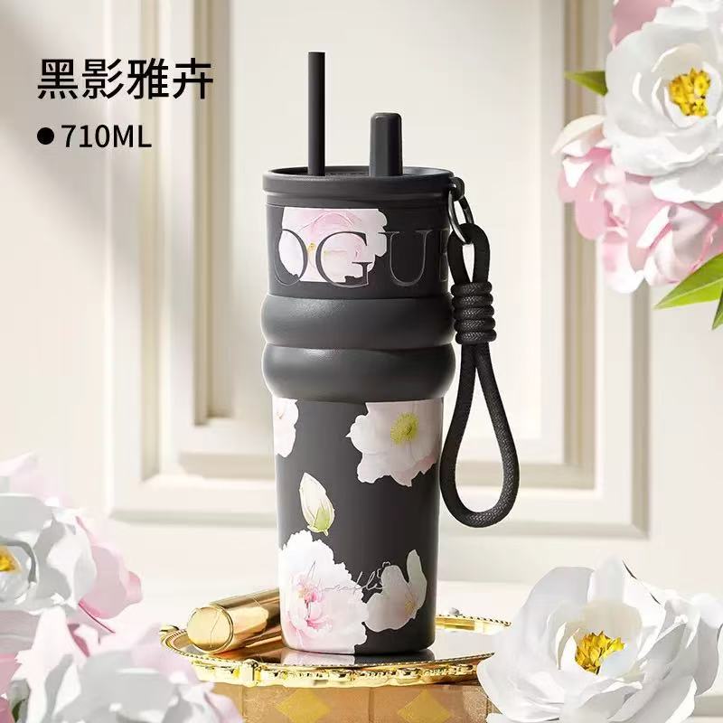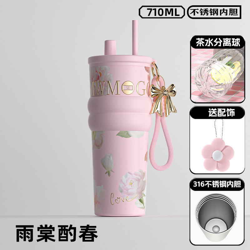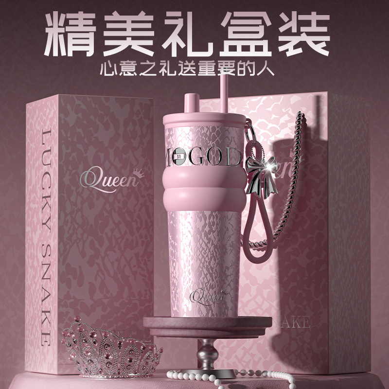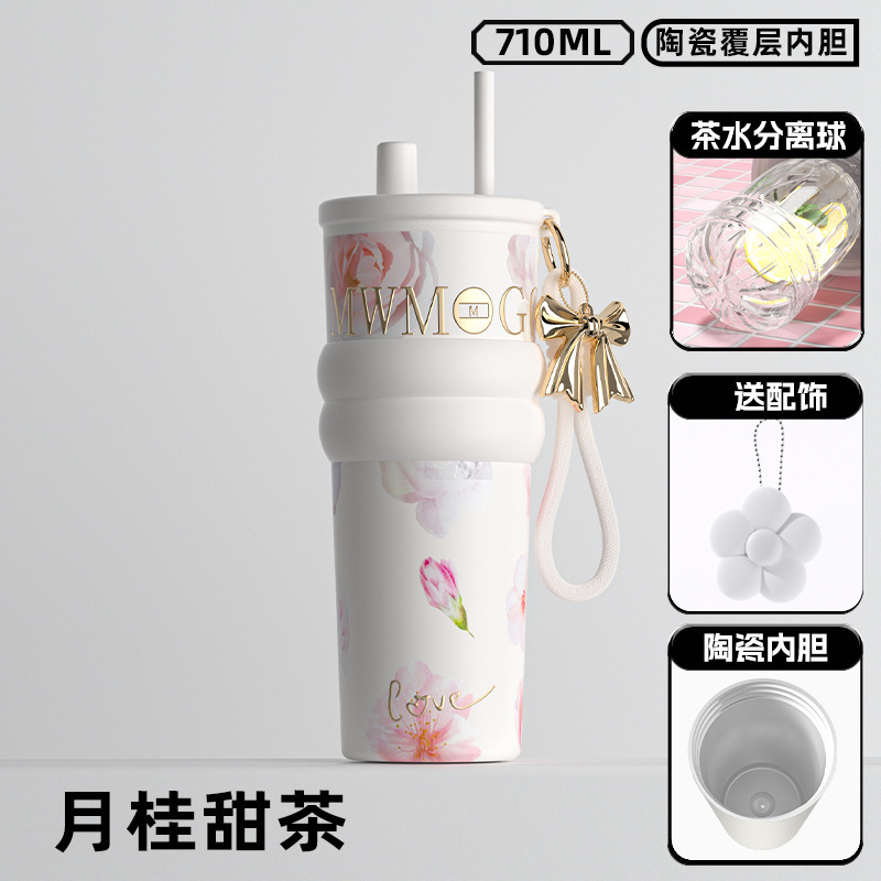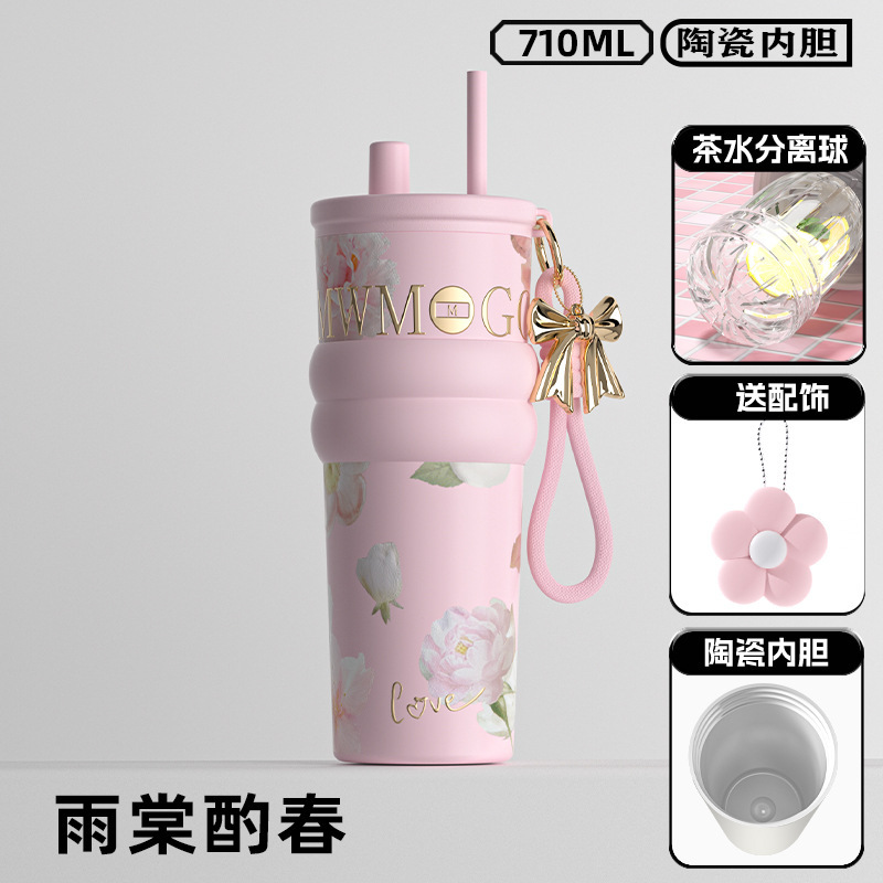 高颜值陶瓷内胆冰霸杯女士轻奢便携吸管杯高档双饮杯礼品水杯批发