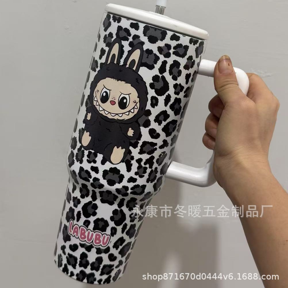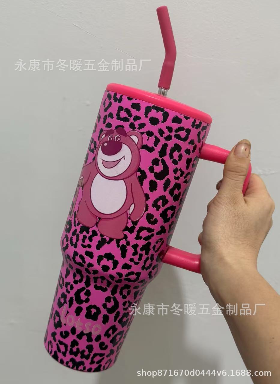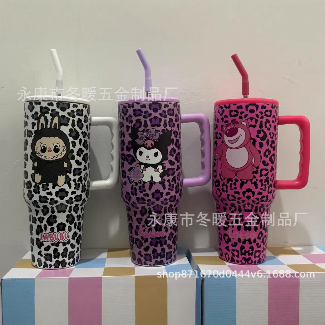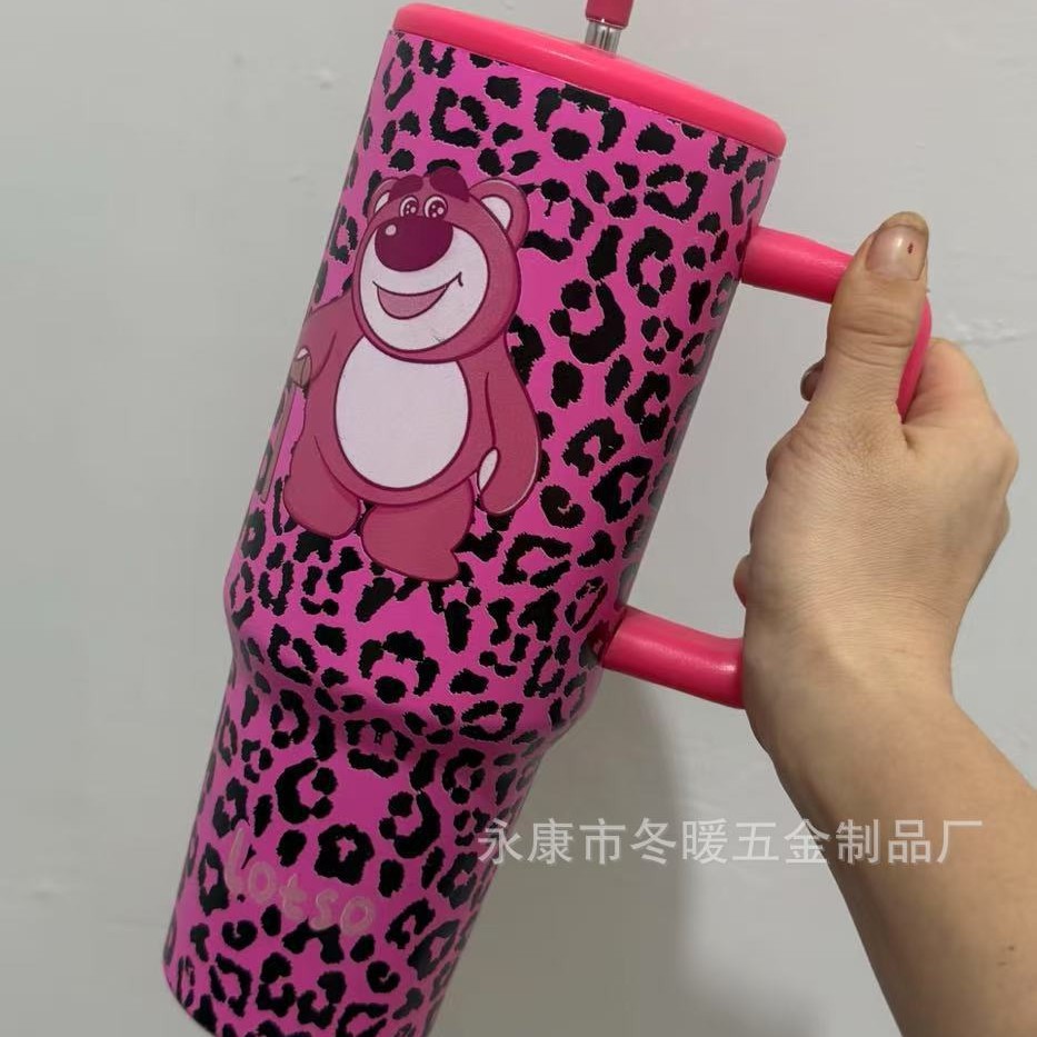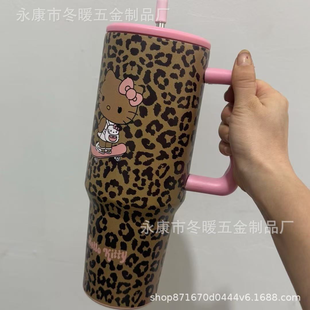 新款大容量40oz 三代时尚百搭豹纹手柄汽车杯车载水杯3D打印不锈