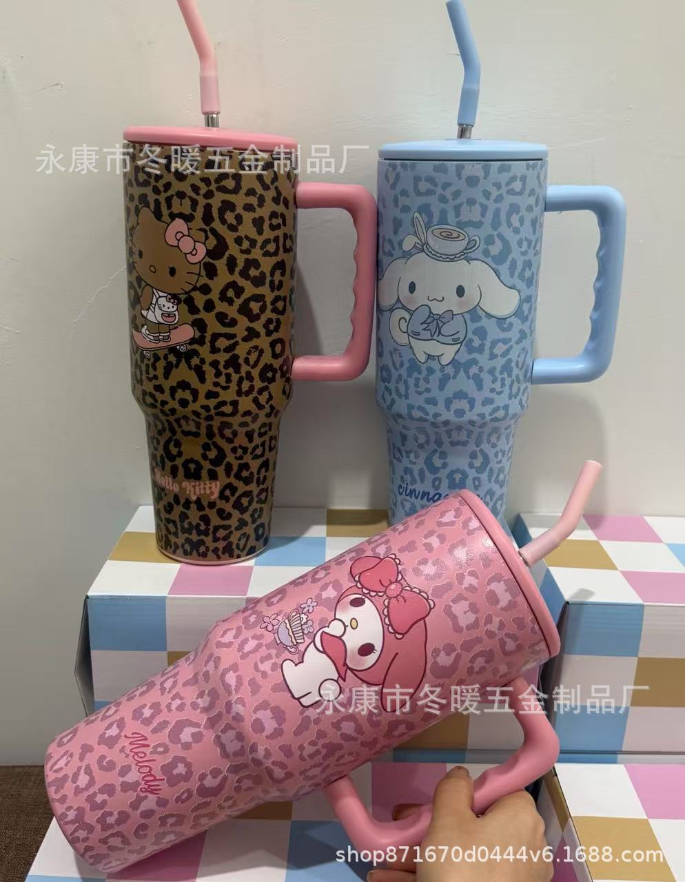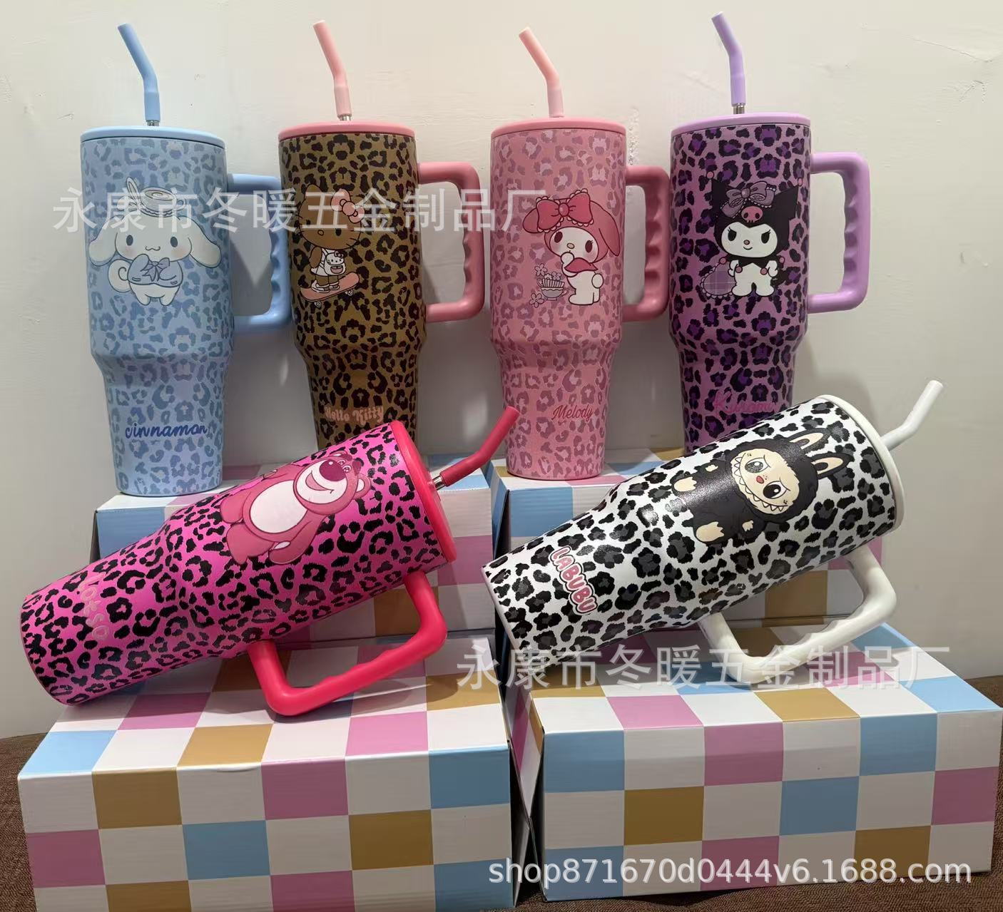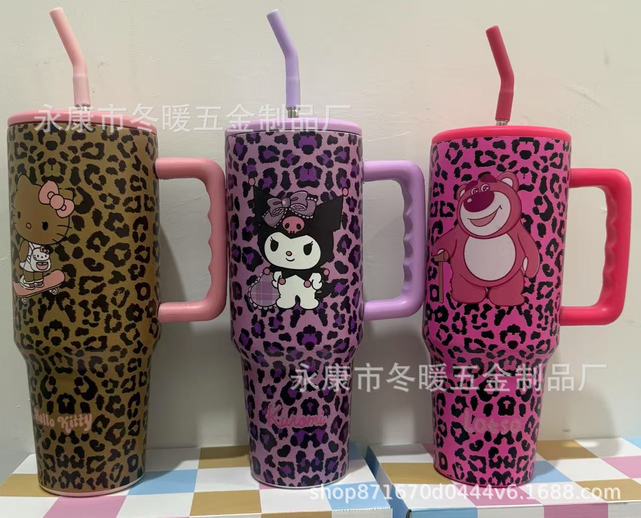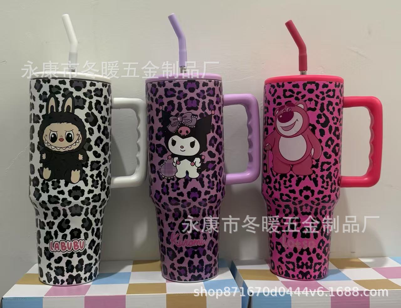 新款大容量40oz 三代时尚百搭豹纹手柄汽车杯车载水杯3D打印不锈
