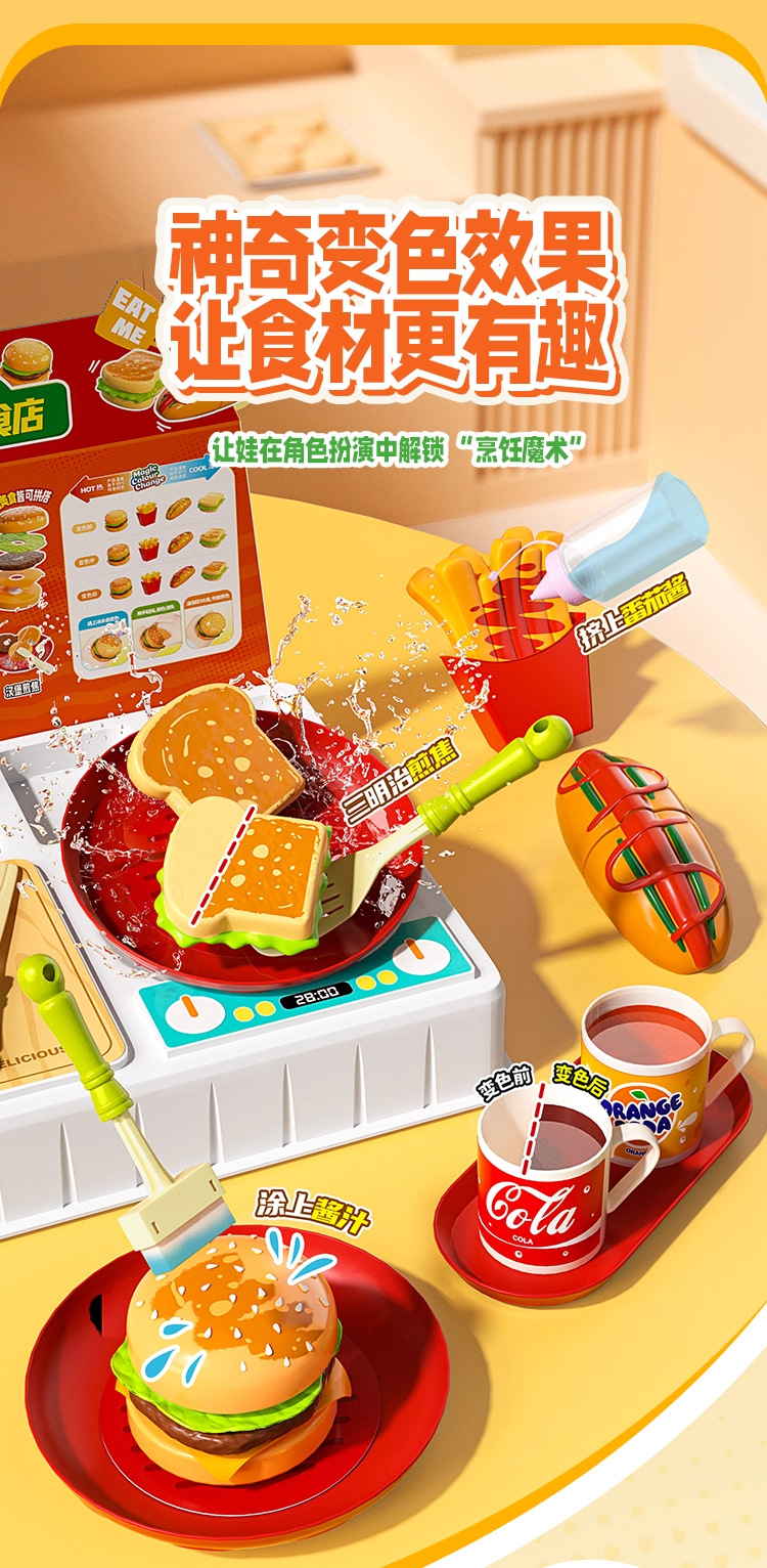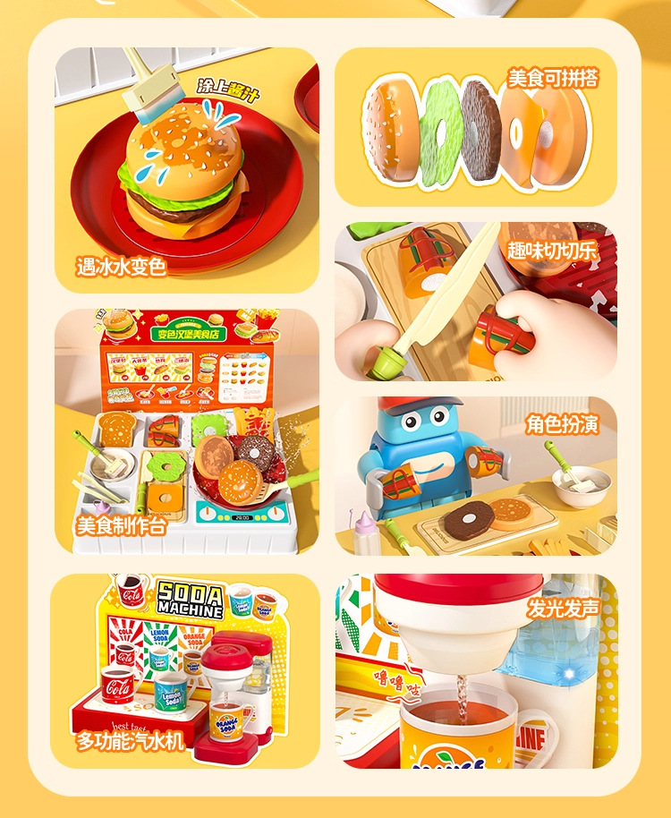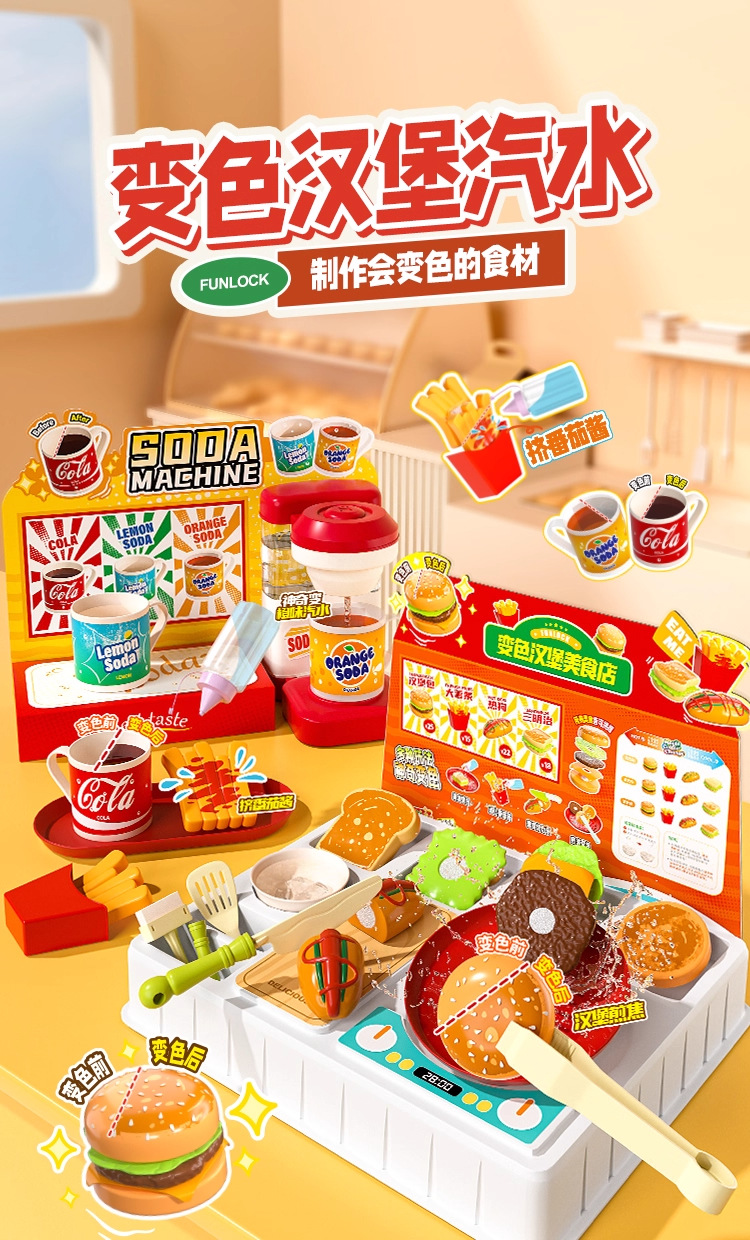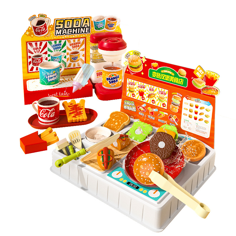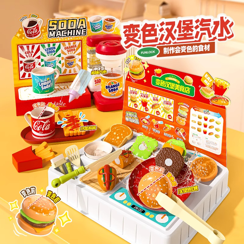 欢乐客遇水变色多功能汽水机汉堡美食店男女孩儿童创意玩具礼物3+