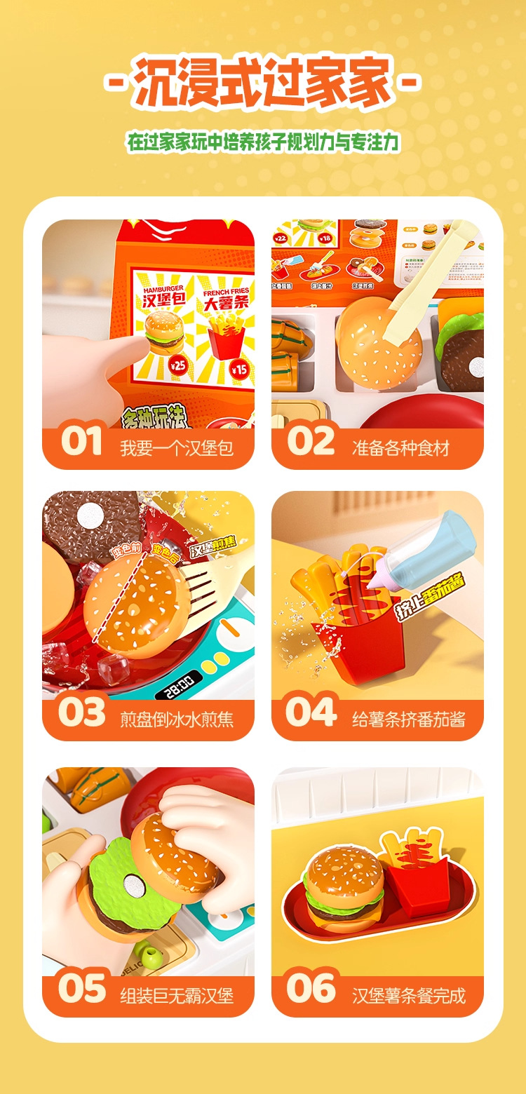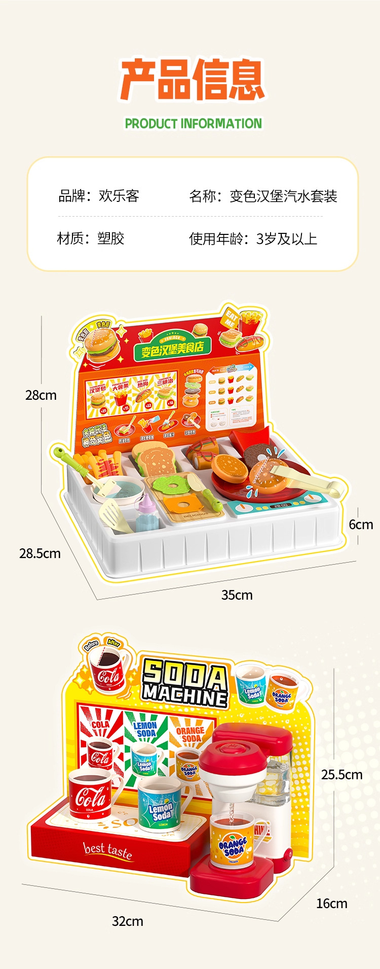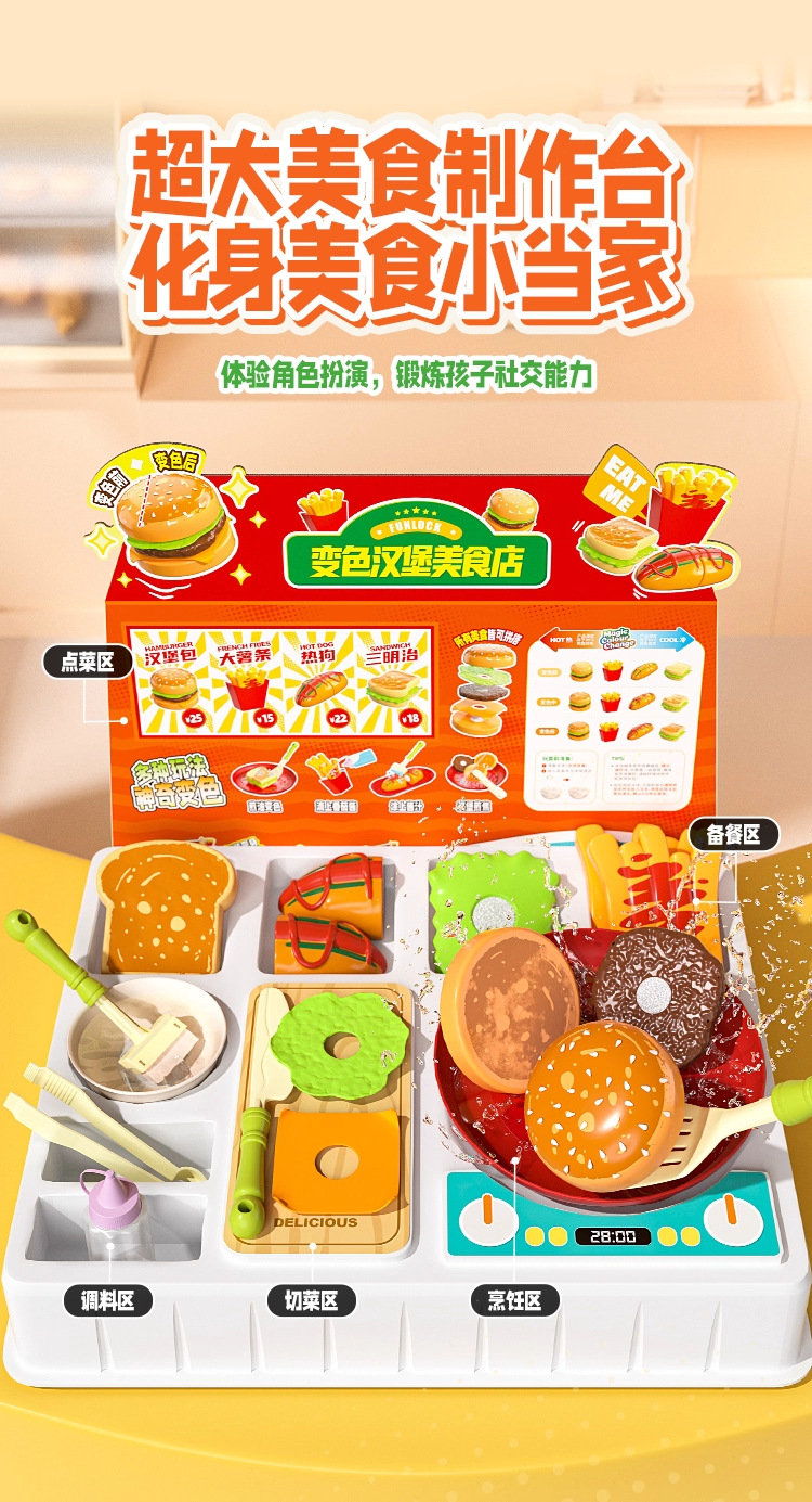 欢乐客遇水变色多功能汽水机汉堡美食店男女孩儿童创意玩具礼物3+