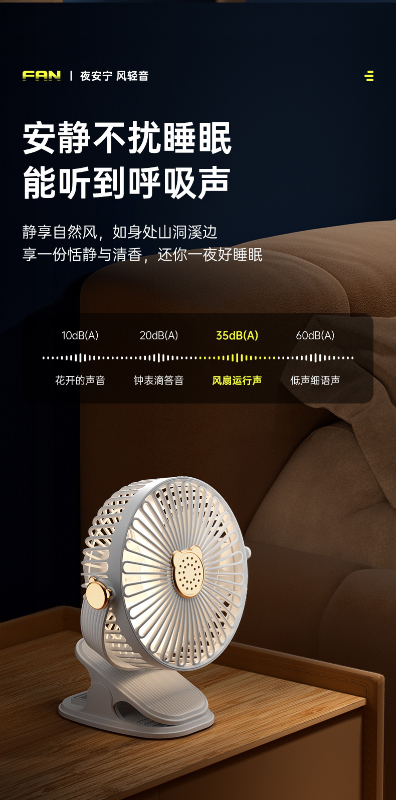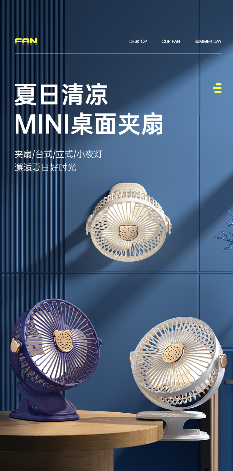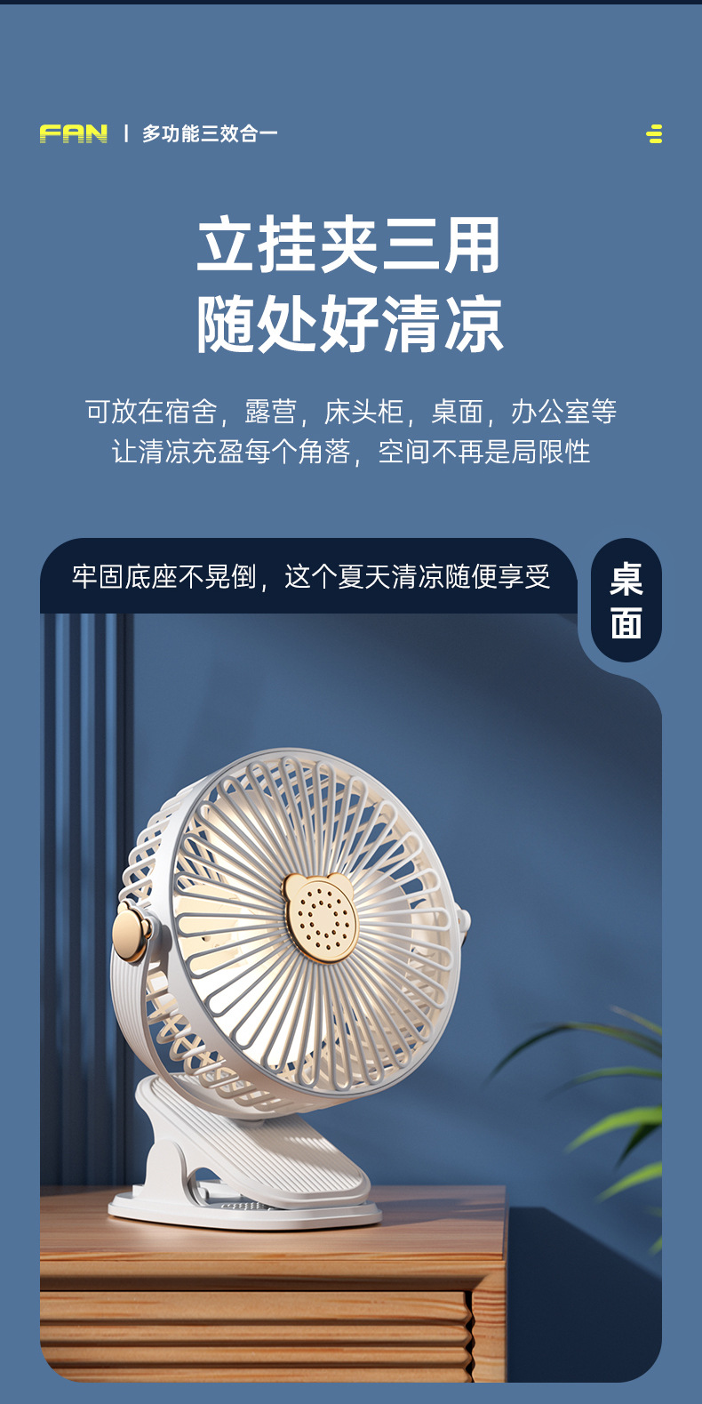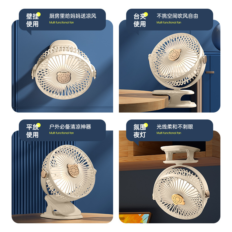 桌面夜灯风扇夹子风扇香薰多档调节 USB充电夏日清凉风扇跨境代发