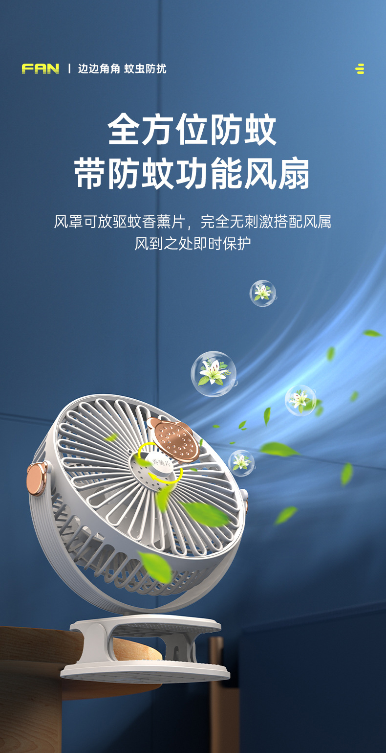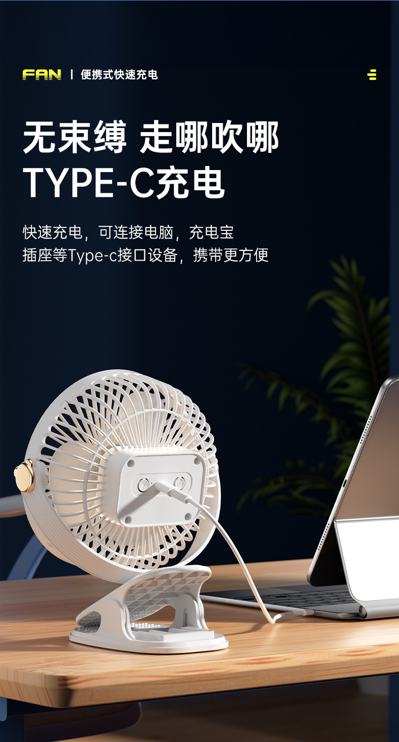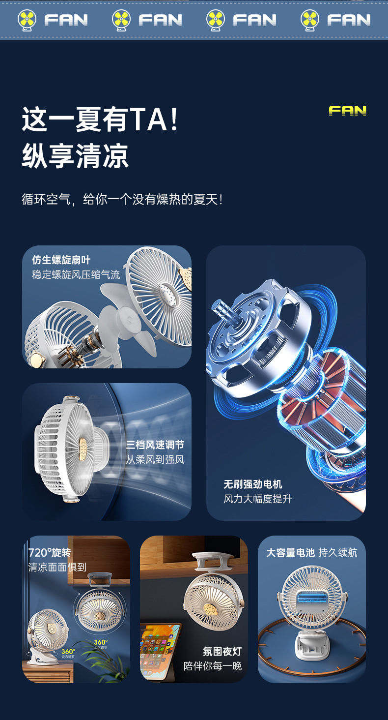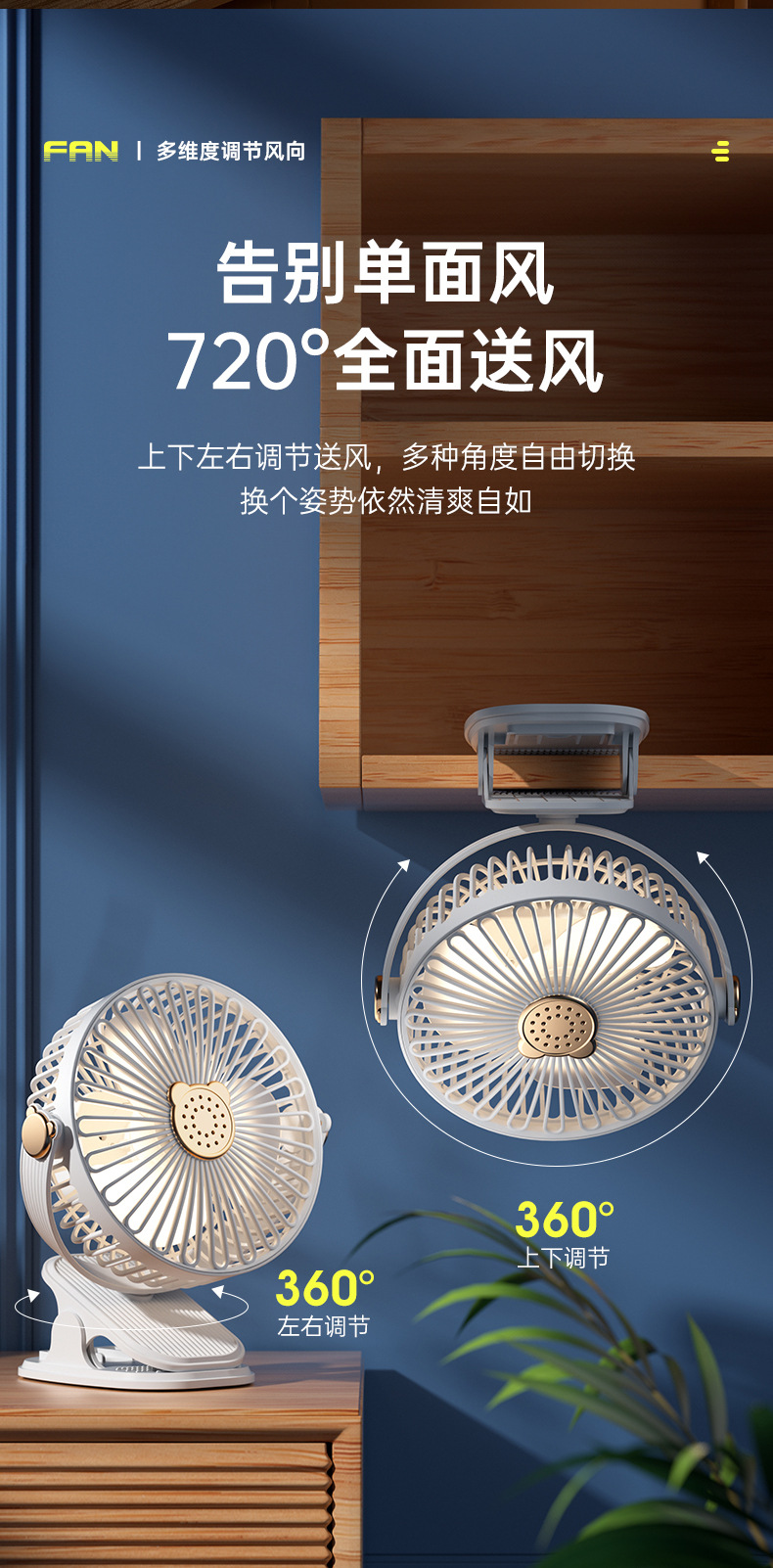 桌面夜灯风扇夹子风扇香薰多档调节 USB充电夏日清凉风扇跨境代发