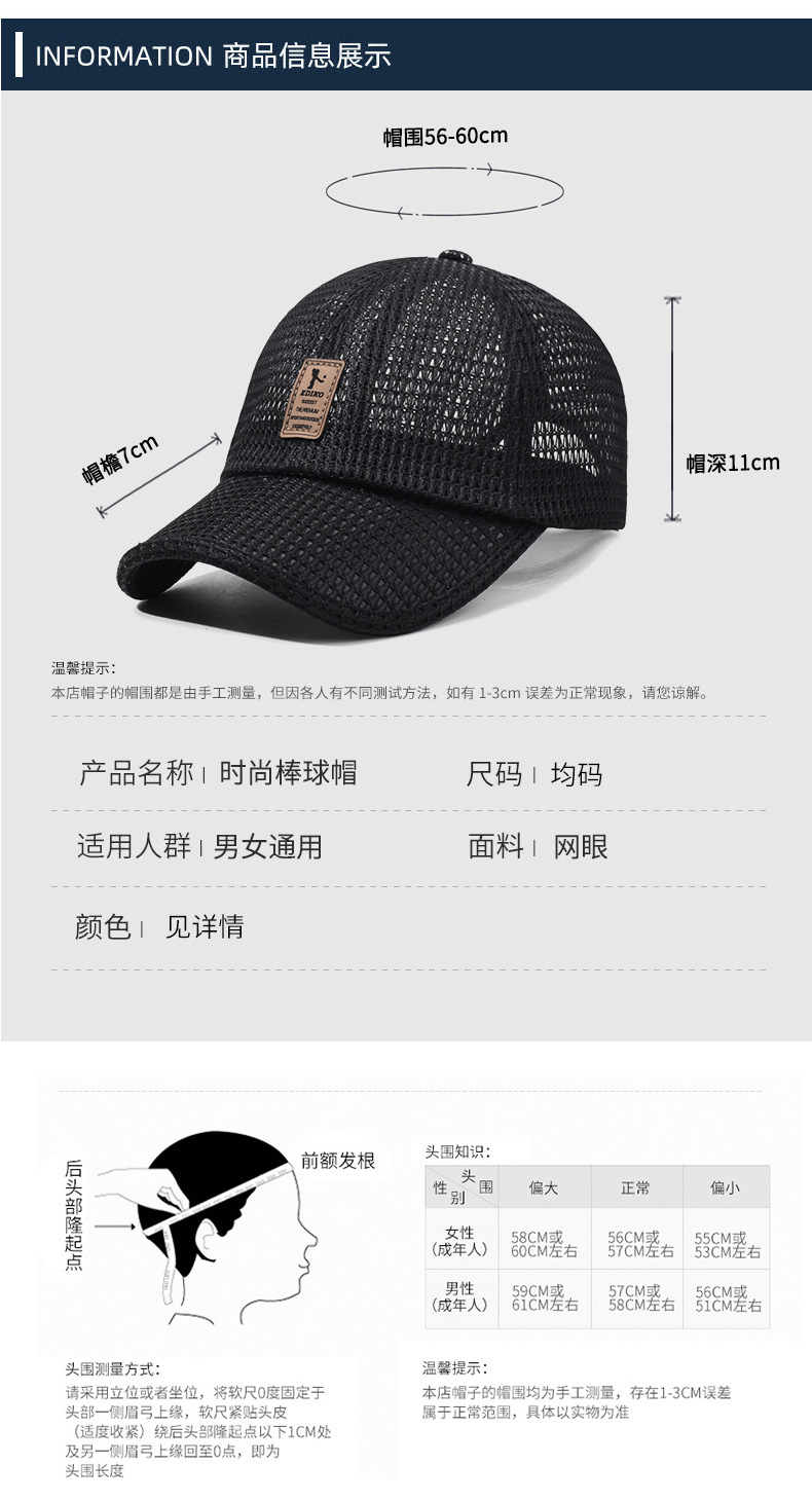 男女帽夏季新款韩版防晒棒球帽运动透气网眼遮阳太阳帽鸭舌帽夏天