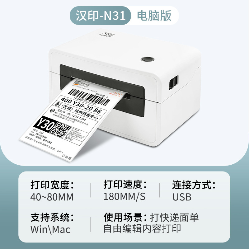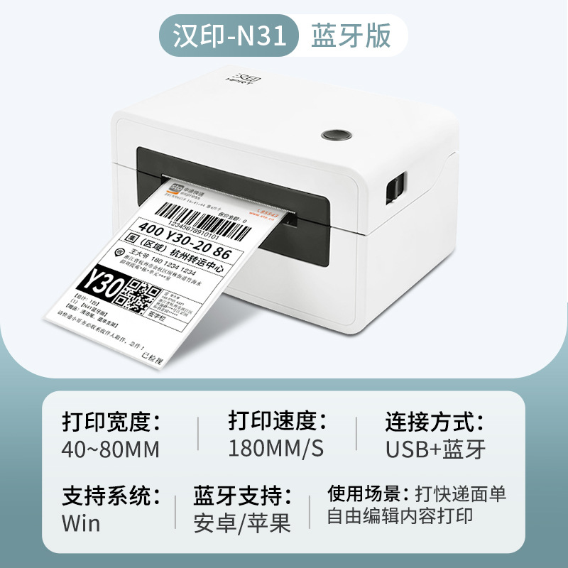 汉印N41热敏打印机跨境电商面单不干胶条码标签蓝牙N31