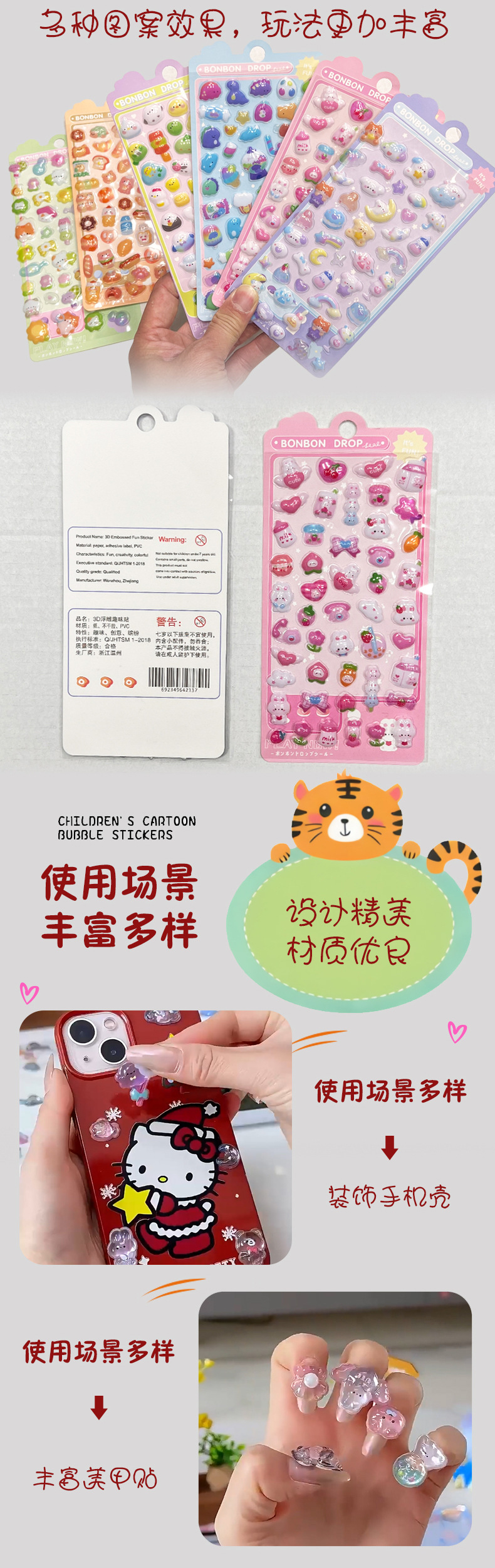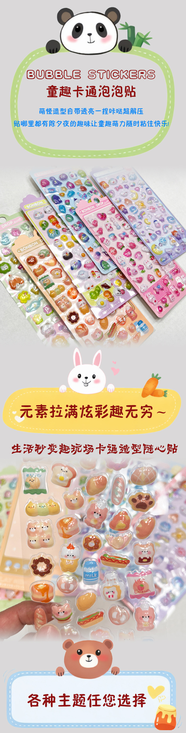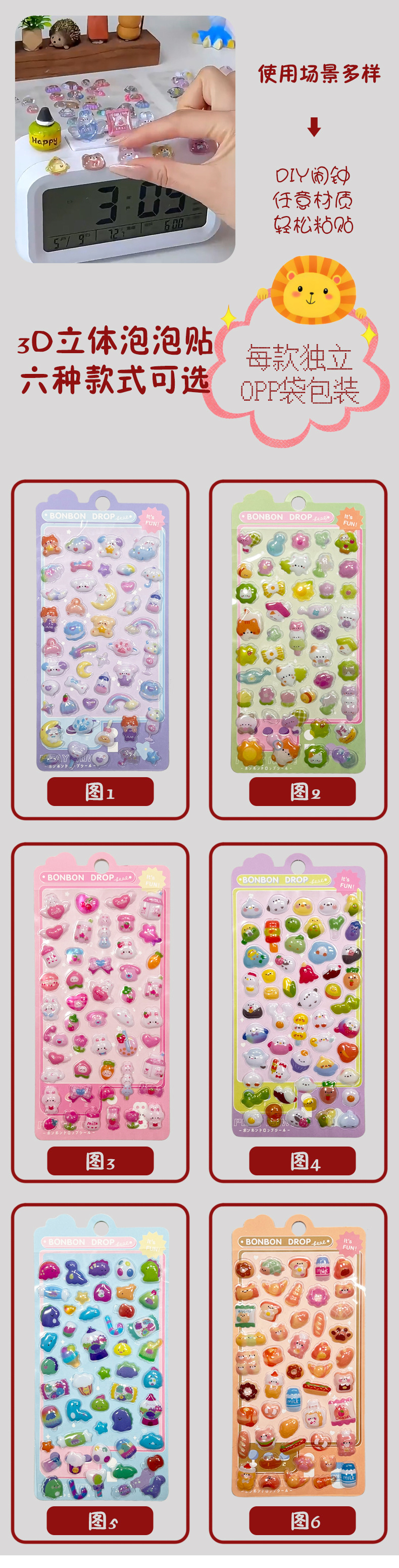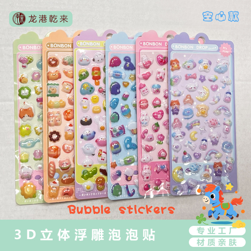 日系跨境3D立体浮雕贴纸儿童趣味空心泡泡贴水晶可爱卡通装饰贴画