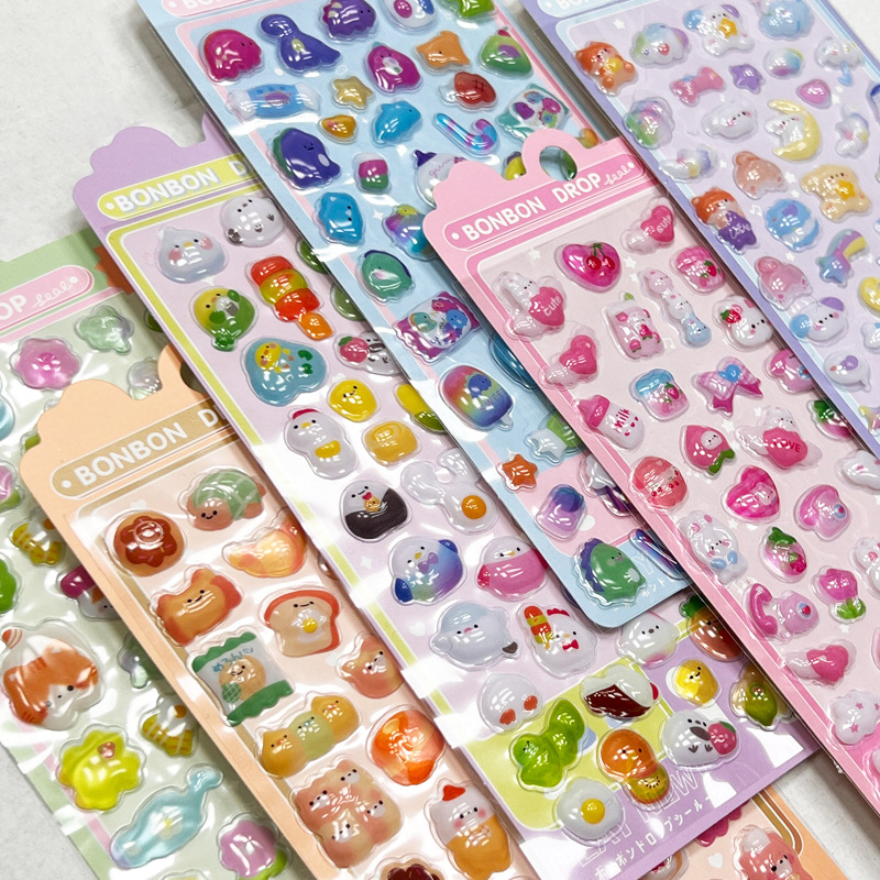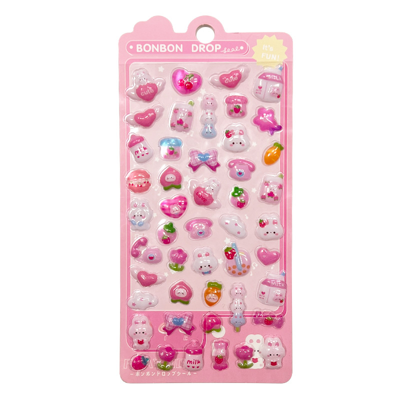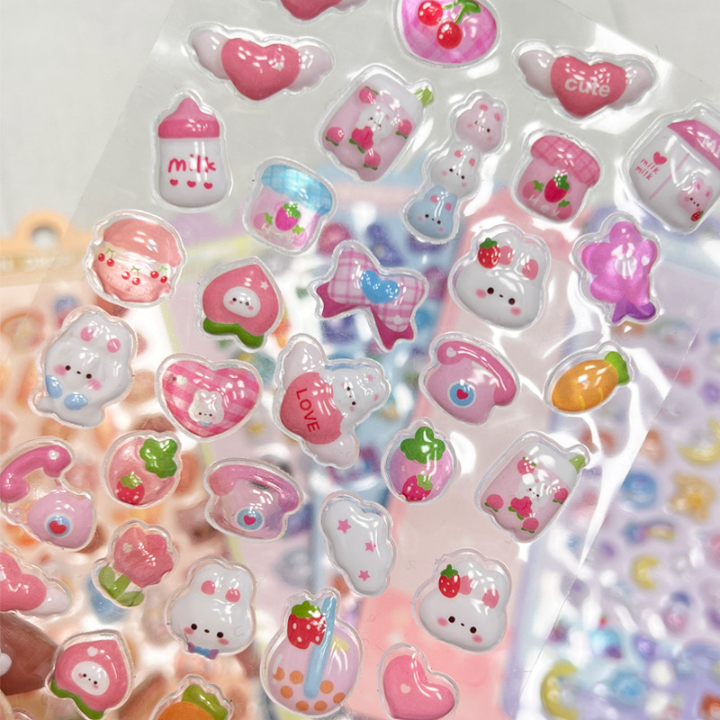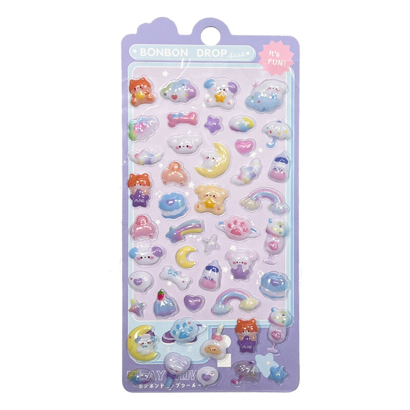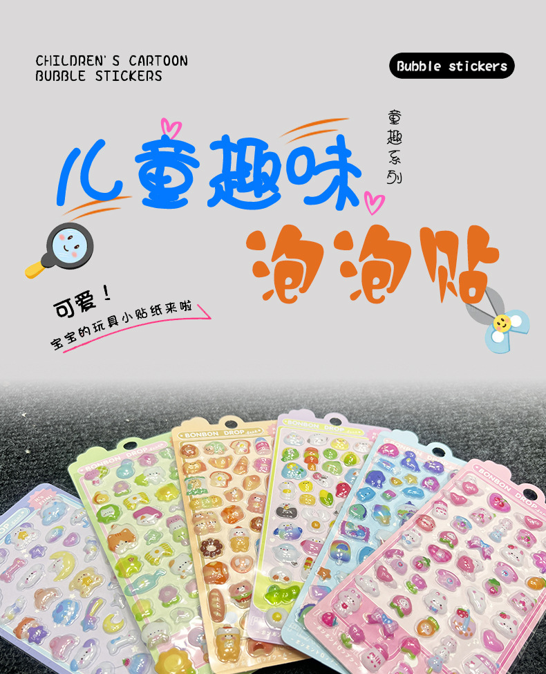 日系跨境3D立体浮雕贴纸儿童趣味空心泡泡贴水晶可爱卡通装饰贴画