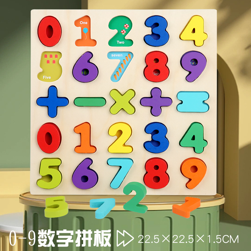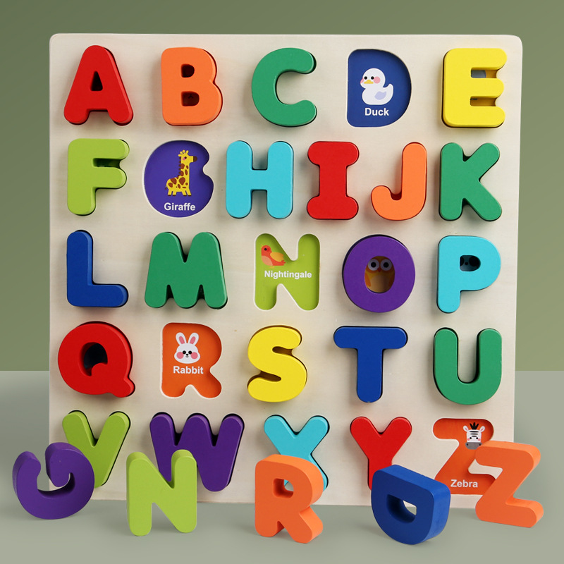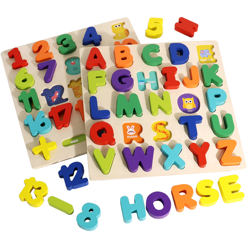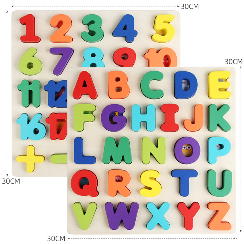红色和蓝色26个大小写英文字母数字形状配对拼图拼板木制教育玩具