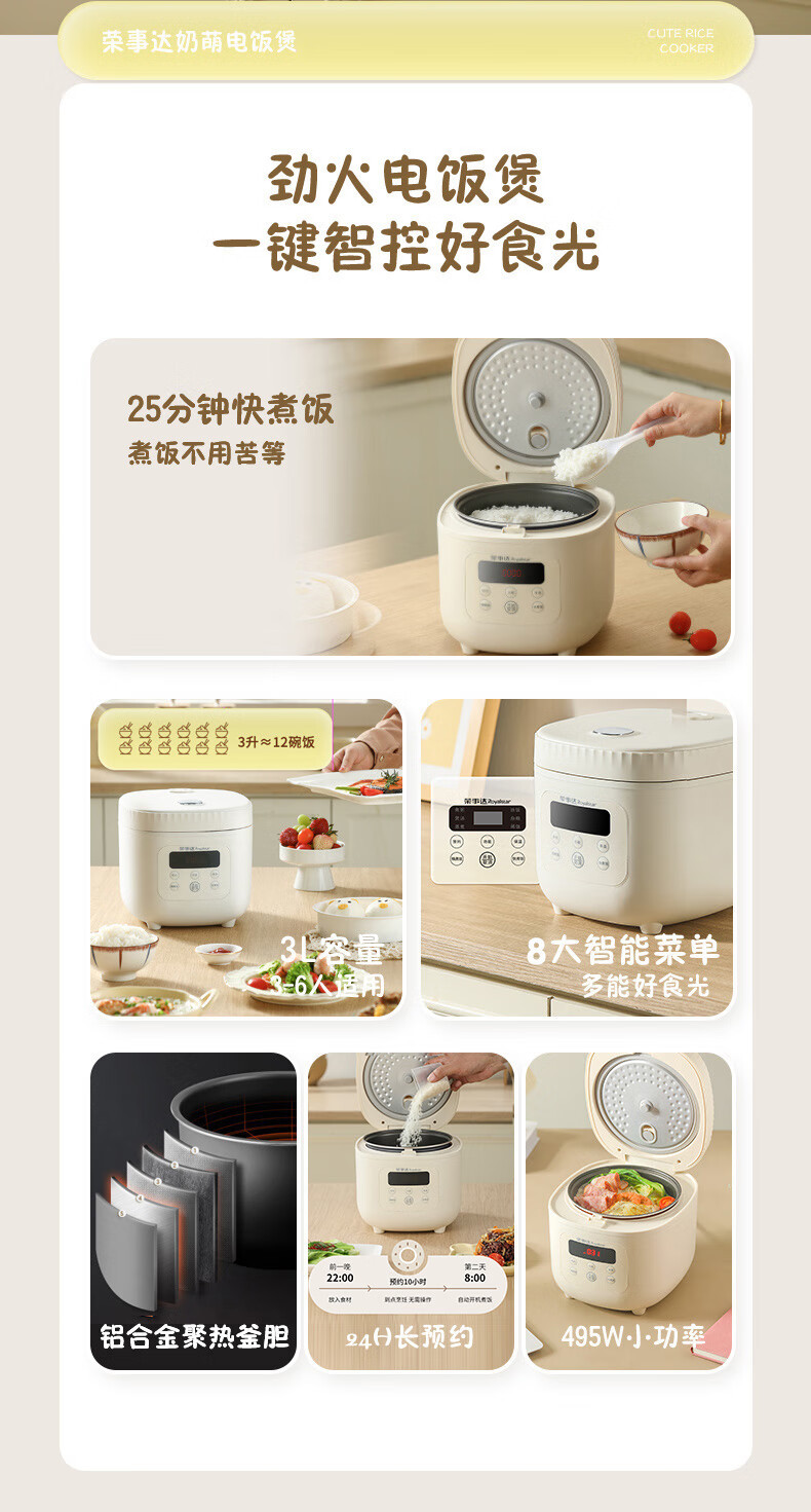 荣事达迷你电饭煲家用批发2升3升小型迷你多功能智能上班族