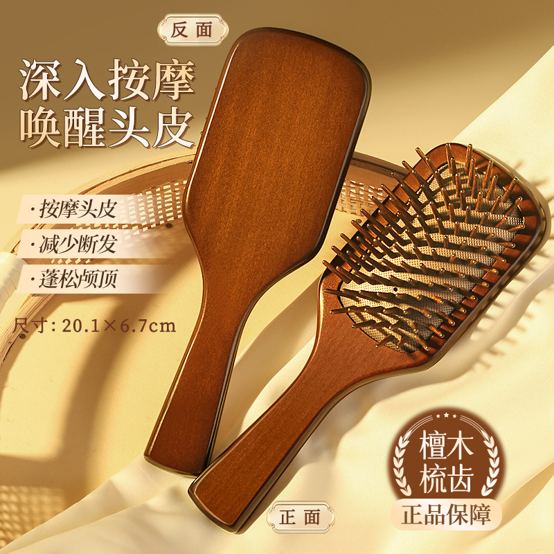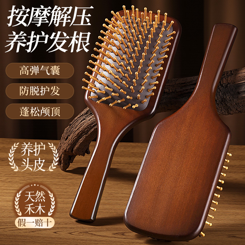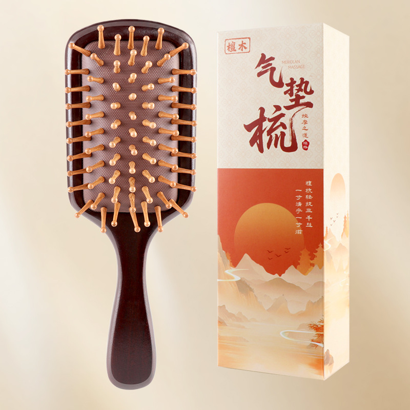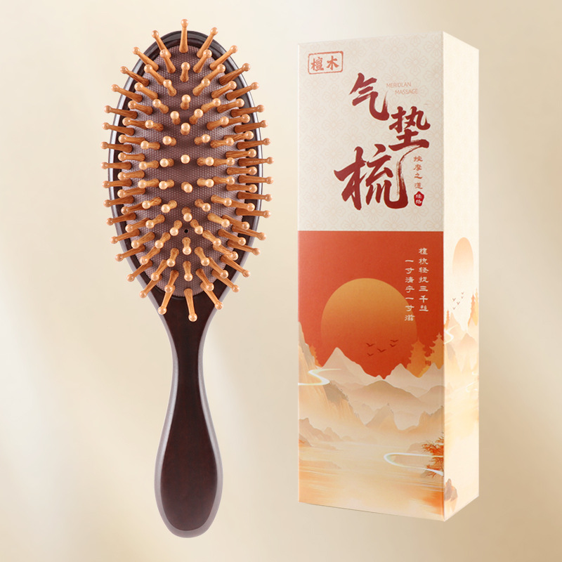 檀木气垫梳子蓬松头部按摩梳经络气囊梳气垫木梳子小巧便携防静电
