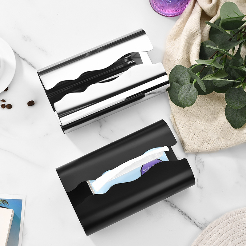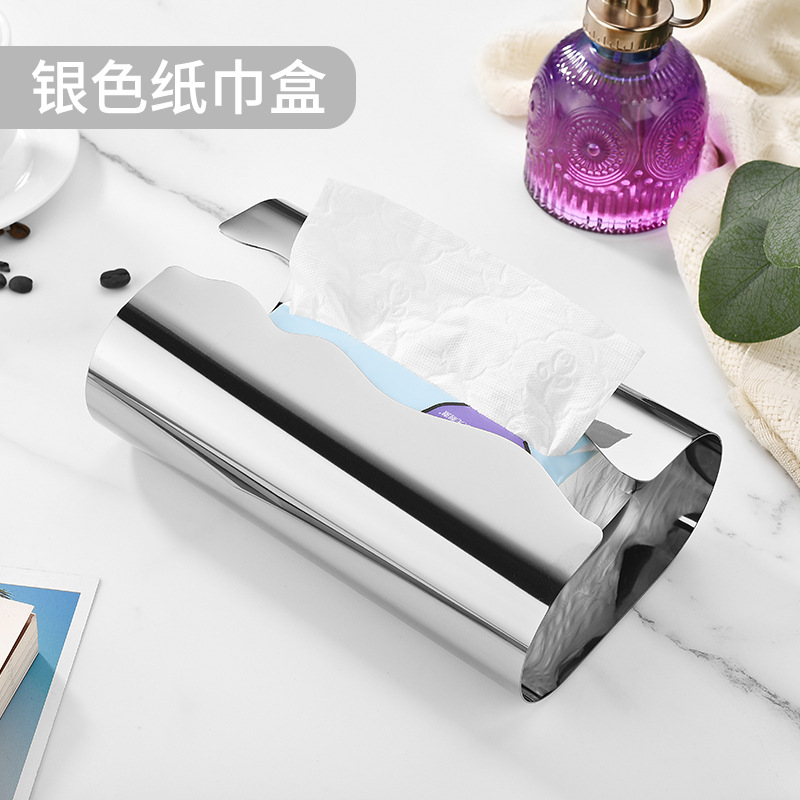 轻奢风不锈钢曲形纸巾盒家居客厅创意桌面免打孔纸巾收纳盒批发