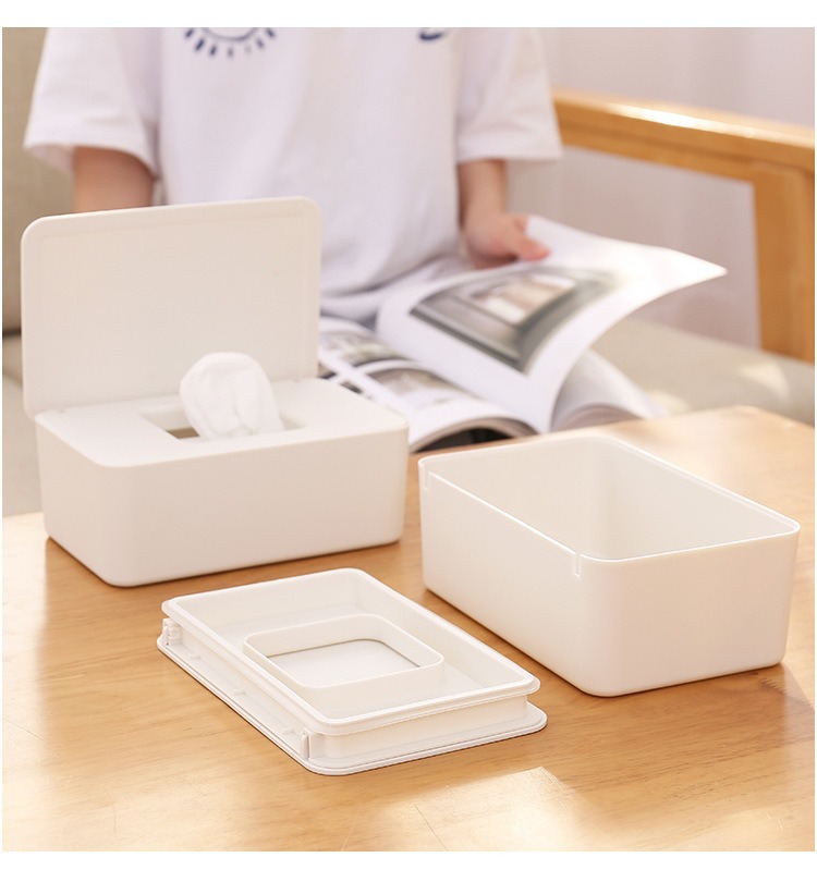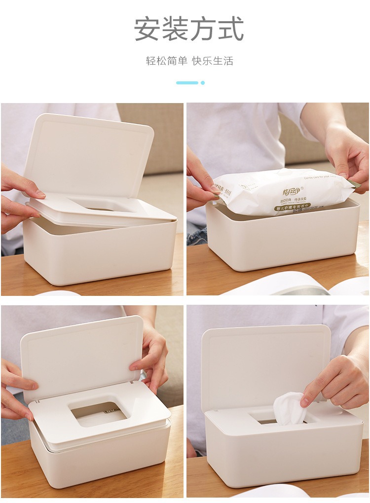 卡扣防尘密封湿巾盒专用盒卫生间多功能家用桌面收纳盒纸巾盒一体