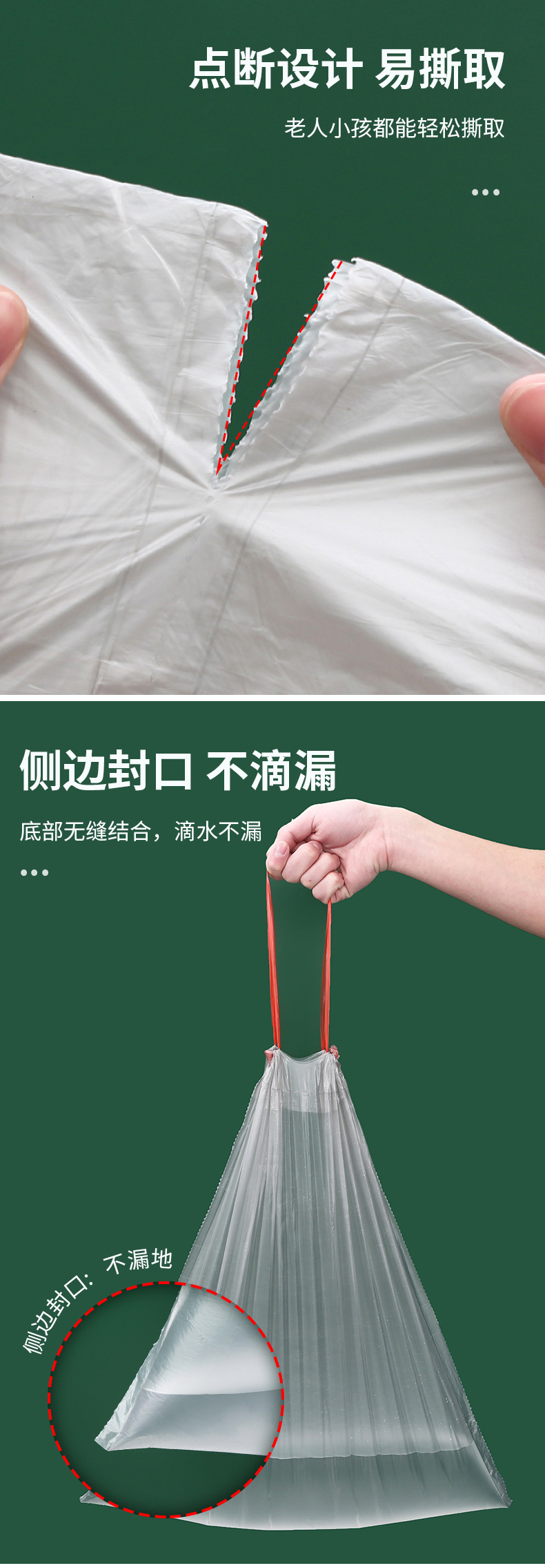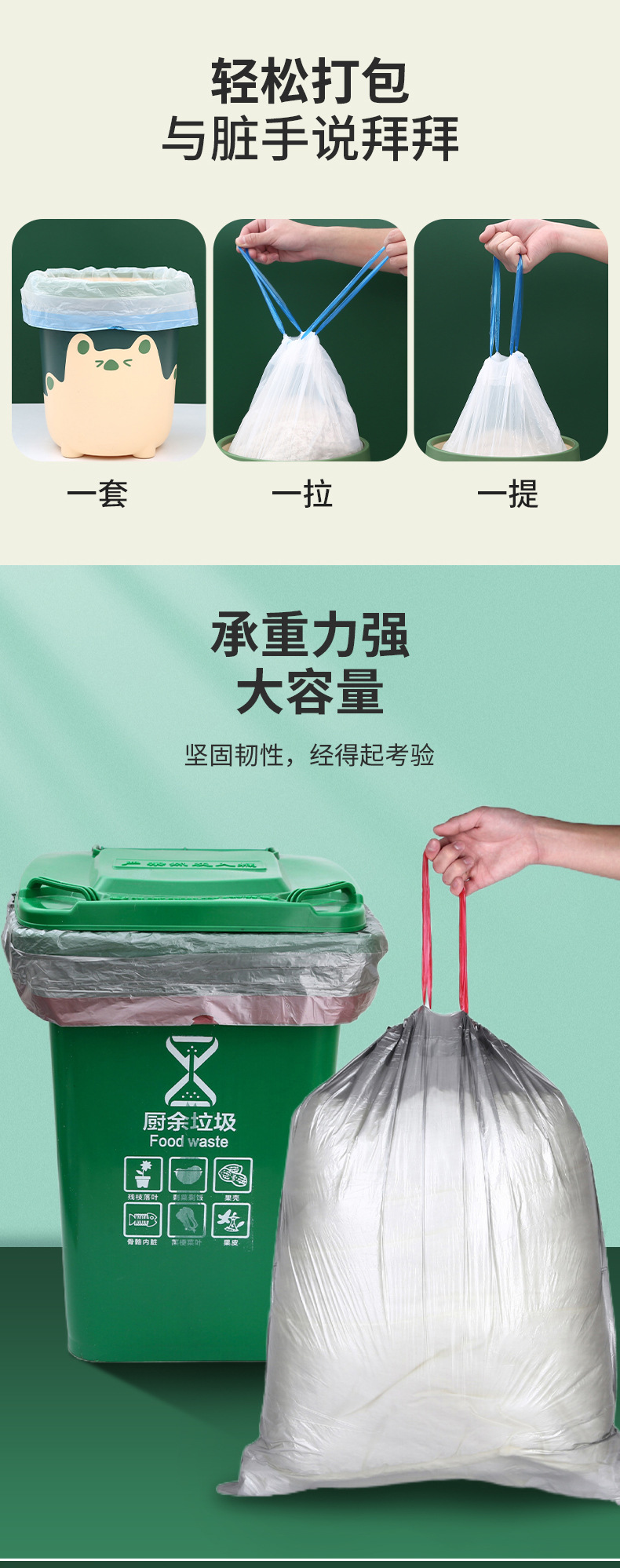 【75只抽绳垃圾袋】收口垃圾袋家用手提式黑色加厚厨房大号塑料袋