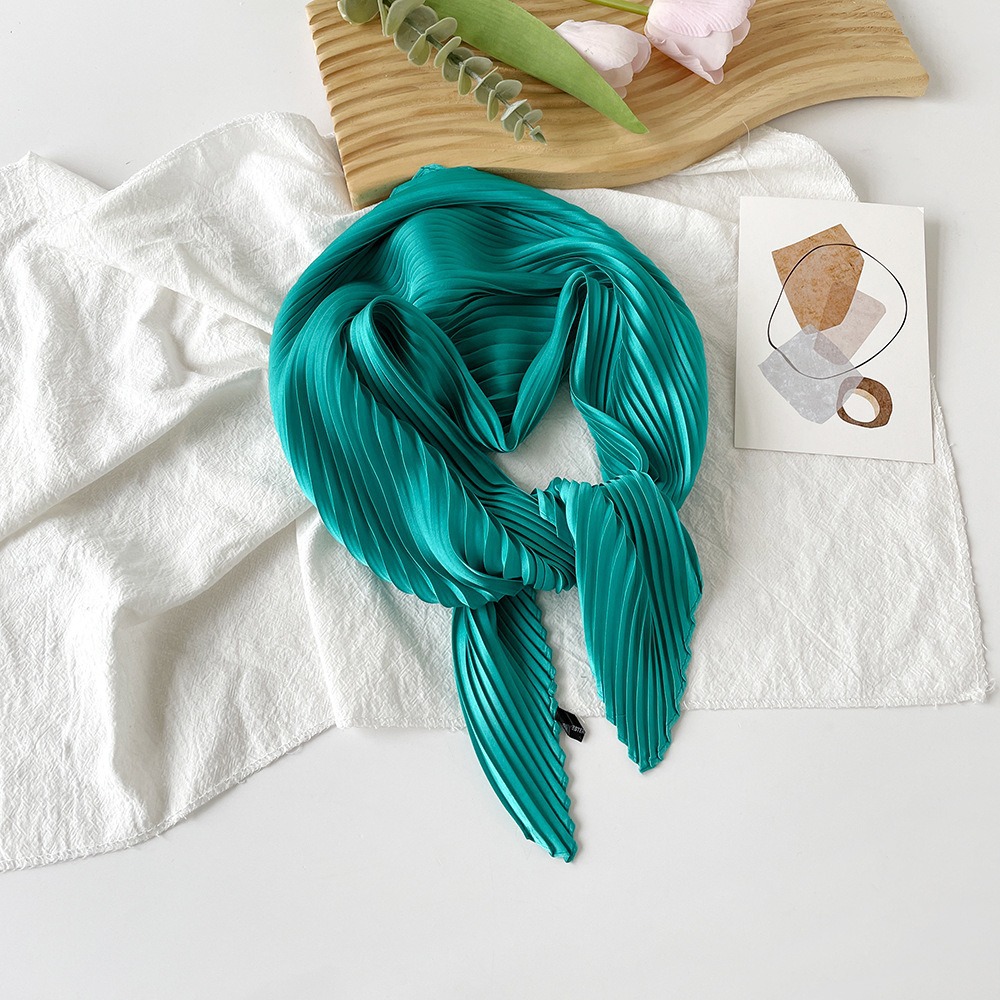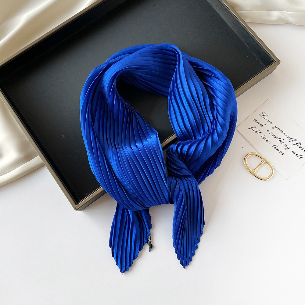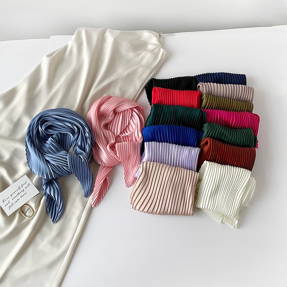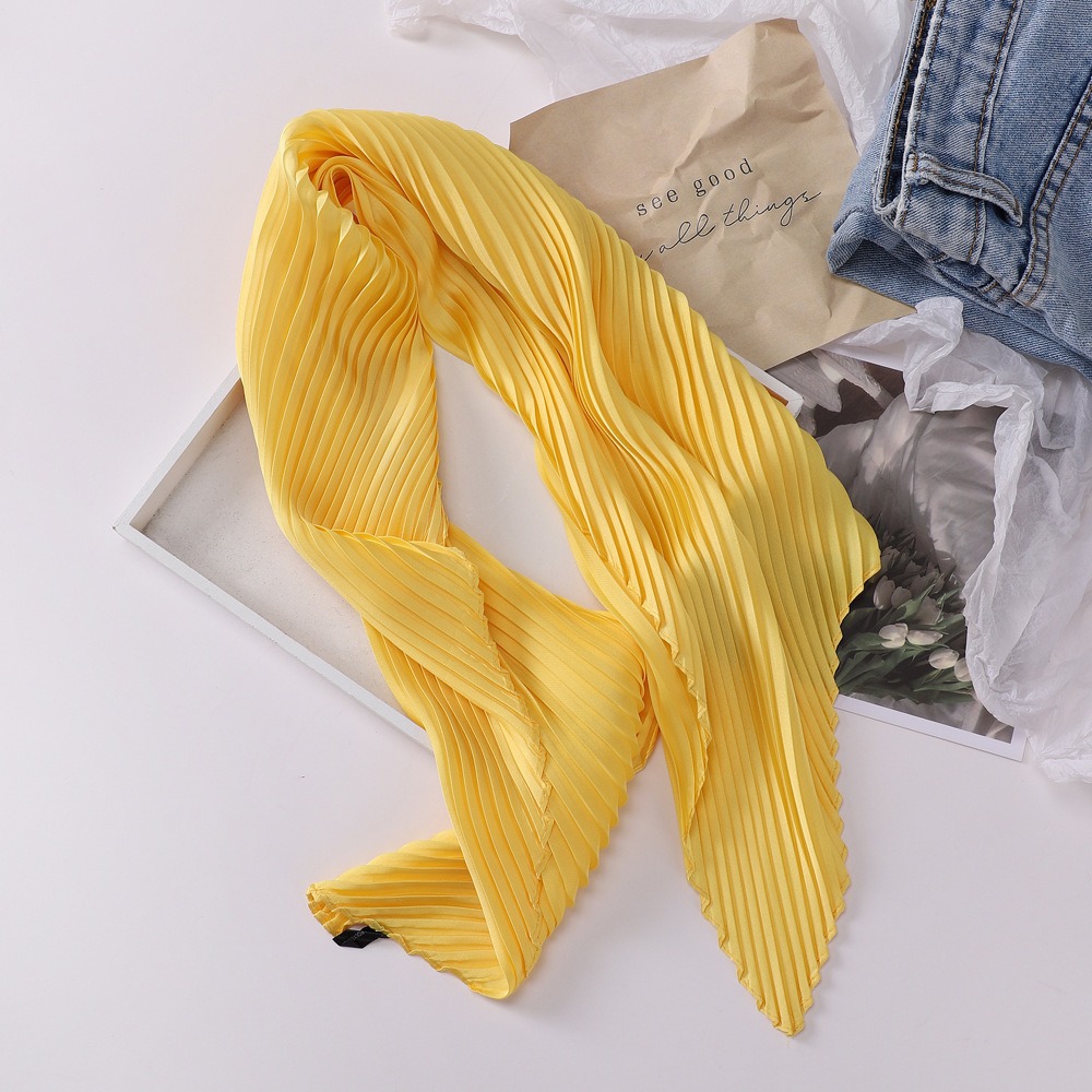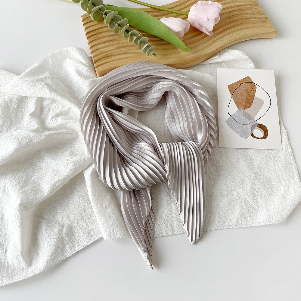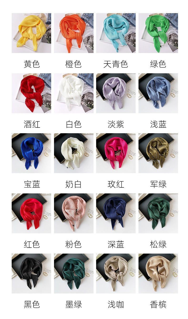 70cm褶皱丝巾纯色小方巾女素色四季轻薄款围巾春秋季职业装饰围脖