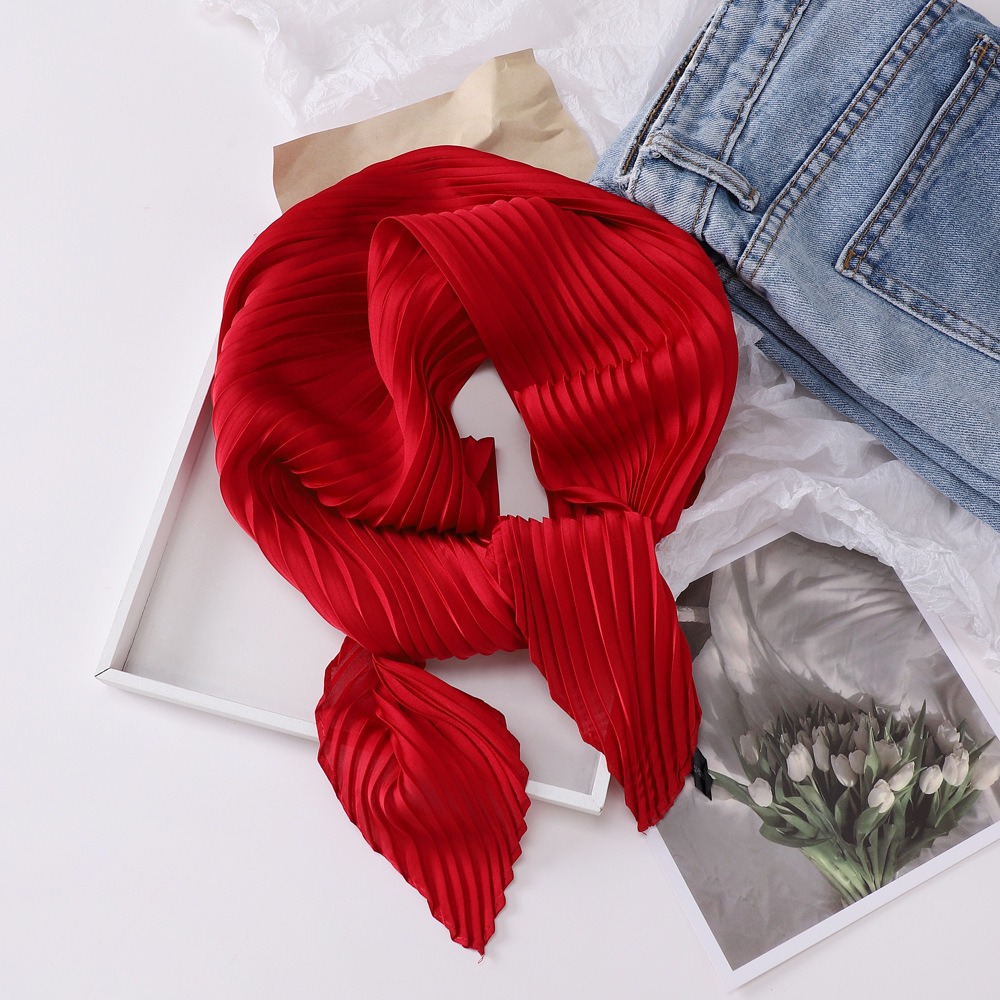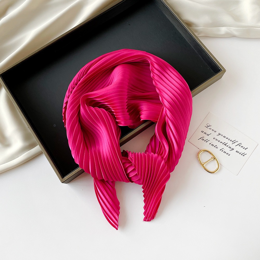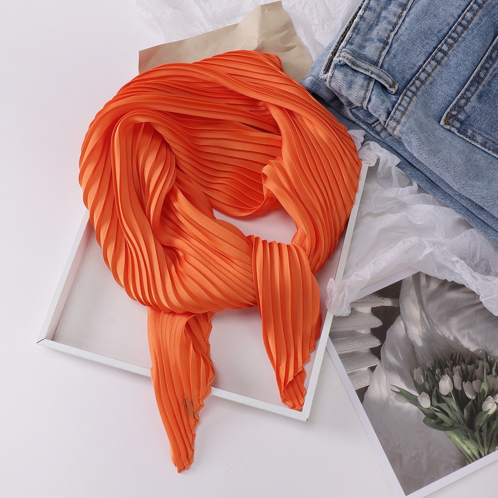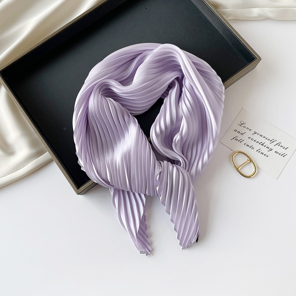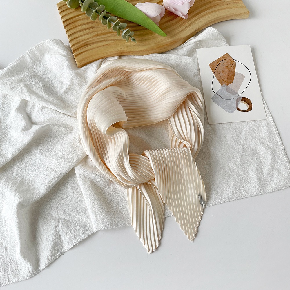 70cm褶皱丝巾纯色小方巾女素色四季轻薄款围巾春秋季职业装饰围脖
