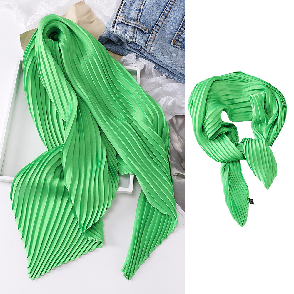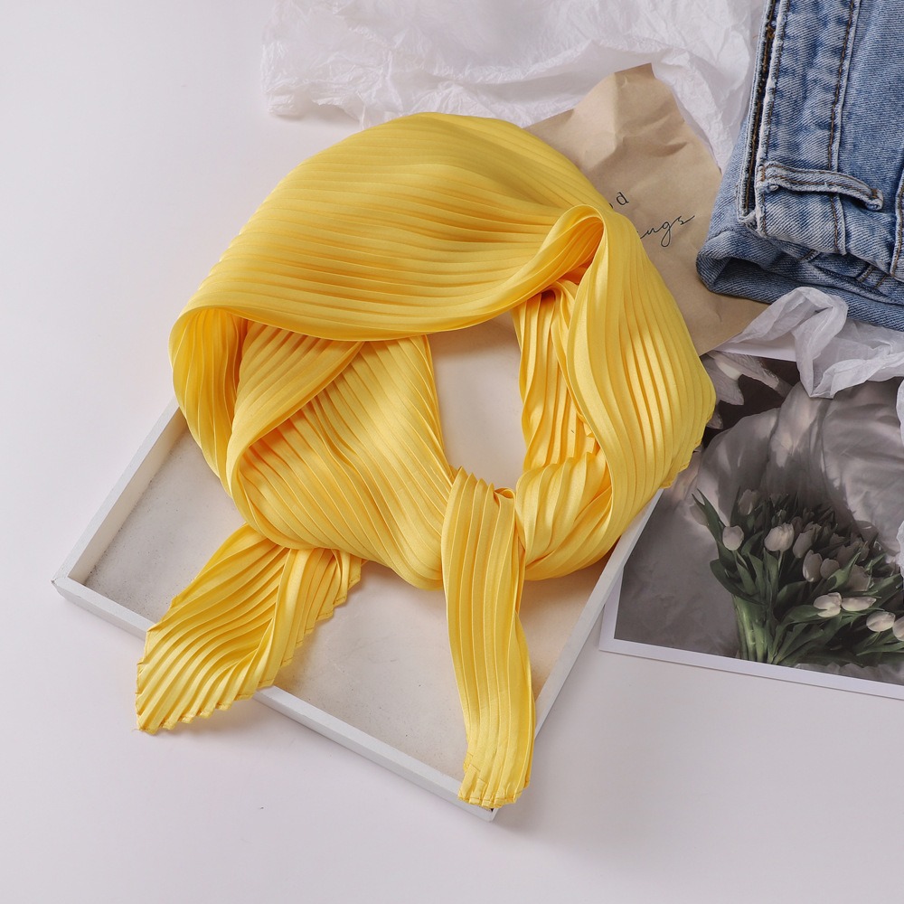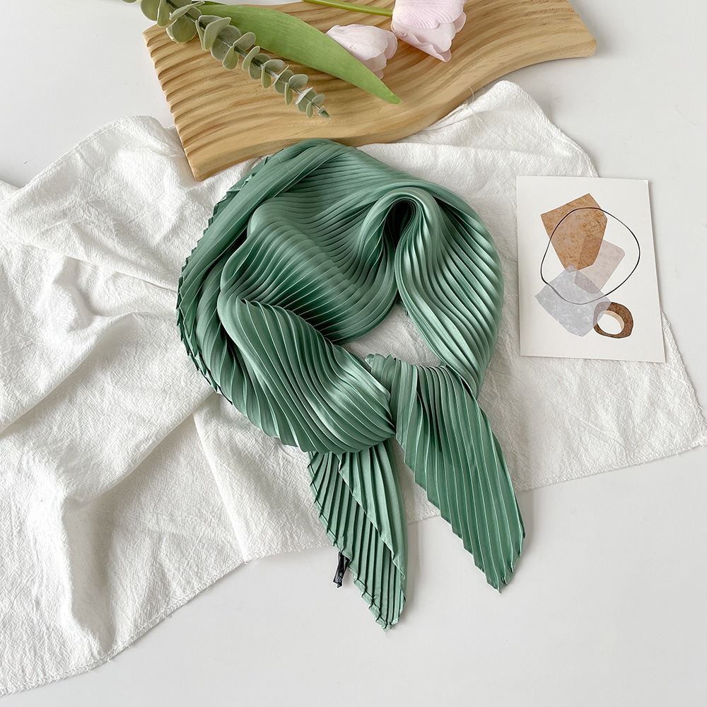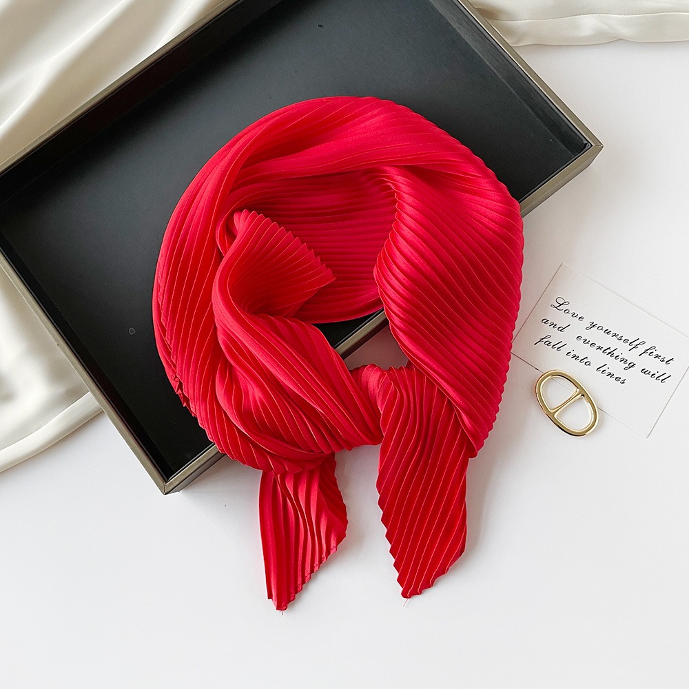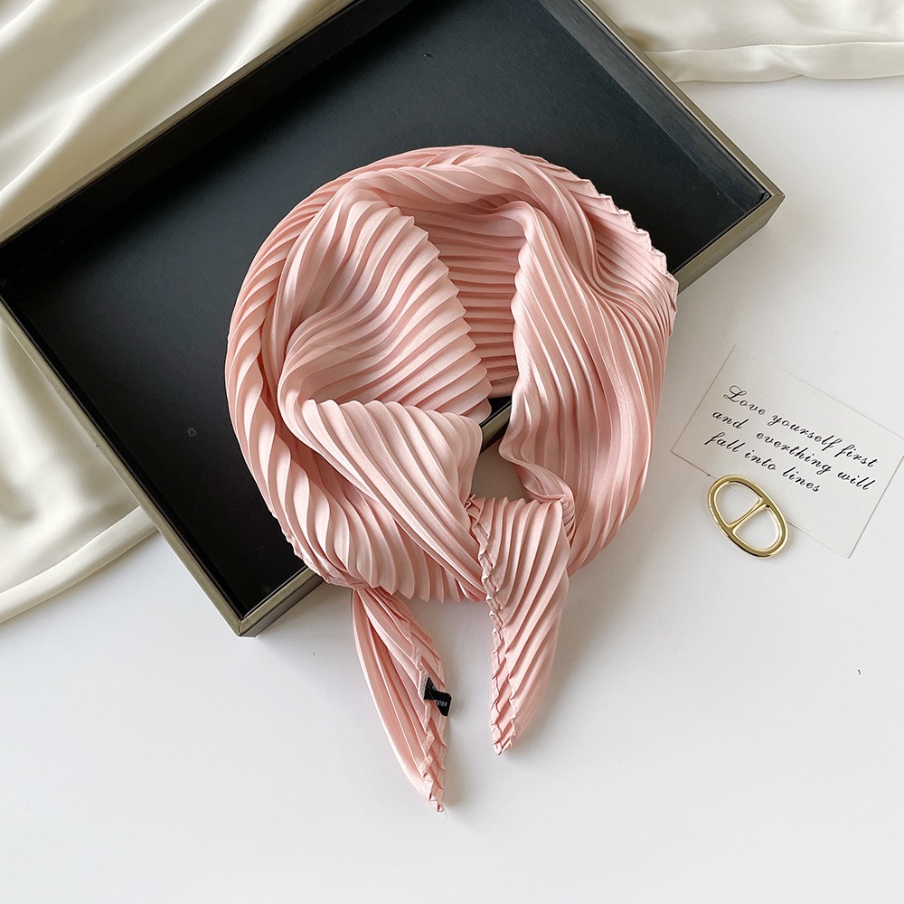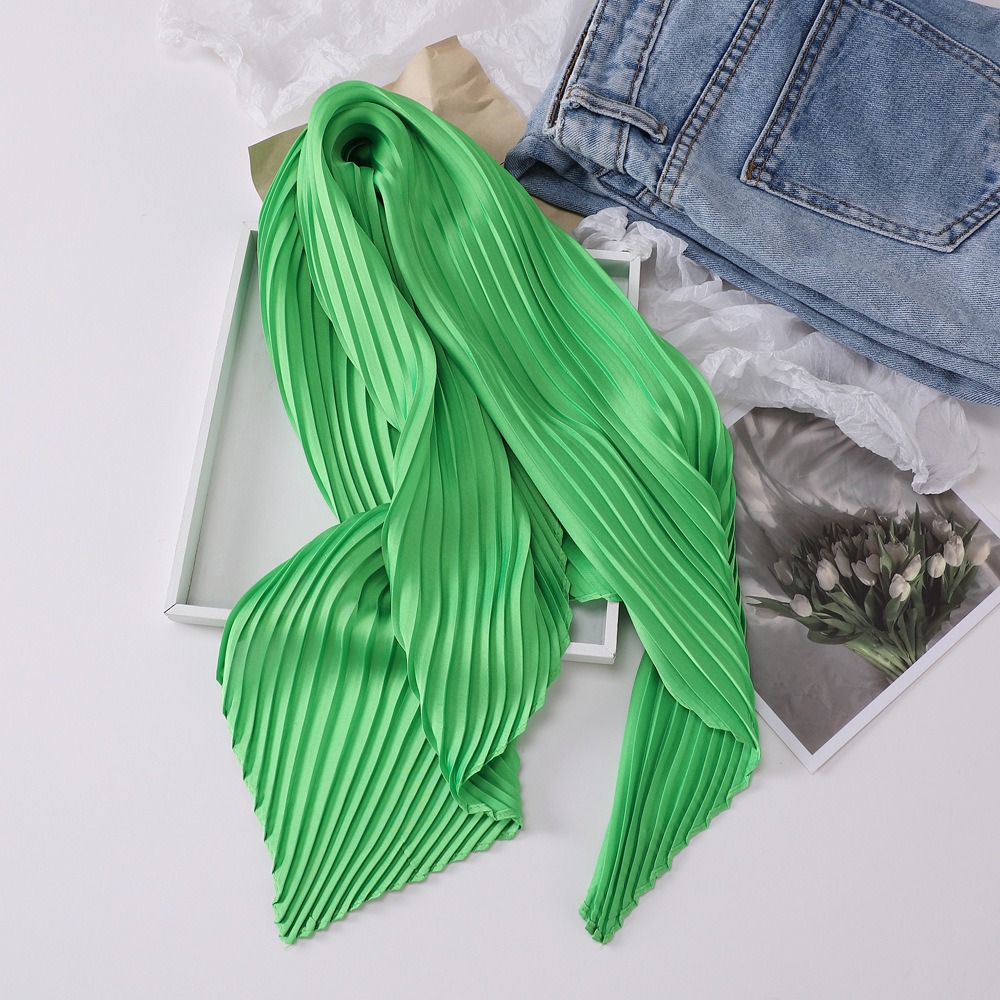 70cm褶皱丝巾纯色小方巾女素色四季轻薄款围巾春秋季职业装饰围脖