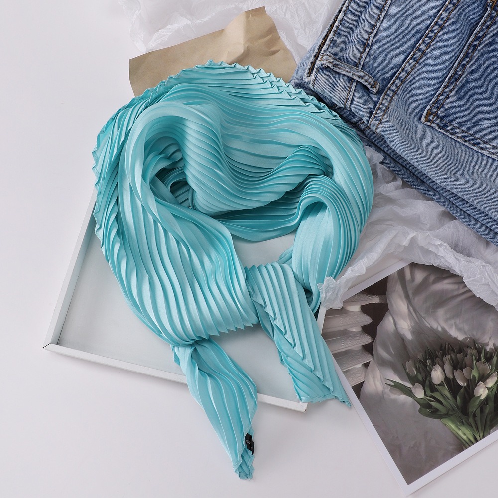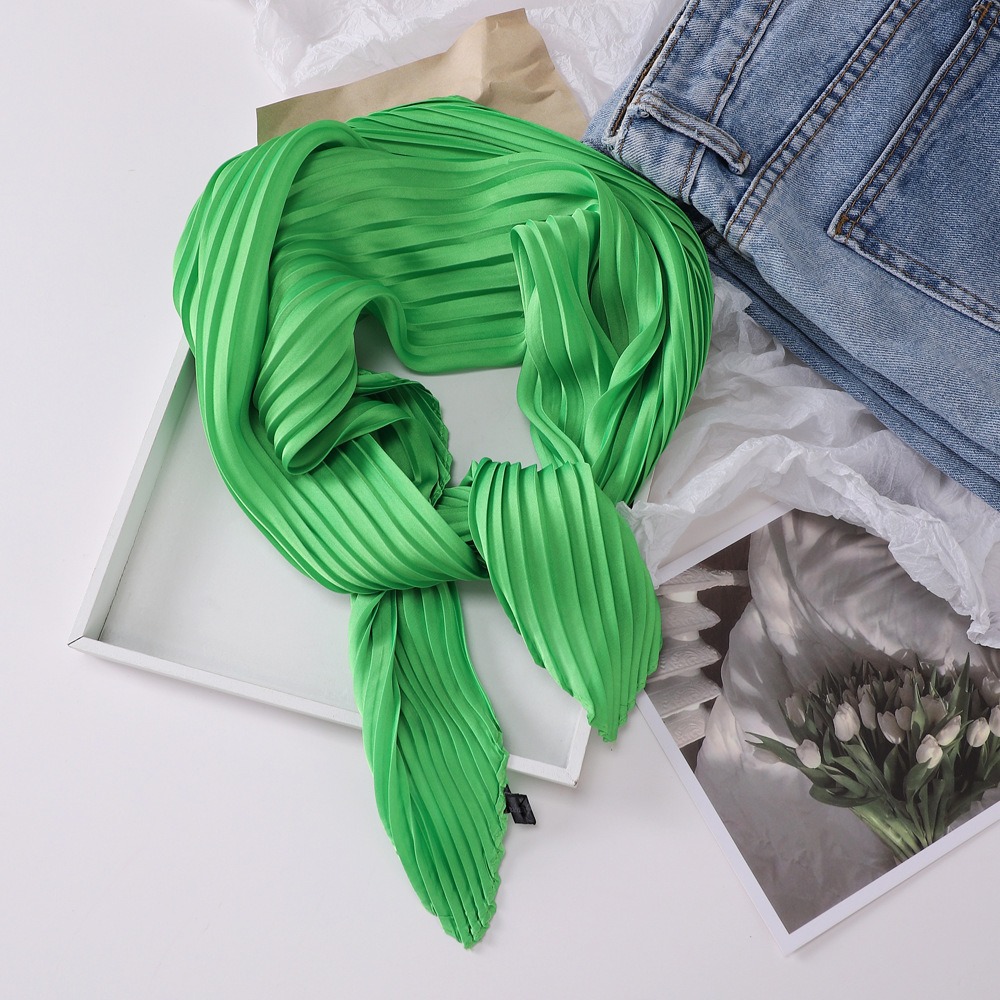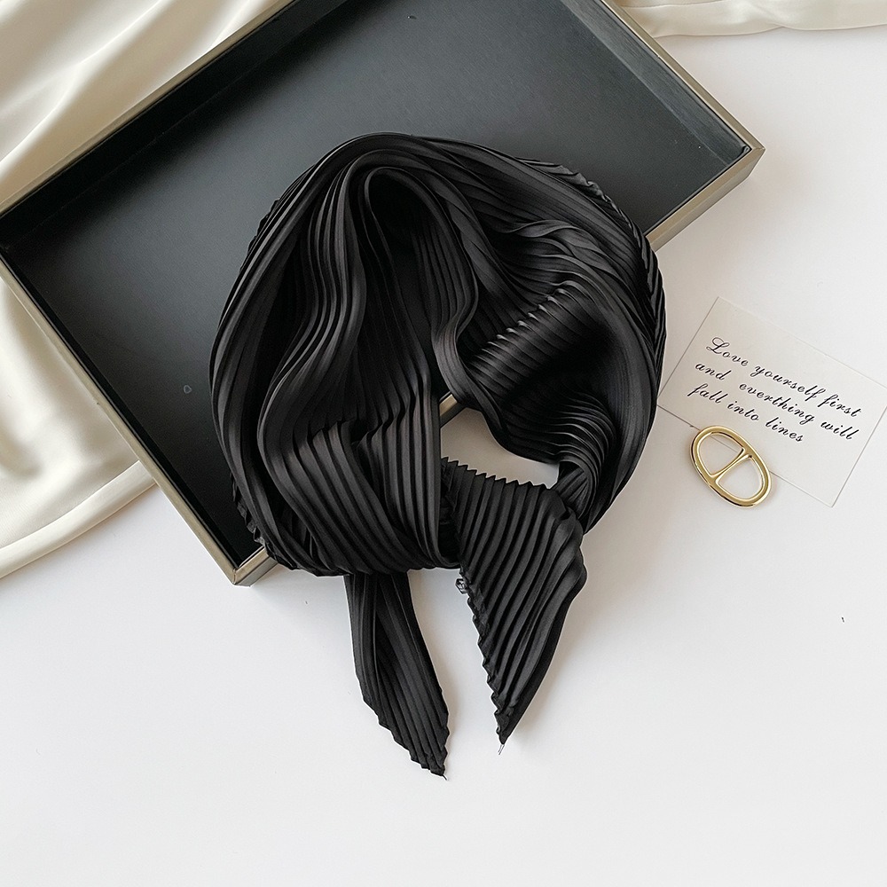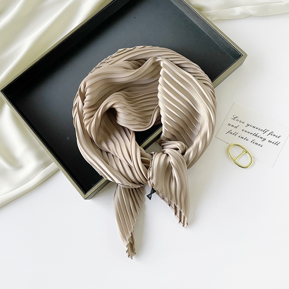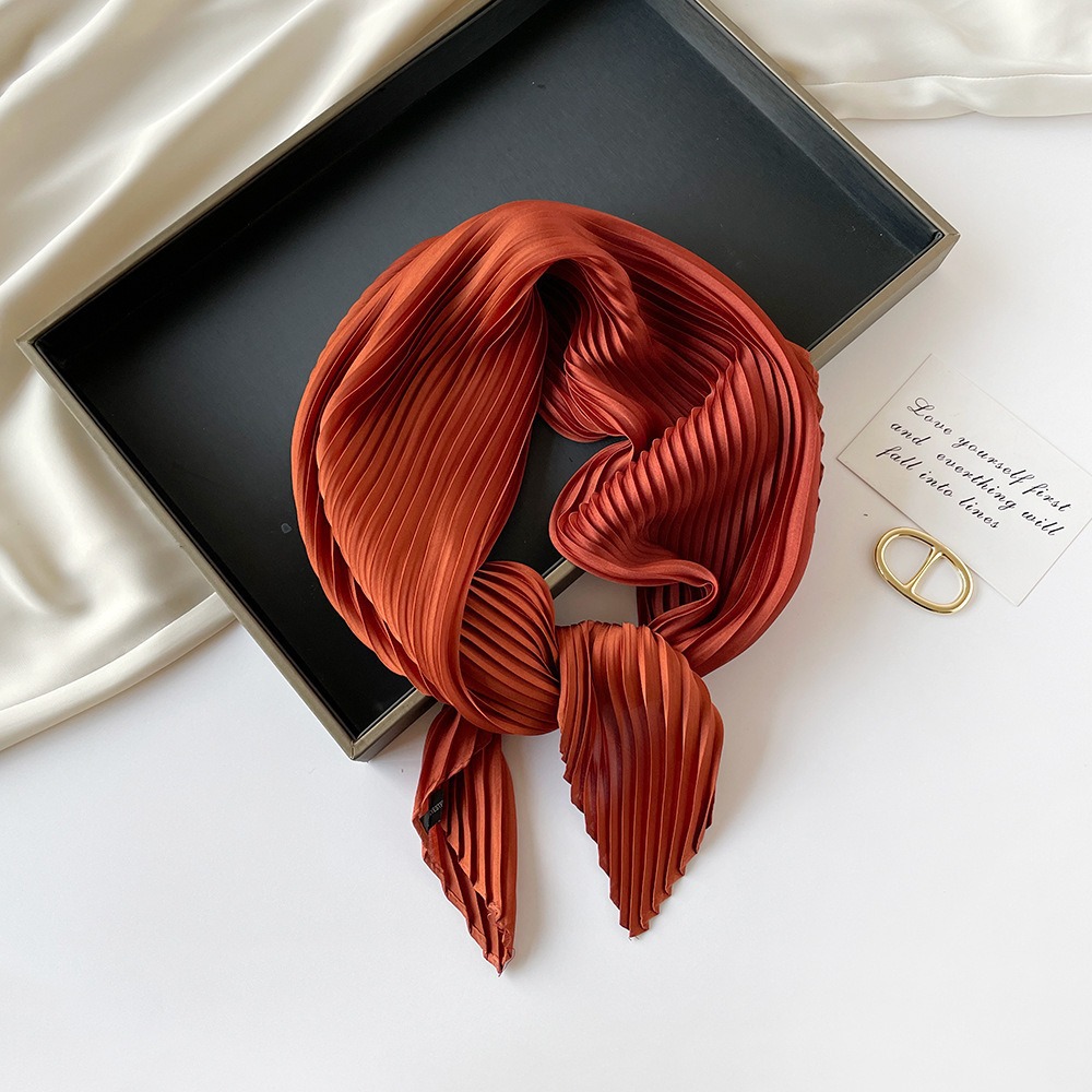 70cm褶皱丝巾纯色小方巾女素色四季轻薄款围巾春秋季职业装饰围脖