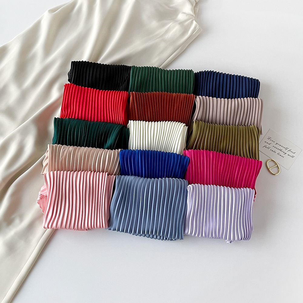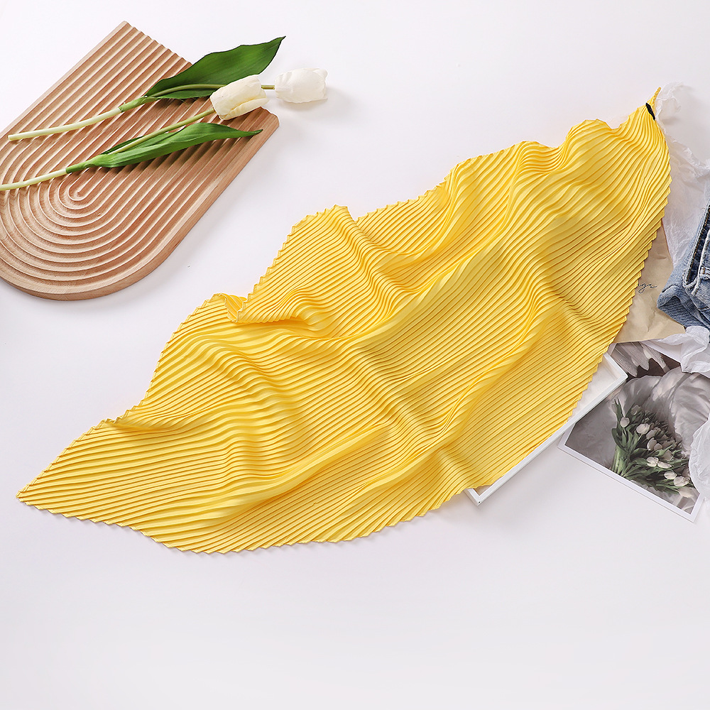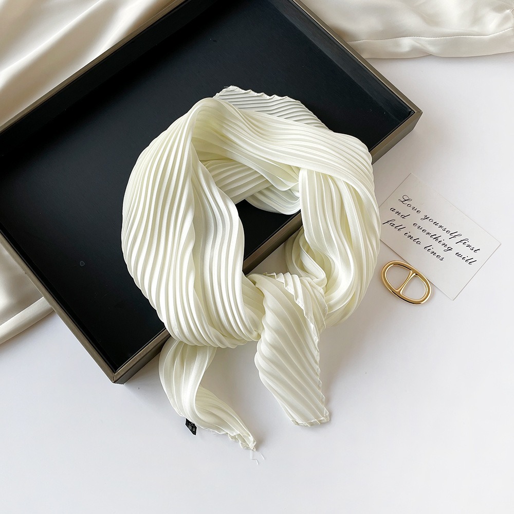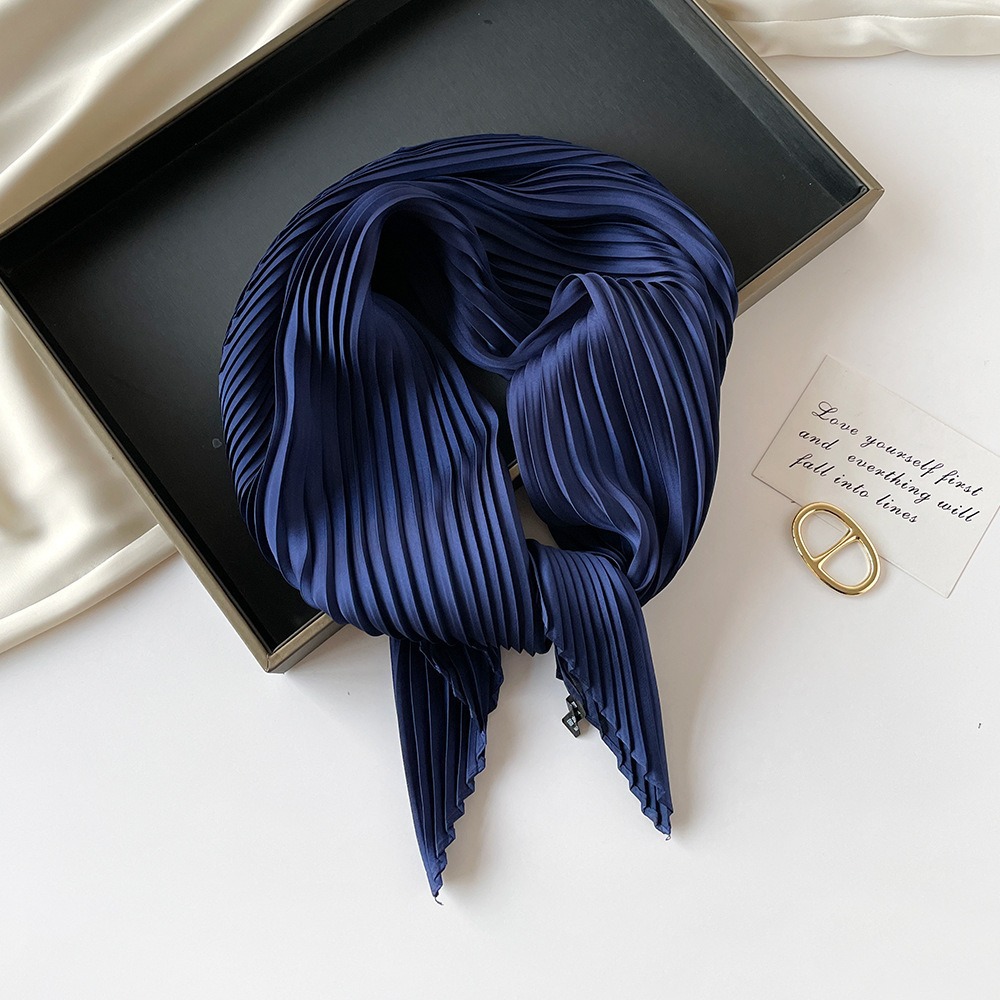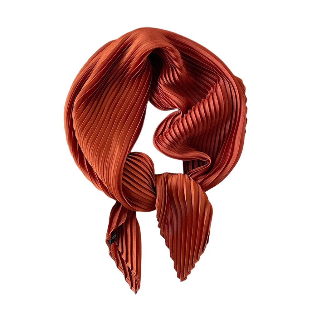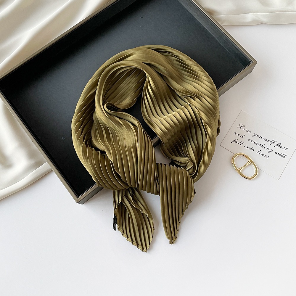 70cm褶皱丝巾纯色小方巾女素色四季轻薄款围巾春秋季职业装饰围脖