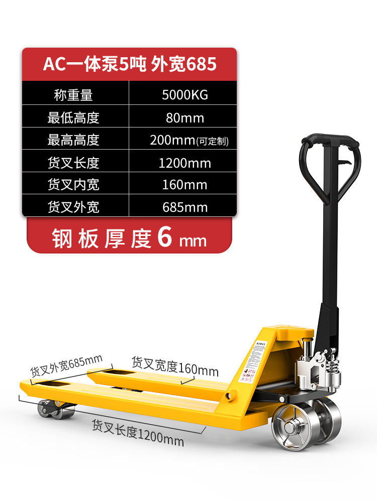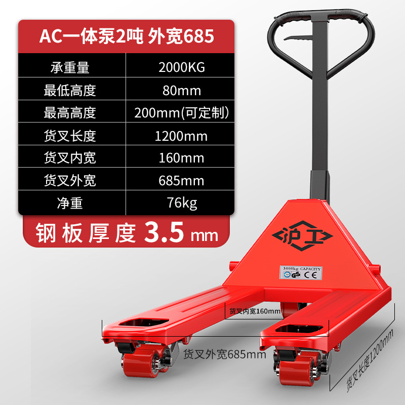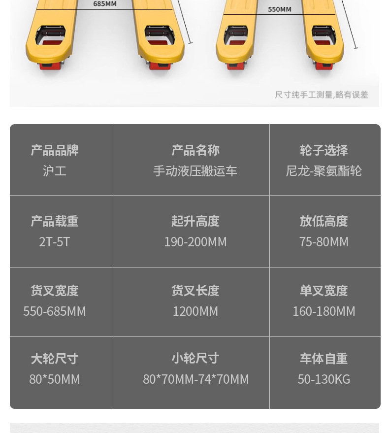 沪工生产厂家尼龙轮叉车2T手动液压叉车托盘装卸升降地牛手动叉车