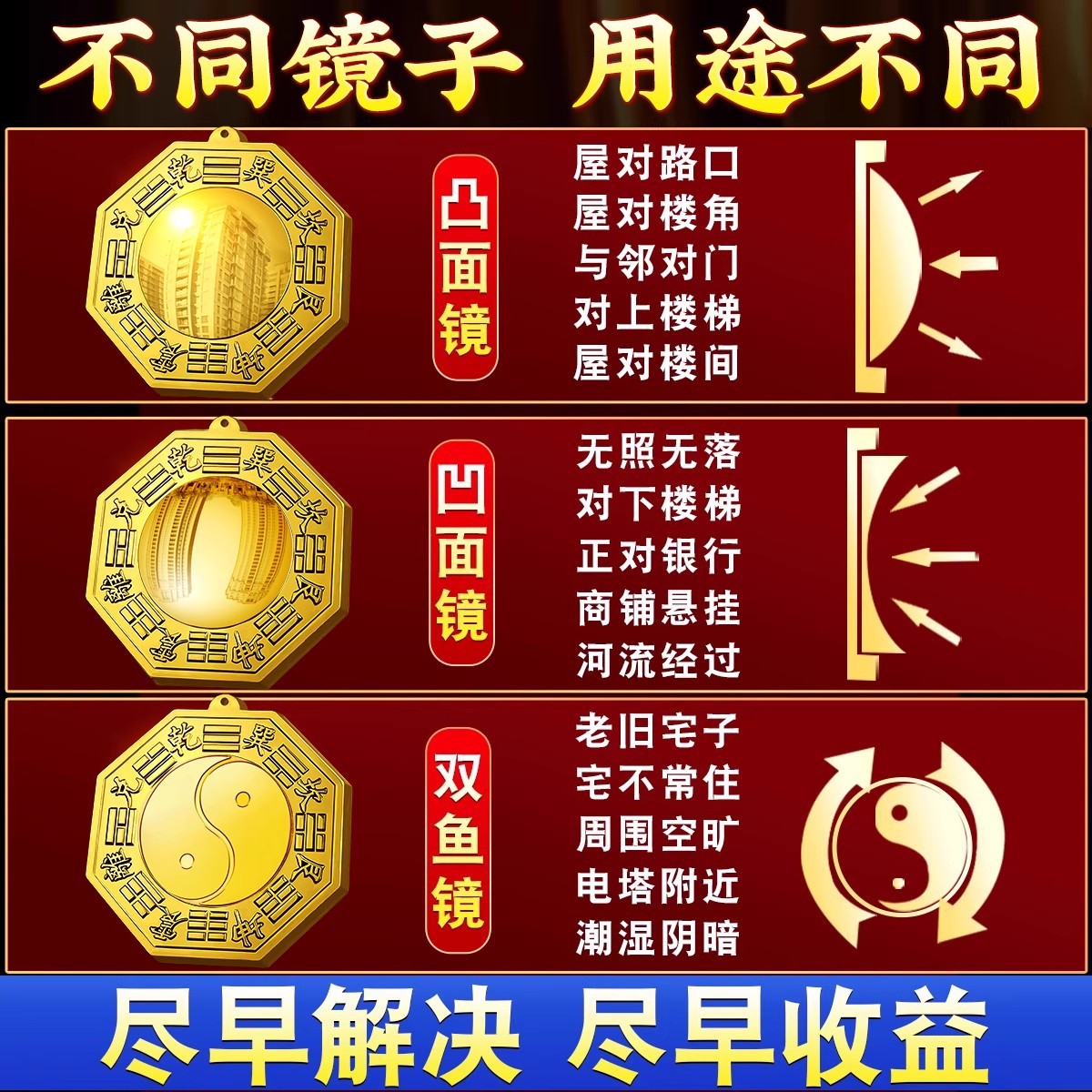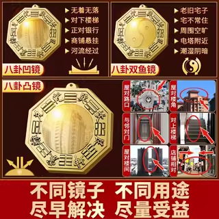 凸镜大门口凹镜家用 黄铜凹凸镜入户门窗户摆挂件九宫阴阳八卦镜
