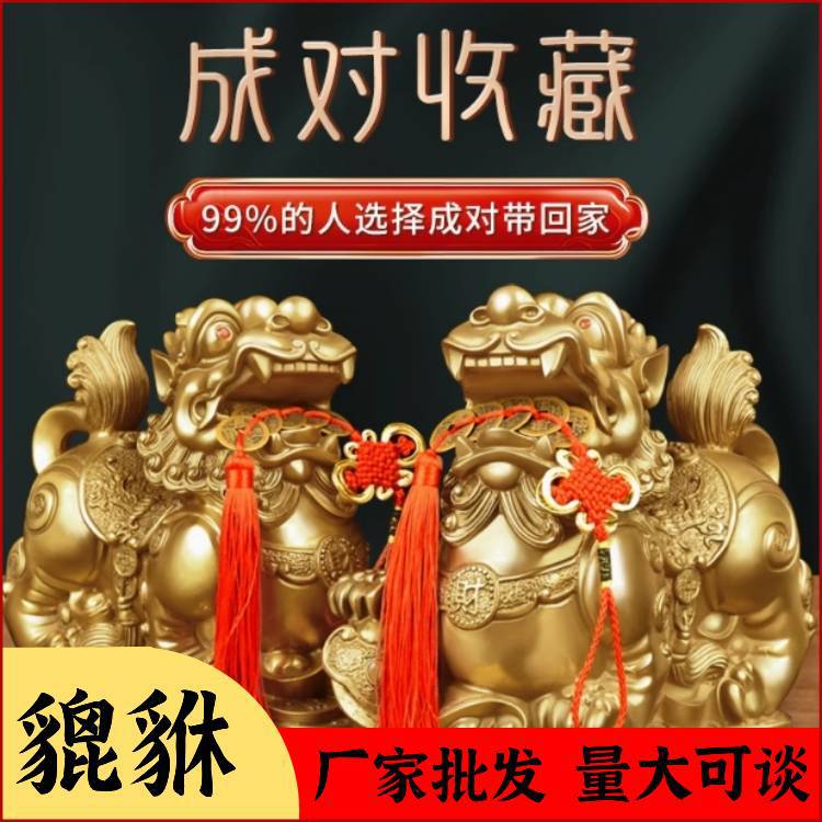 批发貔貅招才摆件一对客厅玄关办公室开业家居装饰品摆件黄铜貔貅