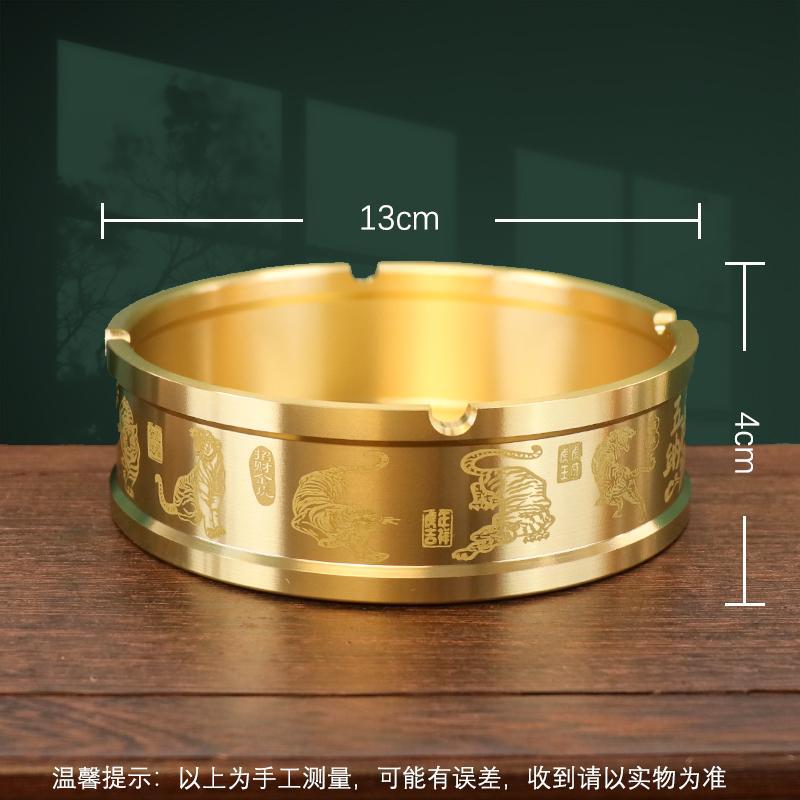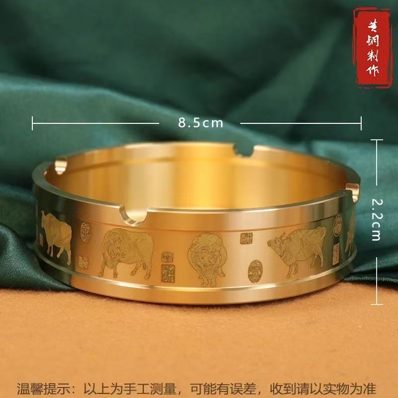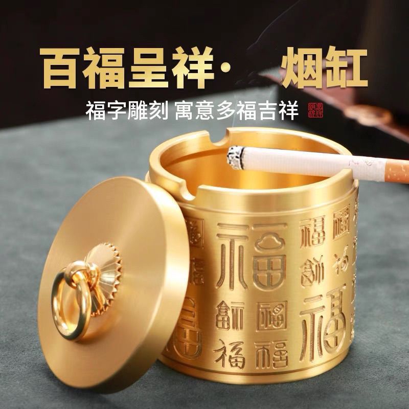 纯黄铜百福带盖车载烟灰缸家用办公室桌面防飞灰黄铜烟灰缸摆件
