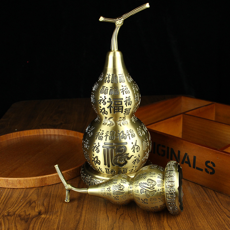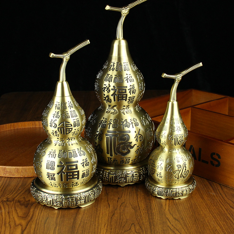 纯铜百福葫芦摆件办公室家居桌面大号纯铜金属铜器福字金属工艺品