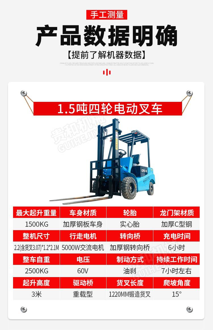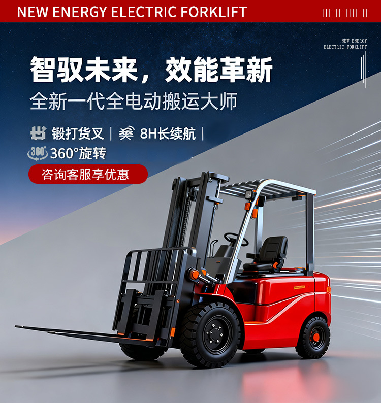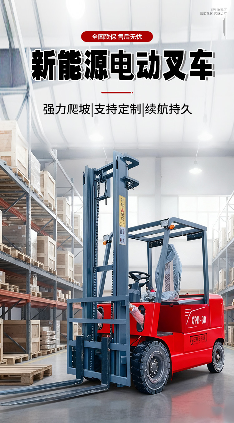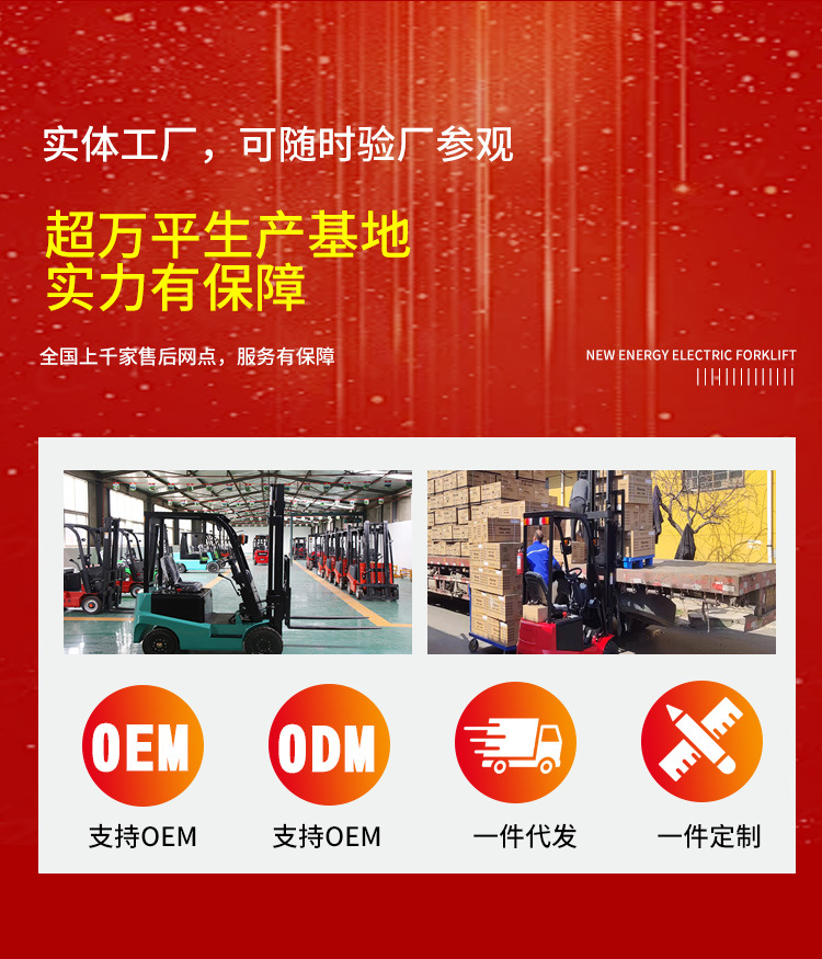 电动叉车2吨 1吨3吨新能源搬运堆高车跨境厂家四轮座驾式电动叉车
