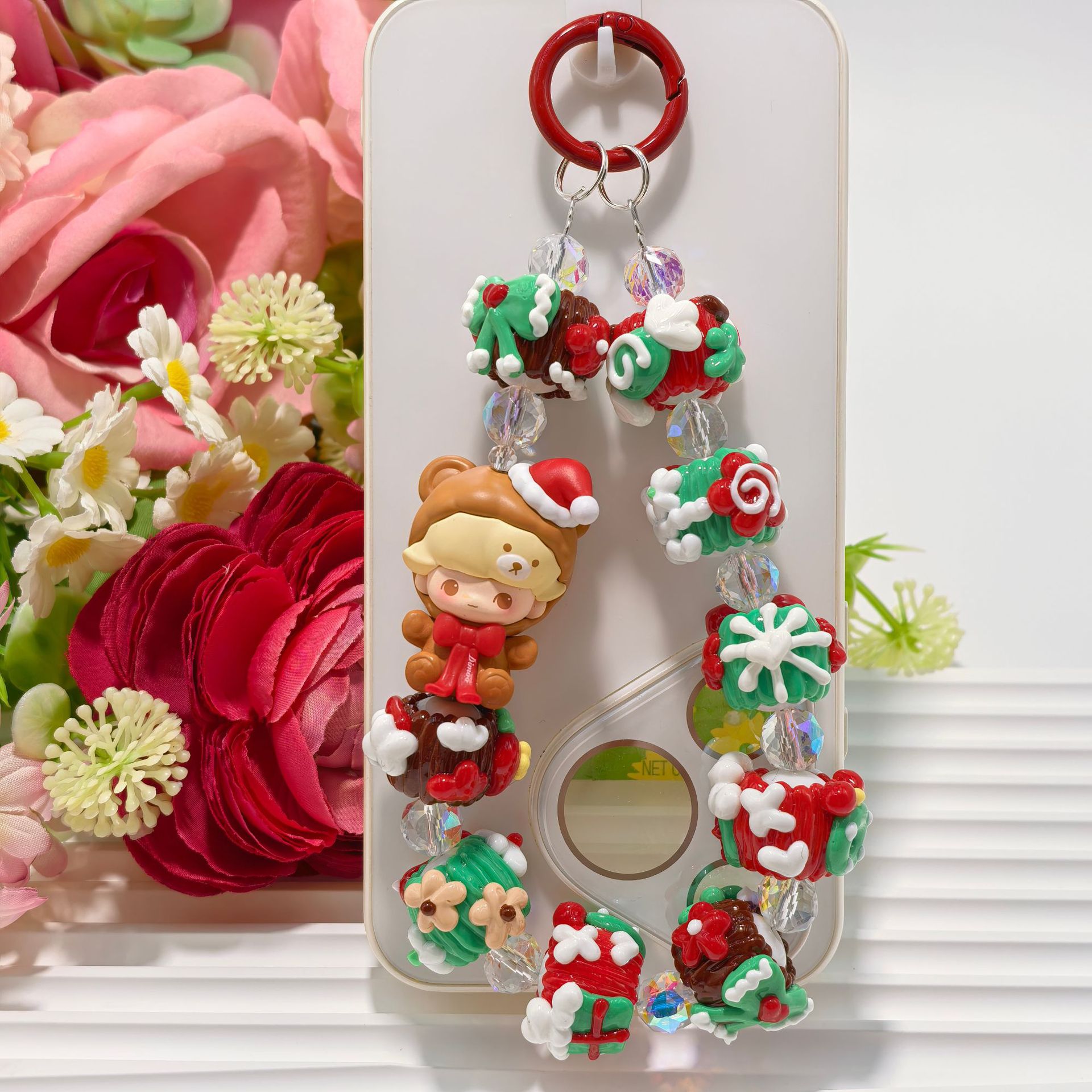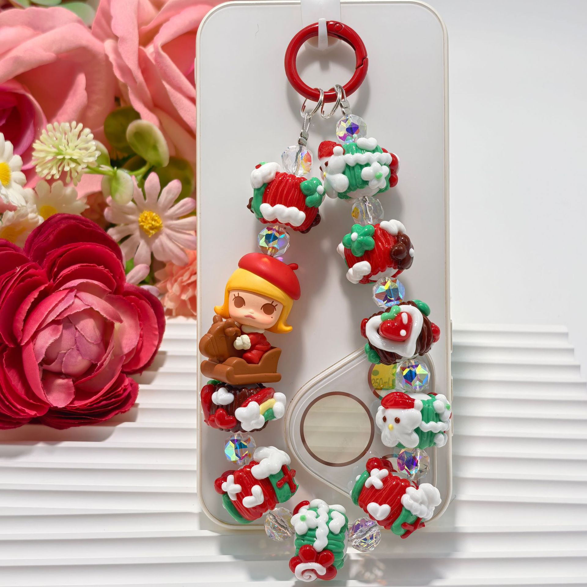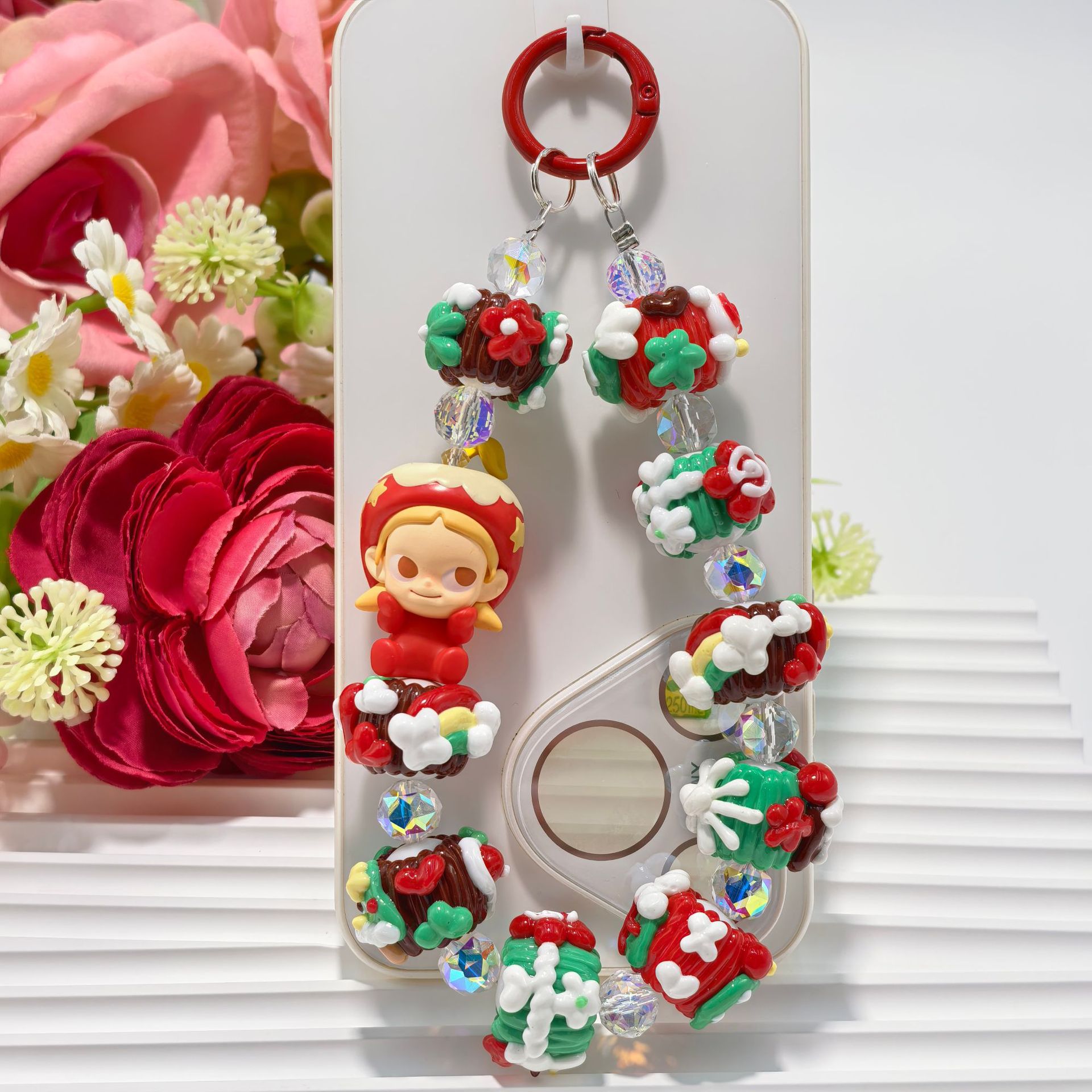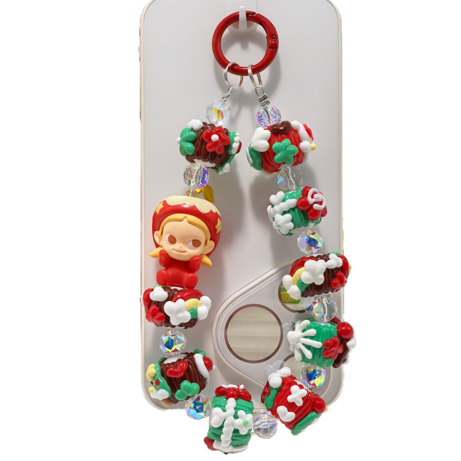 原装正版泡泡玛特圣诞礼物派送中系列diy手绘珠可爱手机链包包链