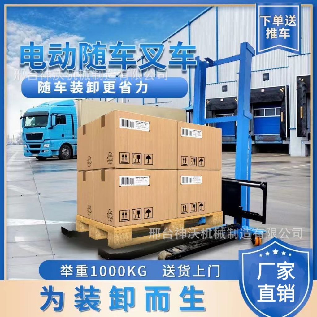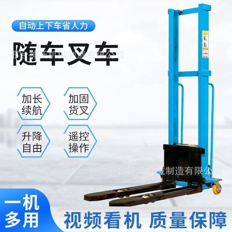 随车叉车新款电动堆高便捷式液压升降堆高1吨手推跟车升降